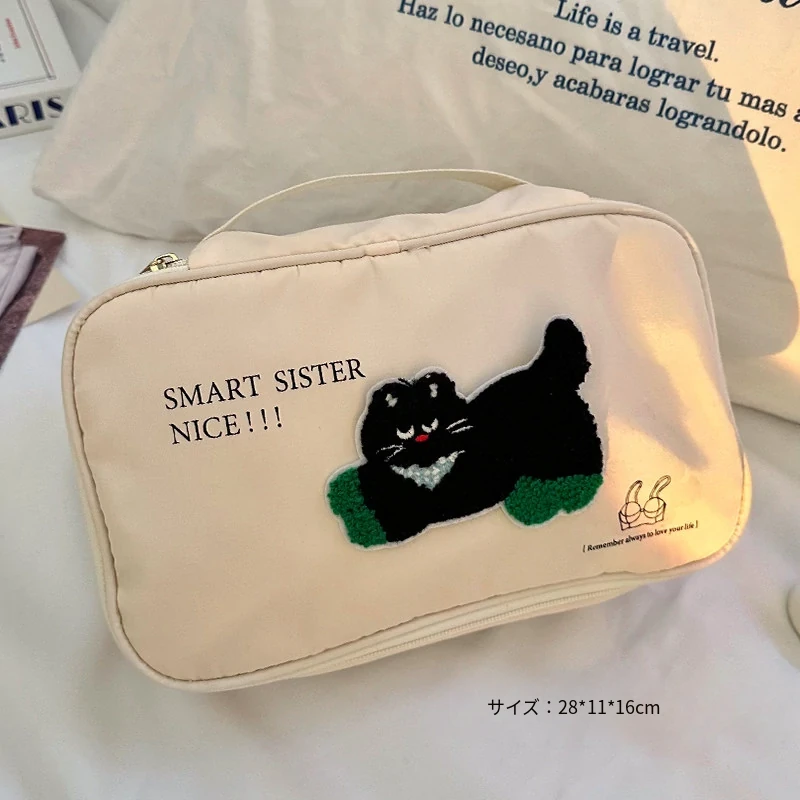ベージュ+グリーン足の猫【大容量丨分区収納】