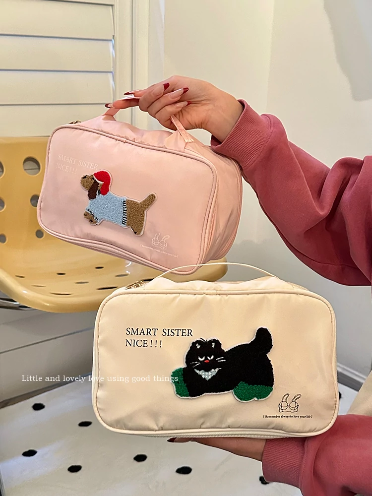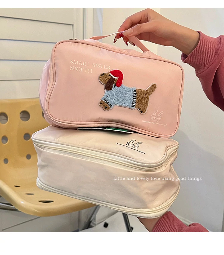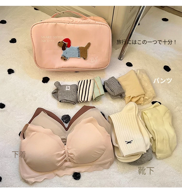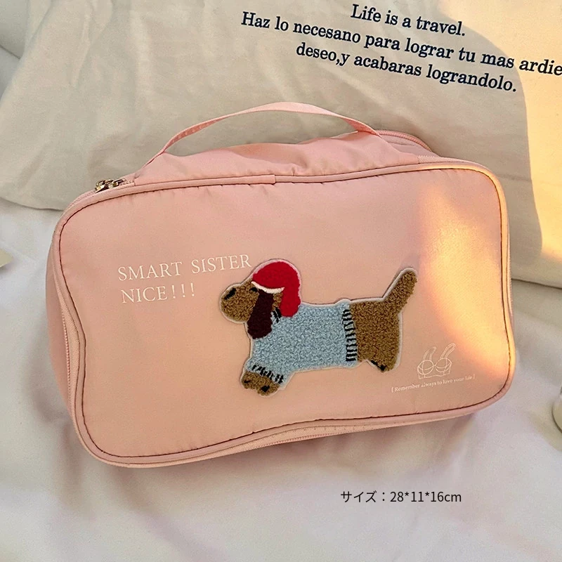 ピンク+赤い帽子の犬【大容量丨分区収納】