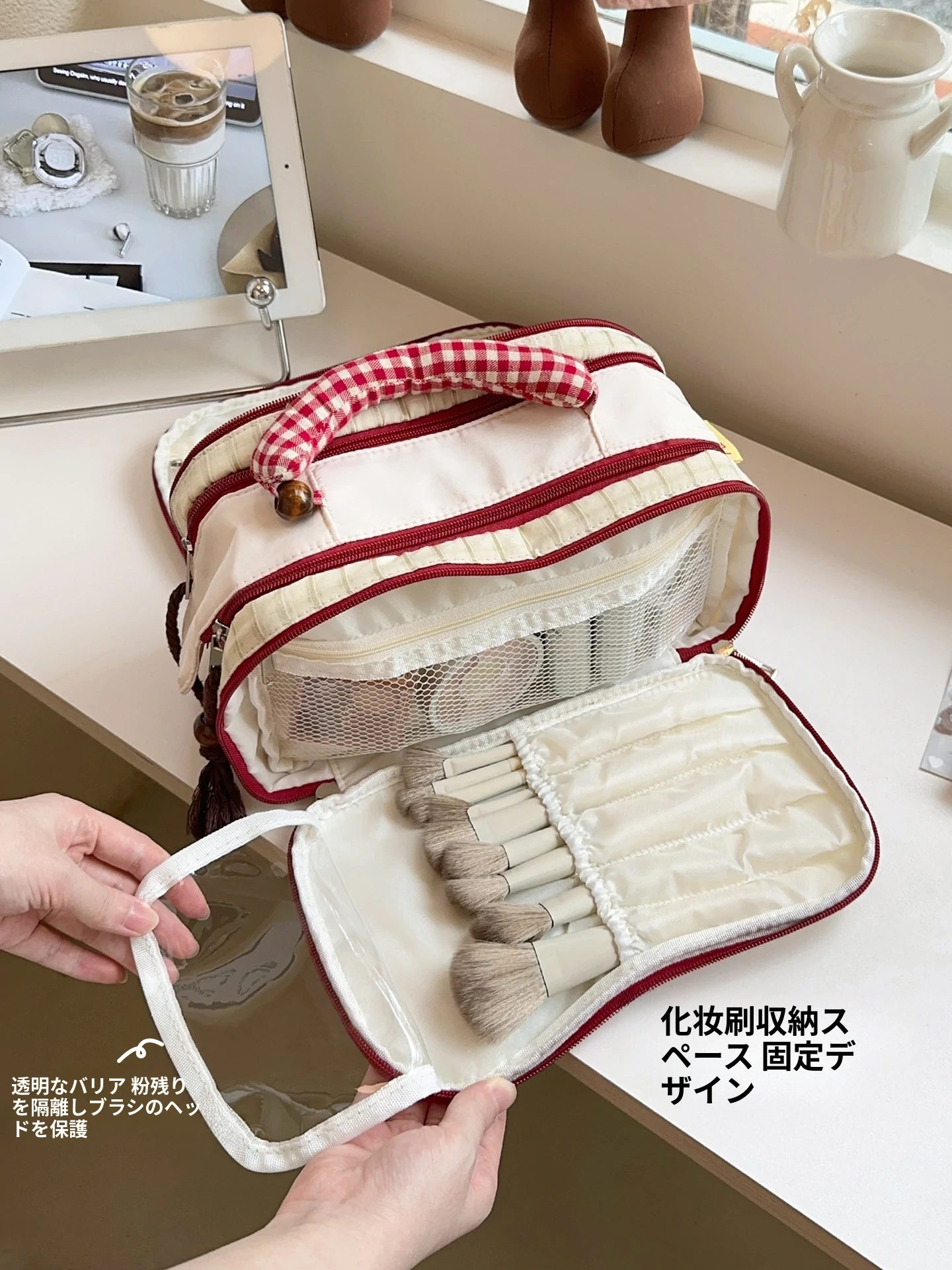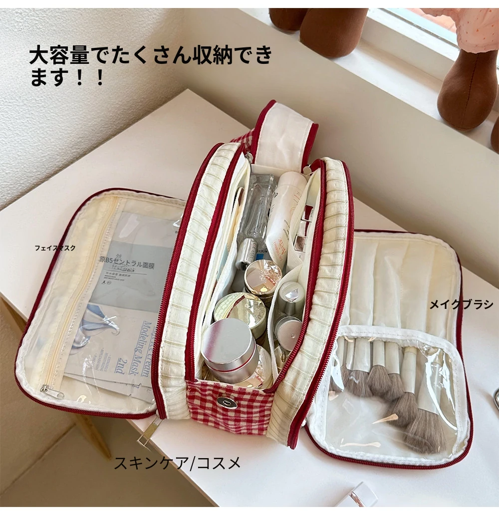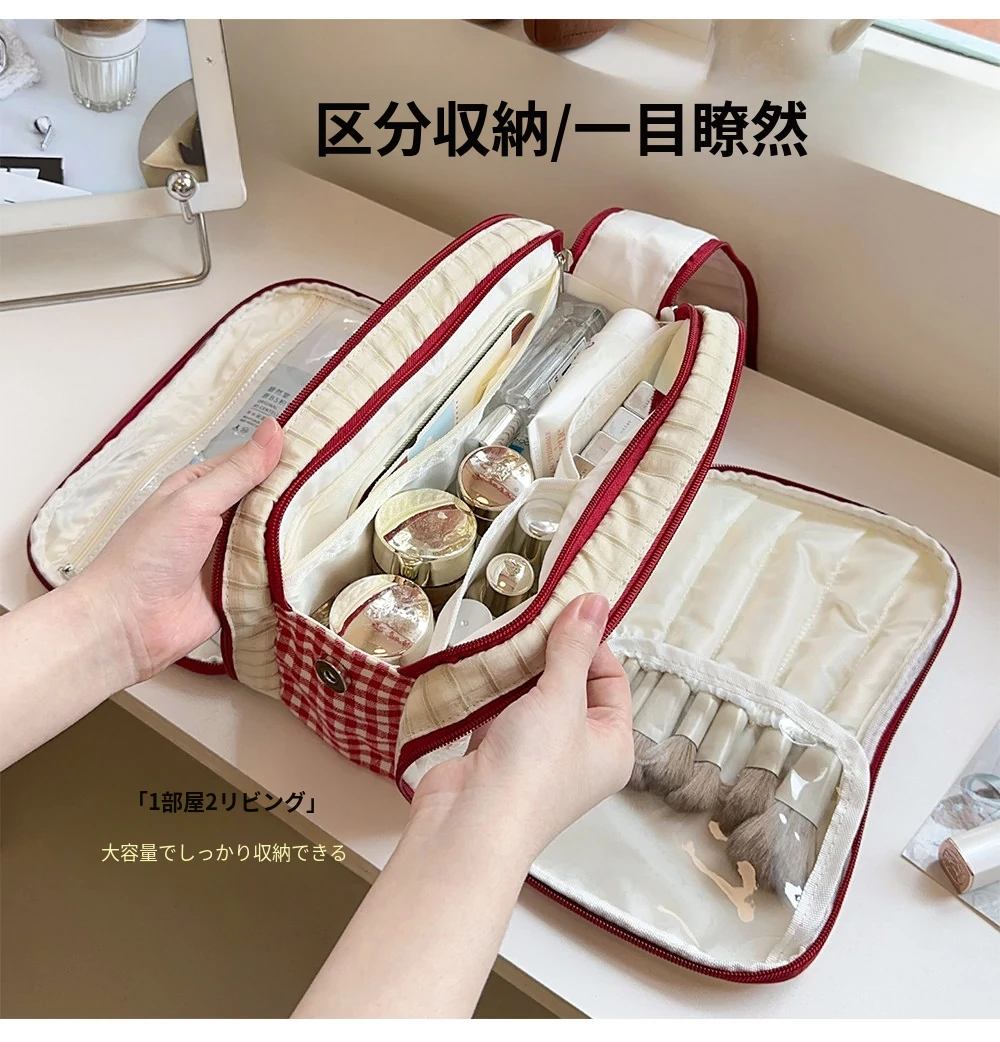 2025年新作!大容量化妆ポーチ - 旅行や外出に最適、高級スキンケア製品や化粧ブラシをスマートに整理できる分区収納バッグ!女性の必需品、スタイリッシュに美しさを持ち運びましょう!
