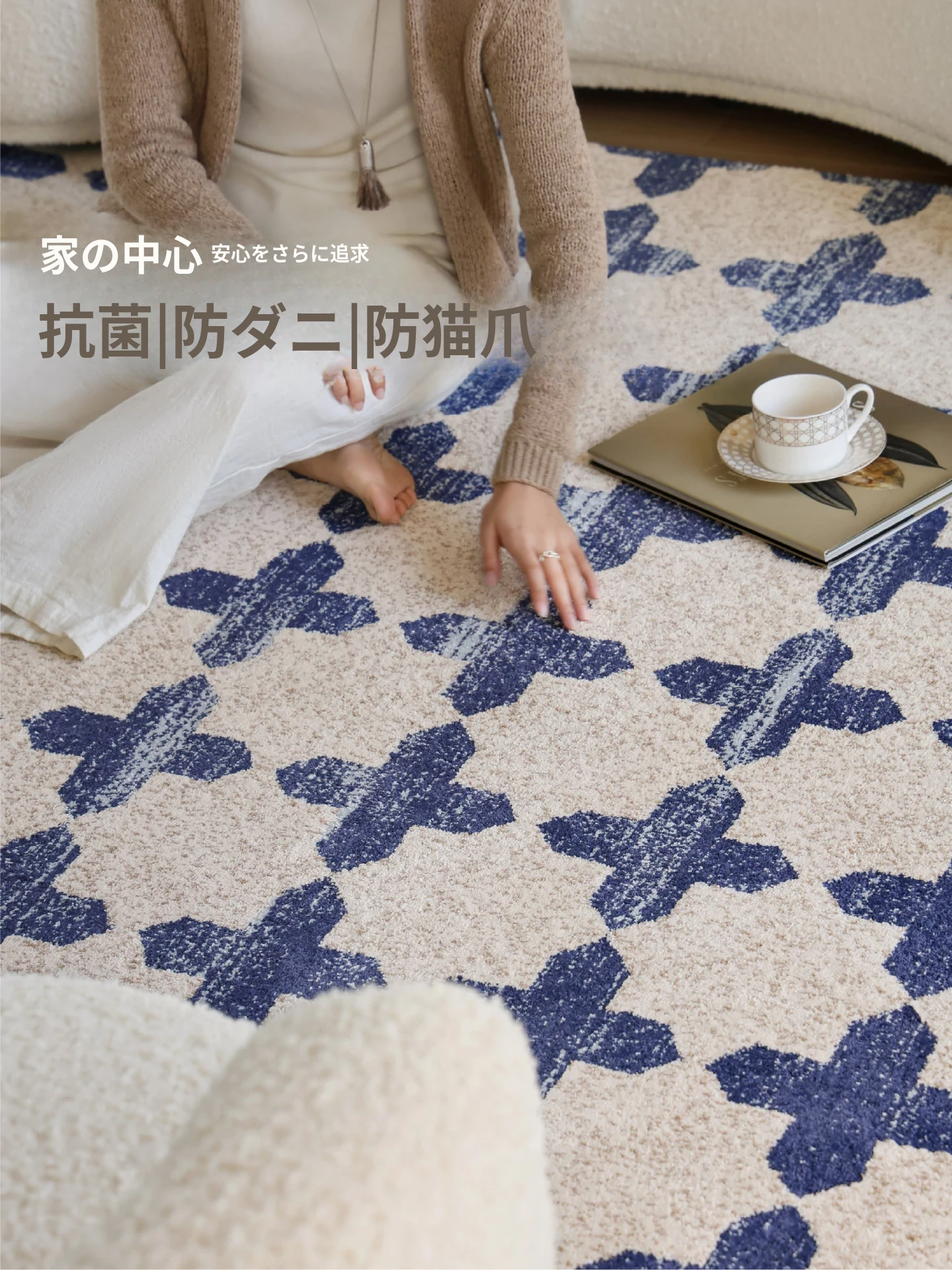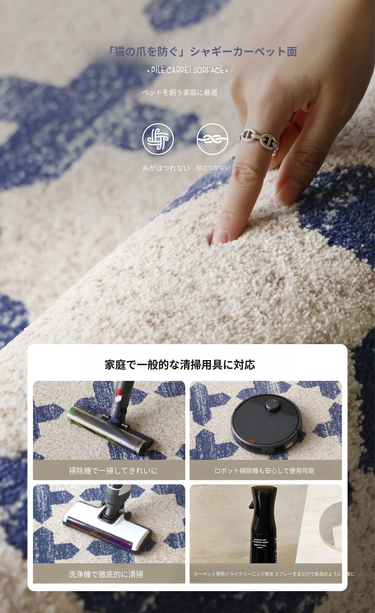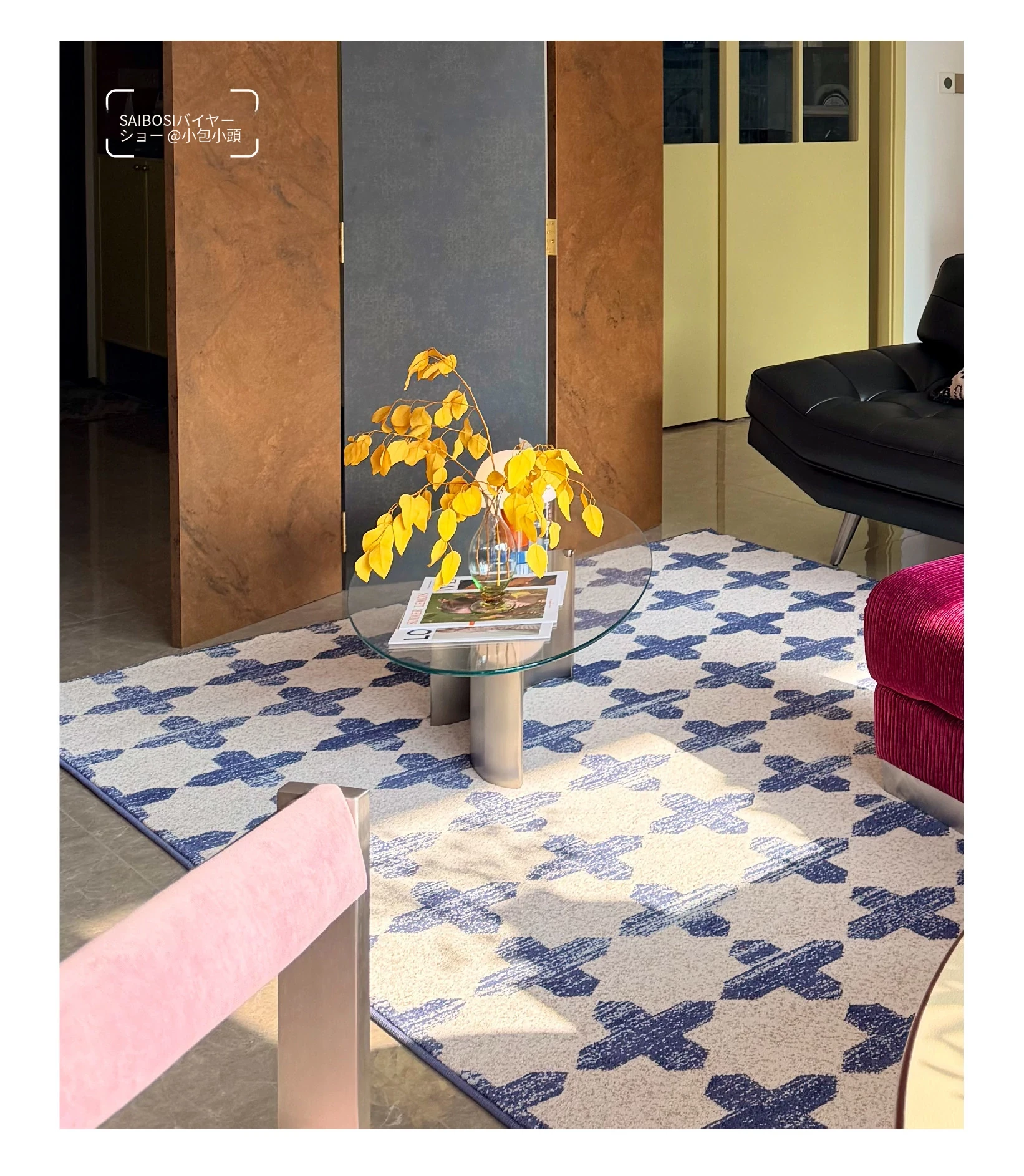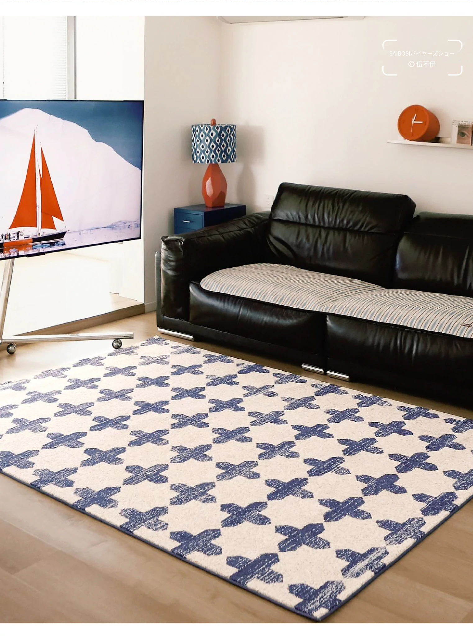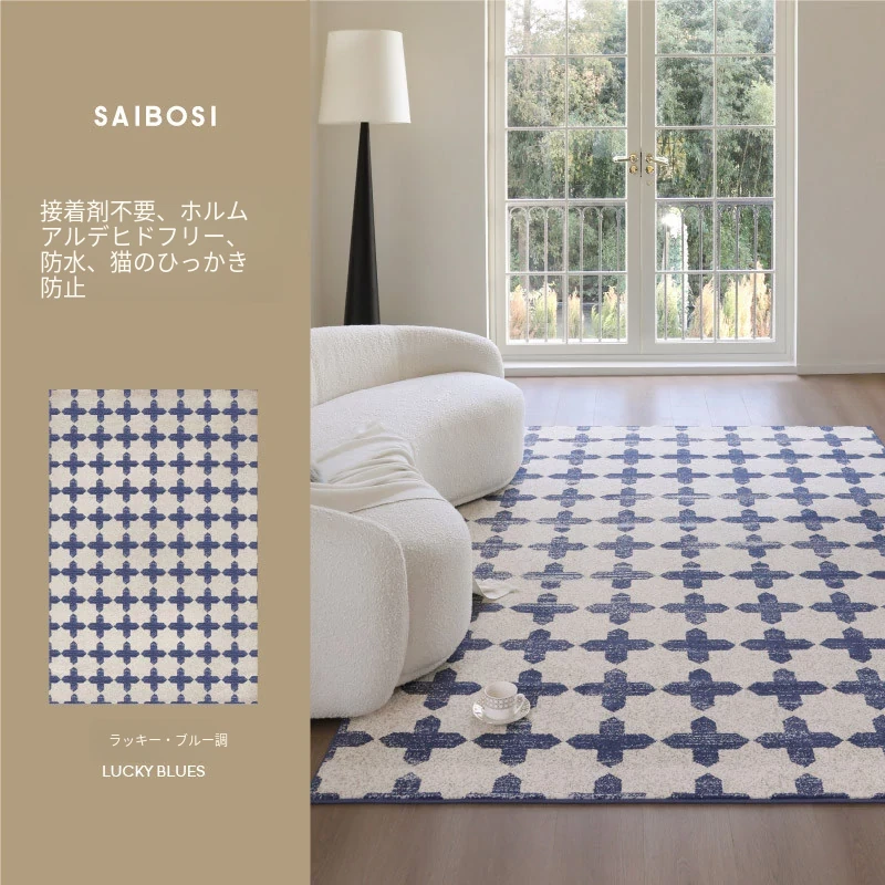 サイボスのラッキーブルー調中古風無接着剤カーペット、防水仕様!フレンチスタイルのリビングルームにぴったりな、軽やかで上質な高級寝室用2026年新作。