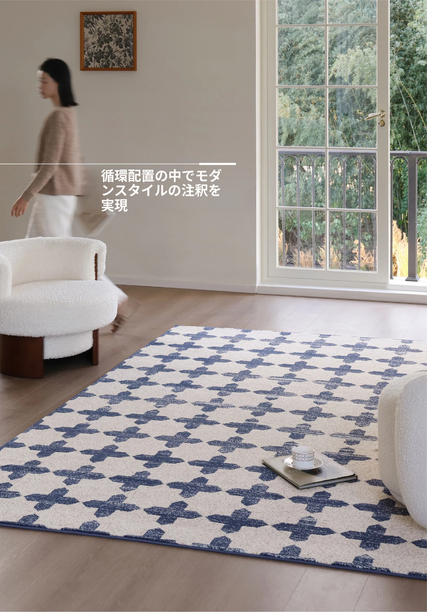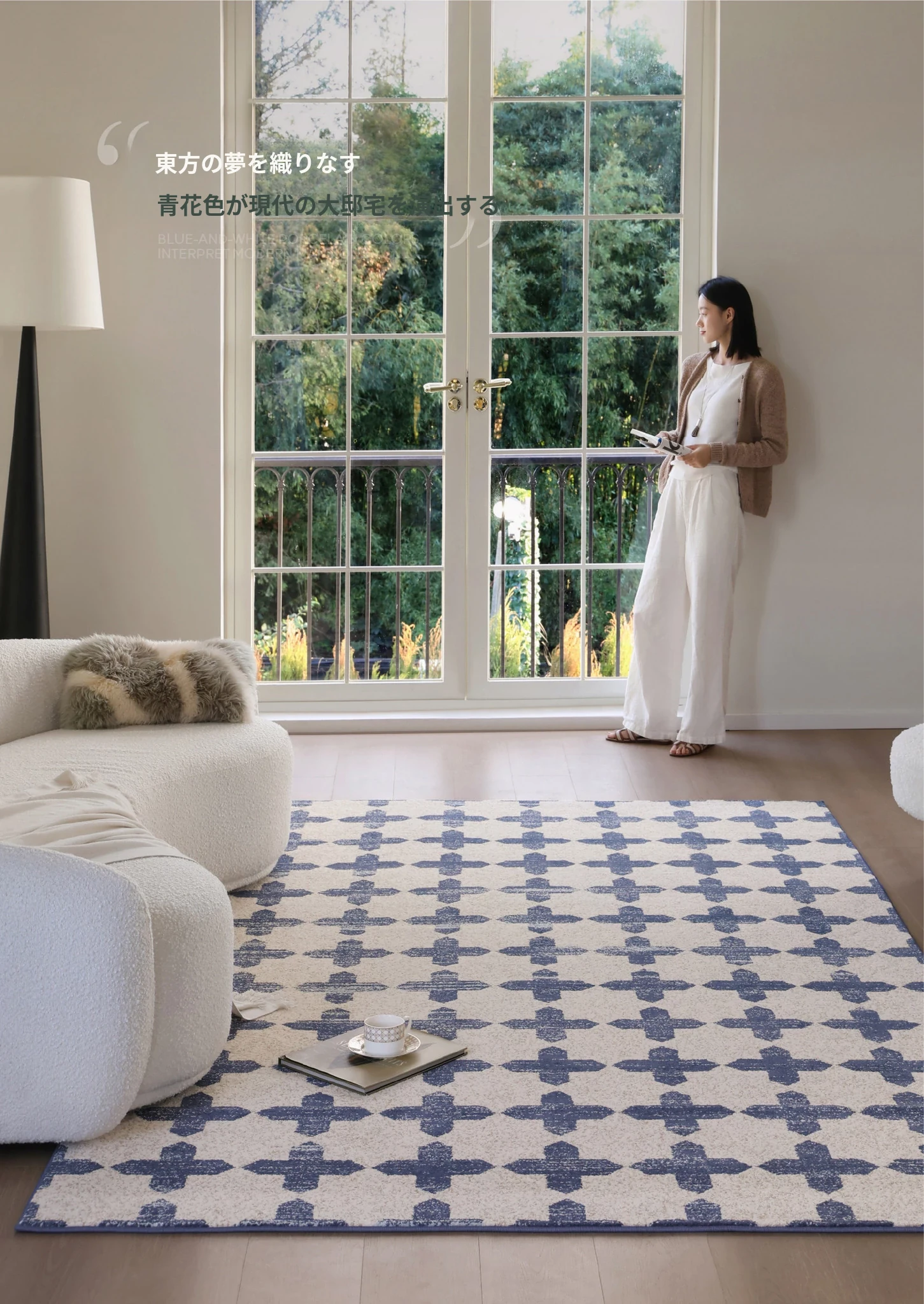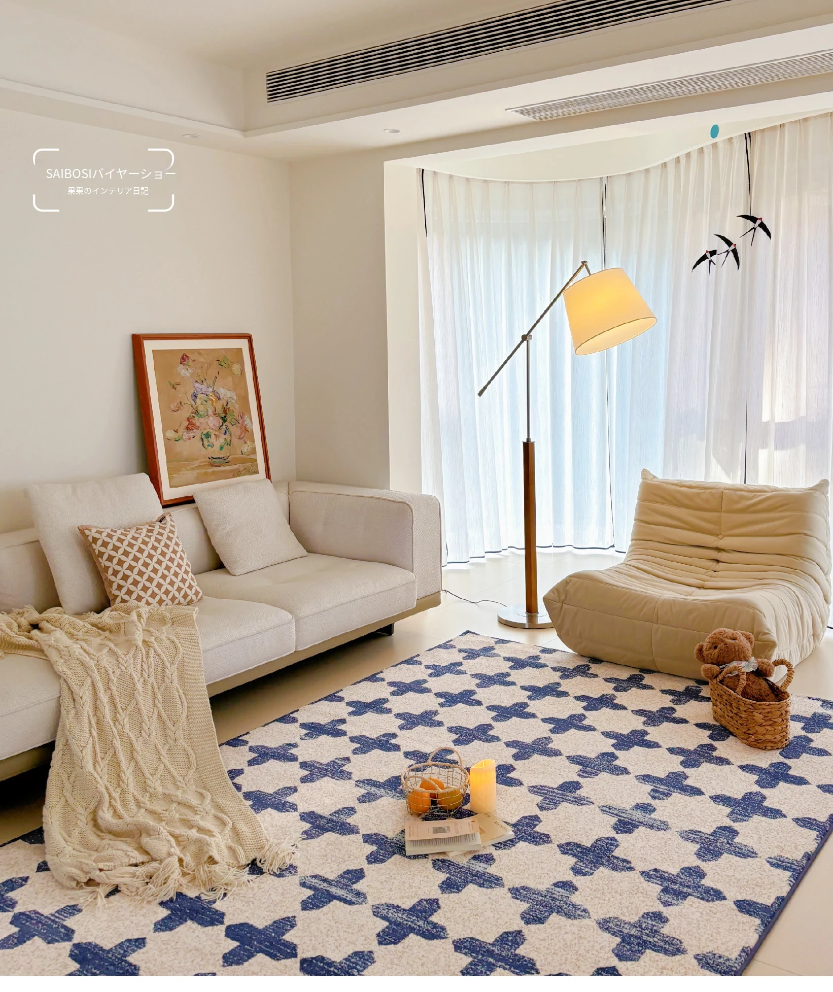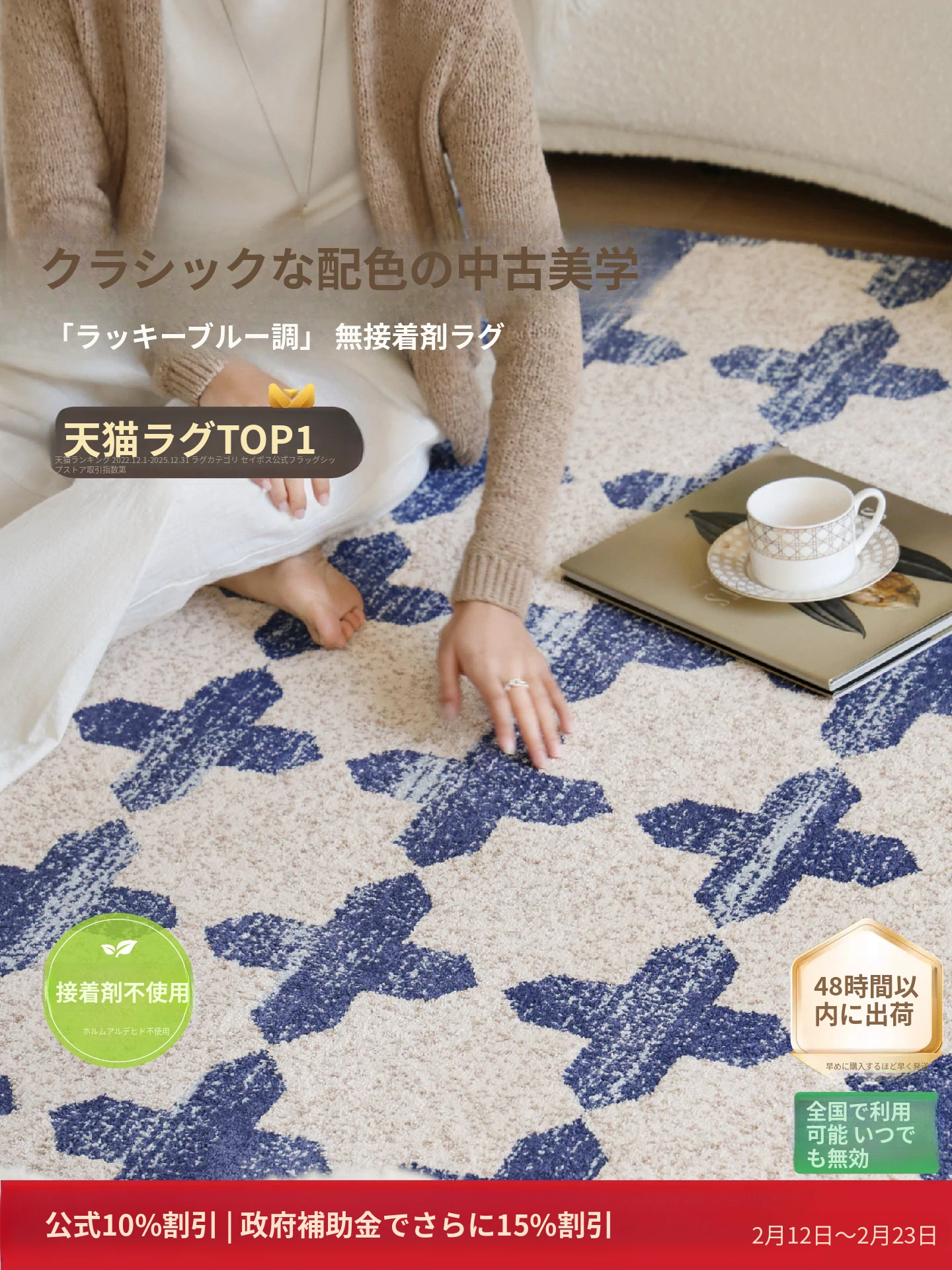 サイボスのラッキーブルー調中古風無接着剤カーペット、防水仕様!フレンチスタイルのリビングルームにぴったりな、軽やかで上質な高級寝室用2026年新作。