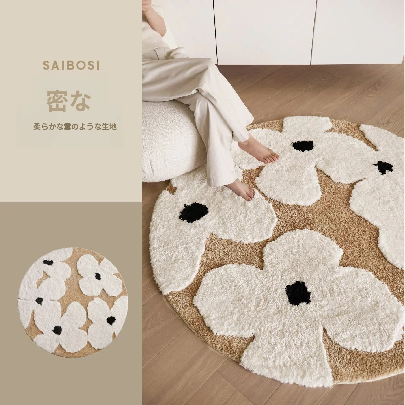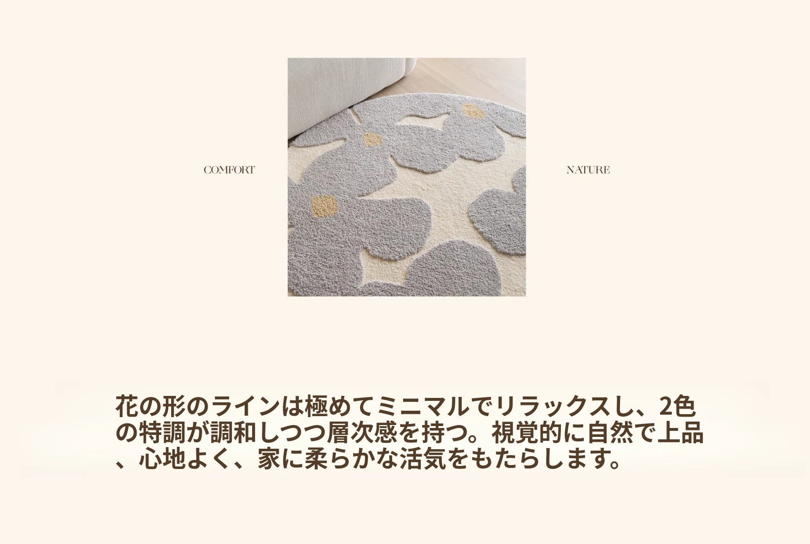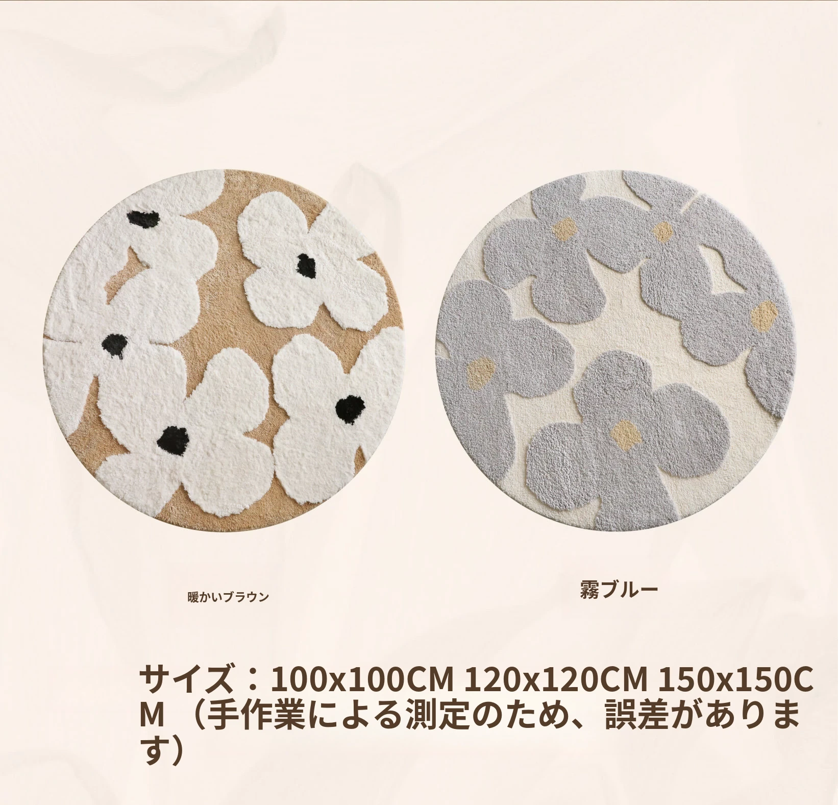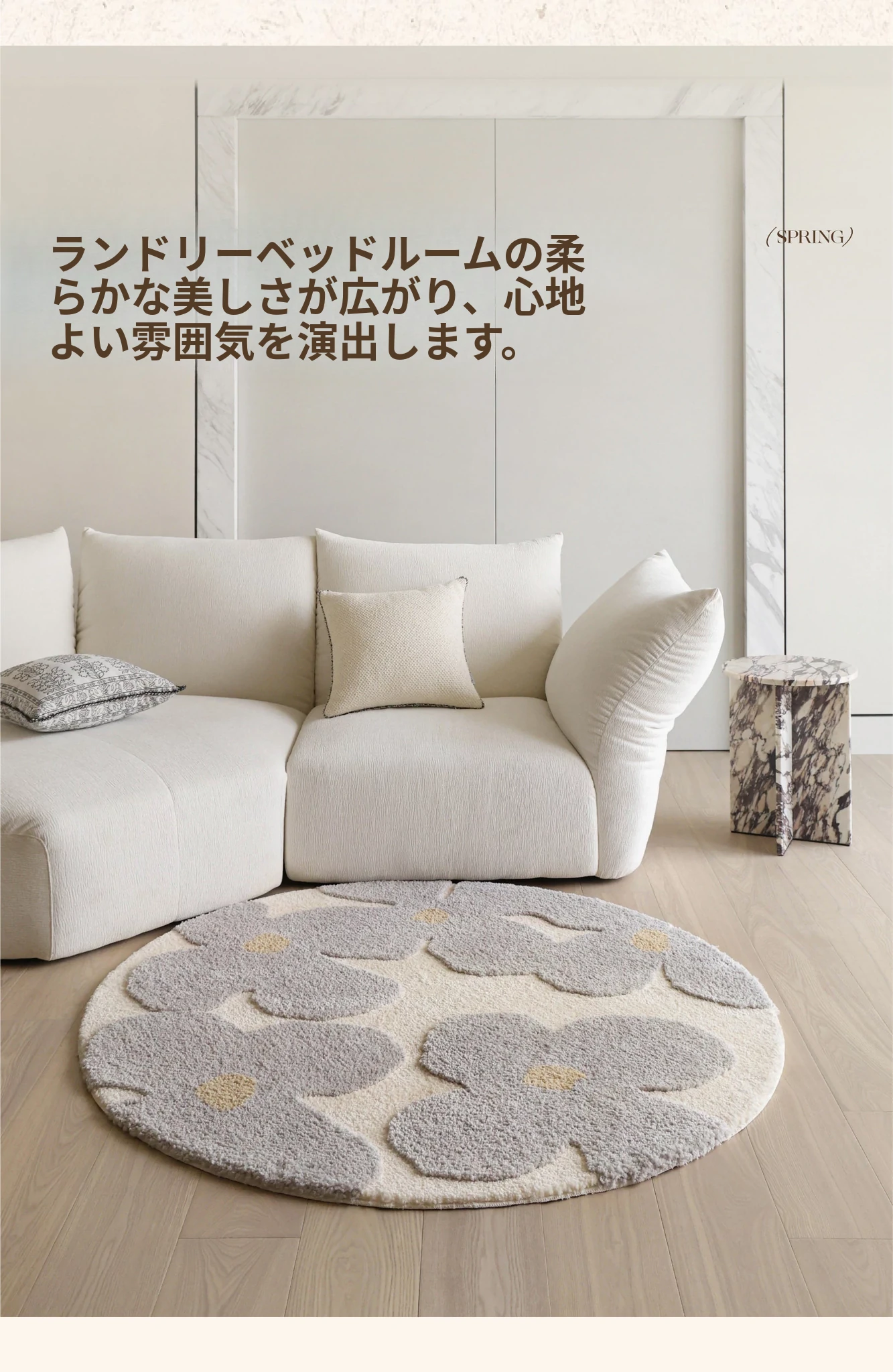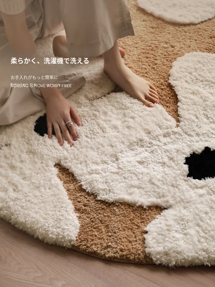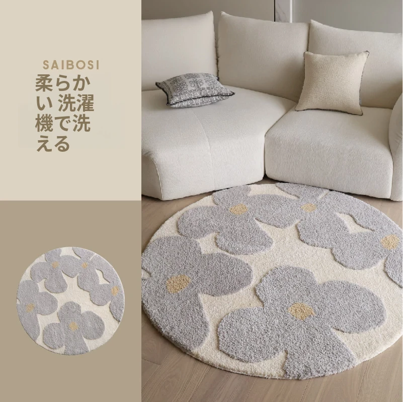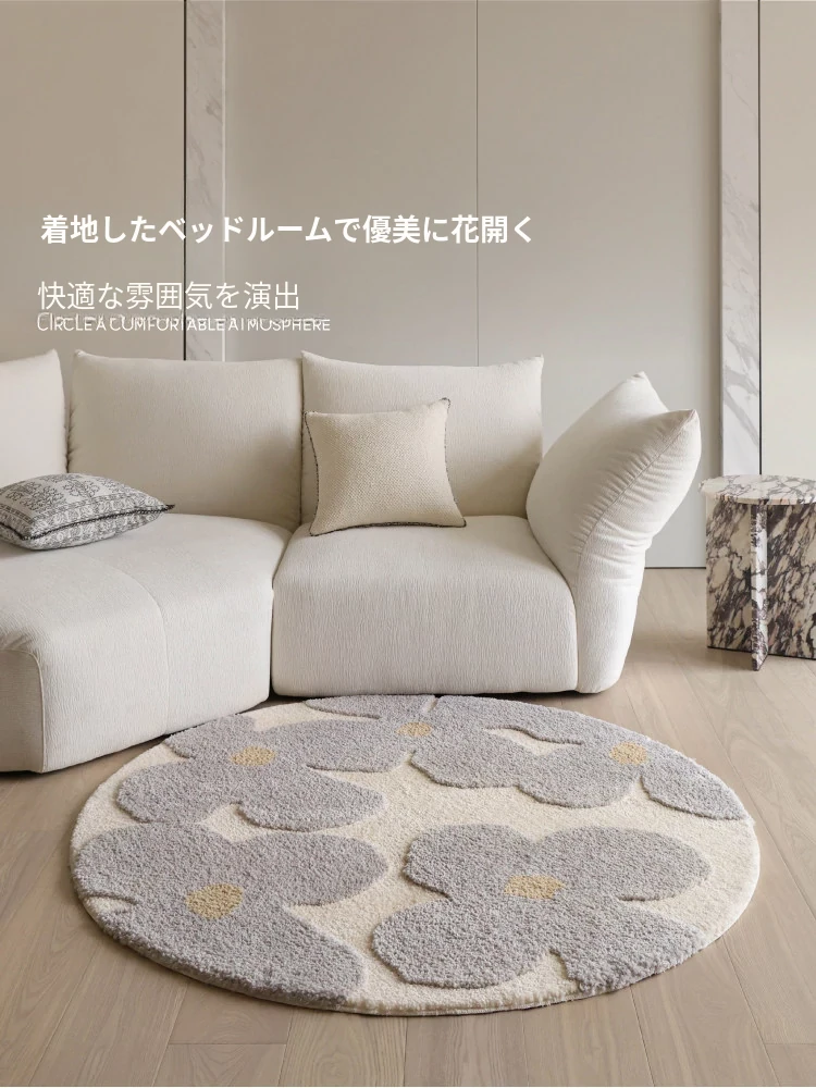 セイボス・スイートアフリカン・カーペットラウンド・フレンチスタイルの高級クリームソフト・ベッドルーム・リビングルーム・クローゼットにぴったりの青山美宿!心地よい柔らかさで、あなたの空間を華やかに演出します!