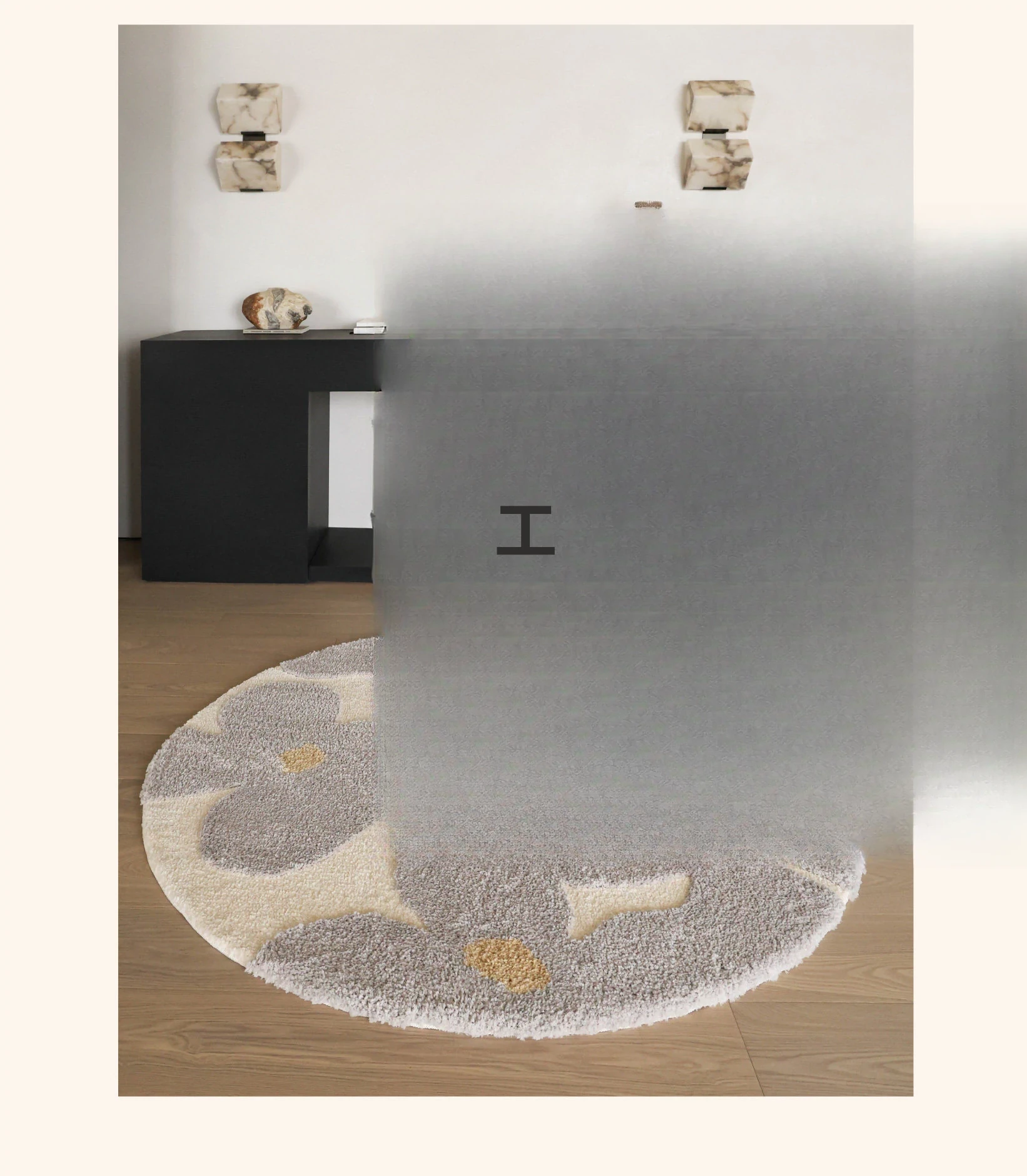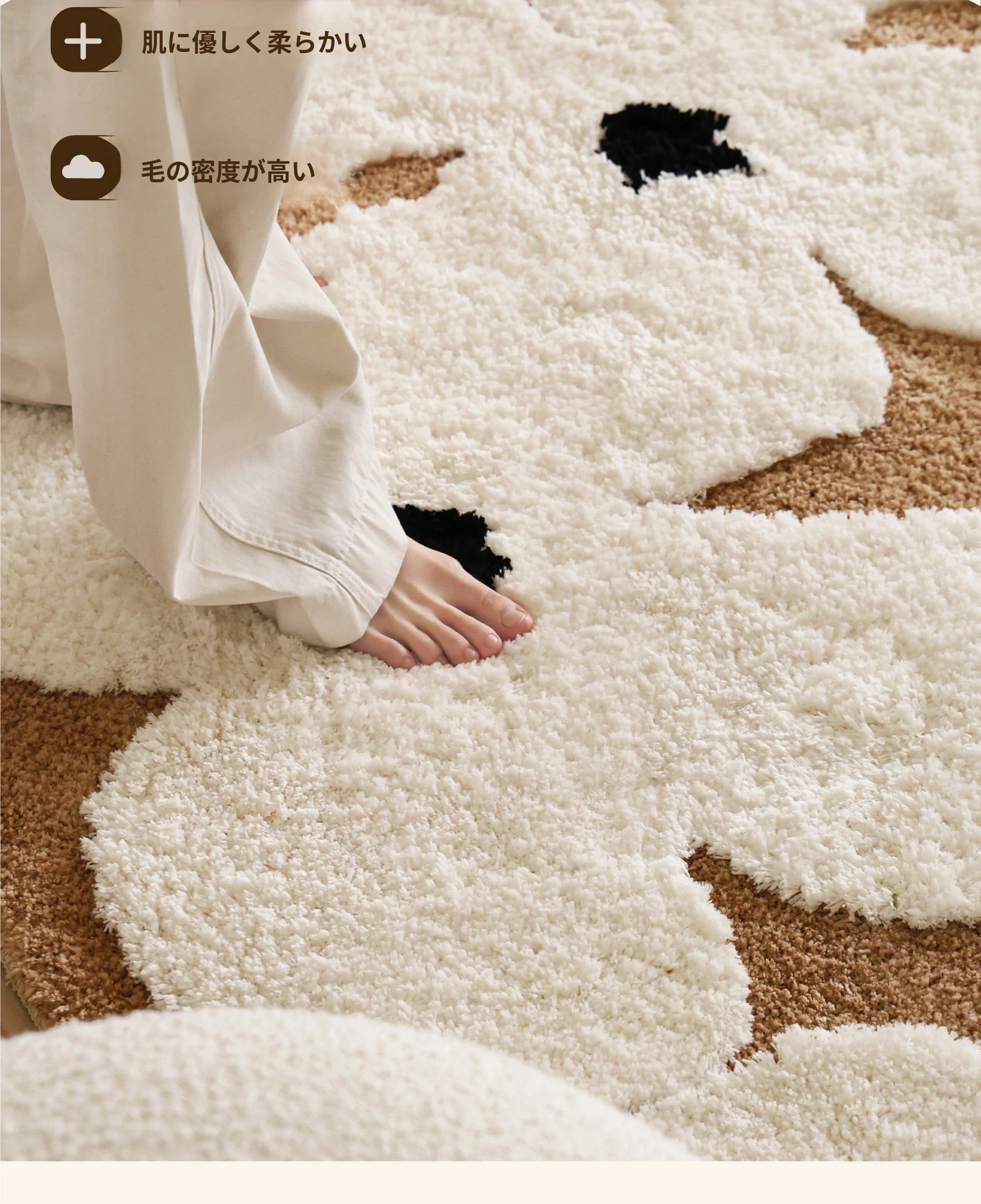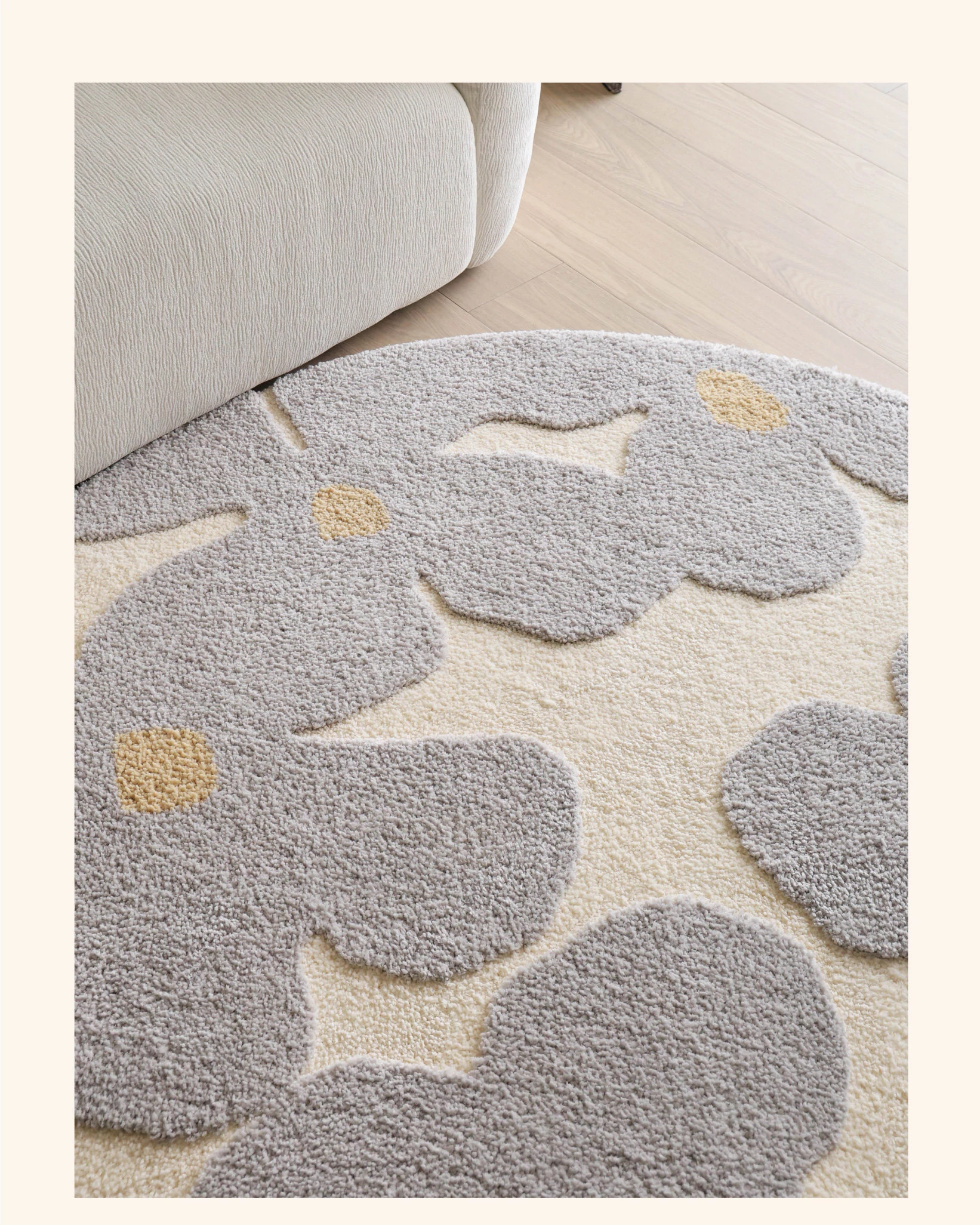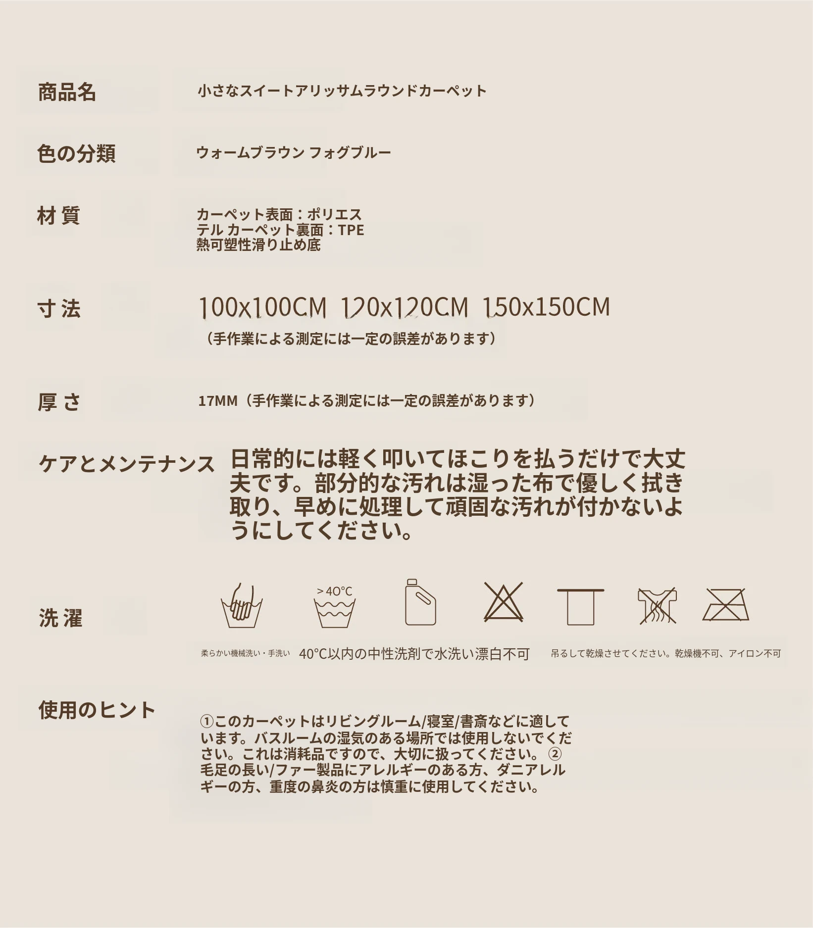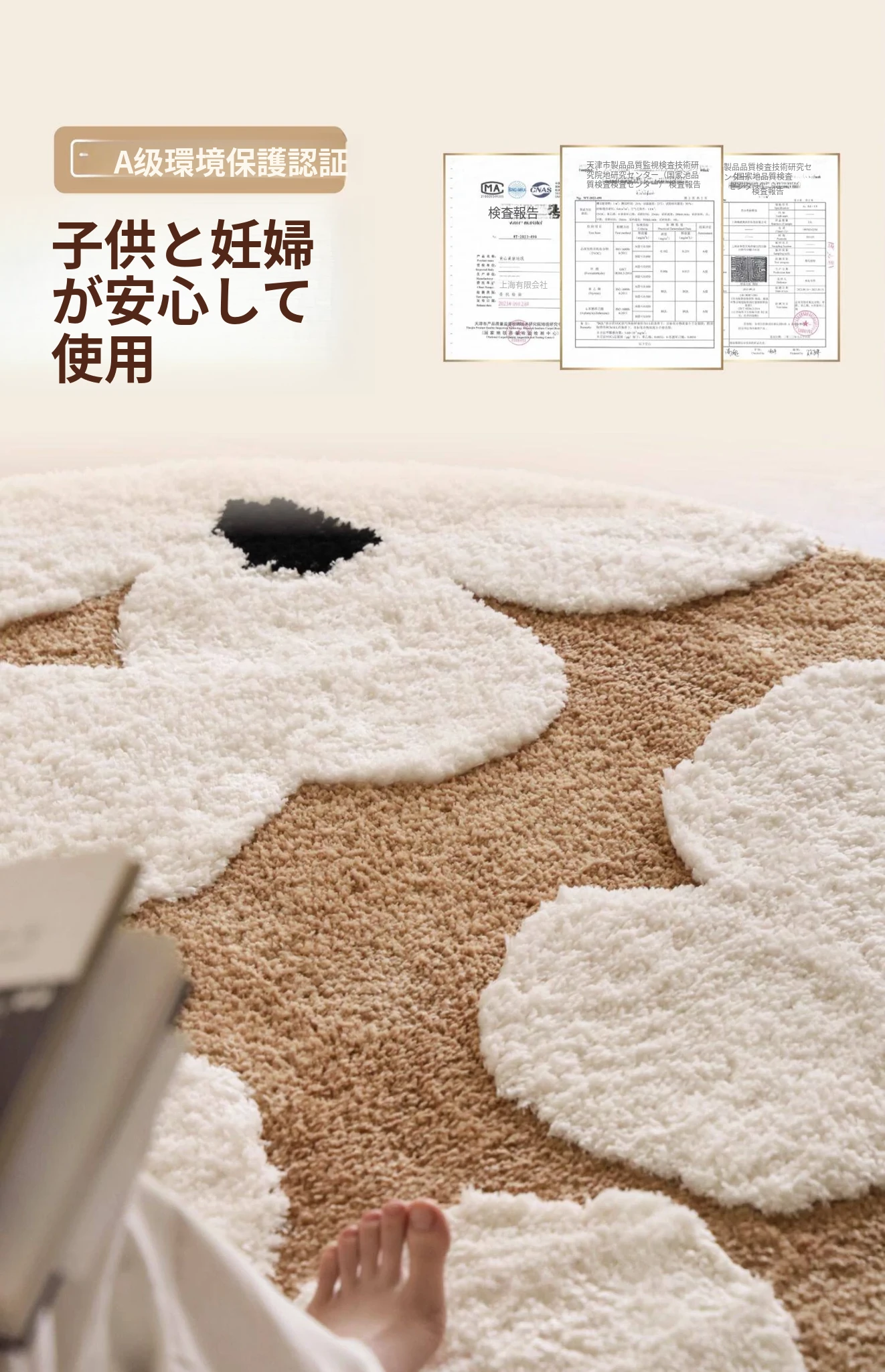 セイボス・スイートアフリカン・カーペットラウンド・フレンチスタイルの高級クリームソフト・ベッドルーム・リビングルーム・クローゼットにぴったりの青山美宿!心地よい柔らかさで、あなたの空間を華やかに演出します!