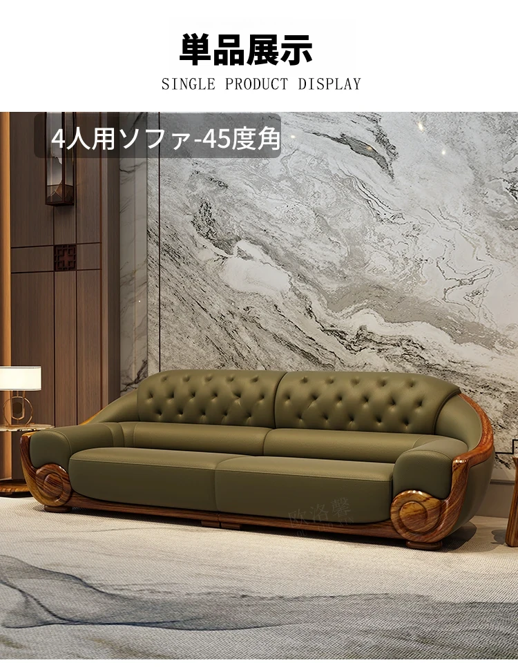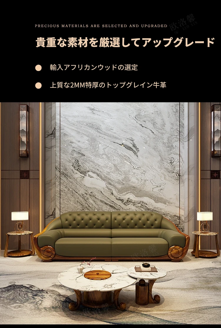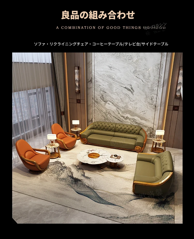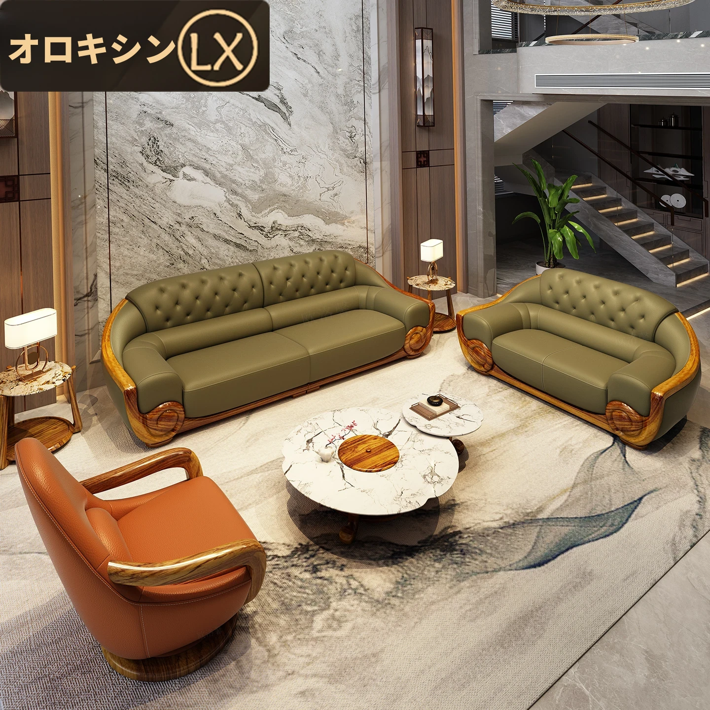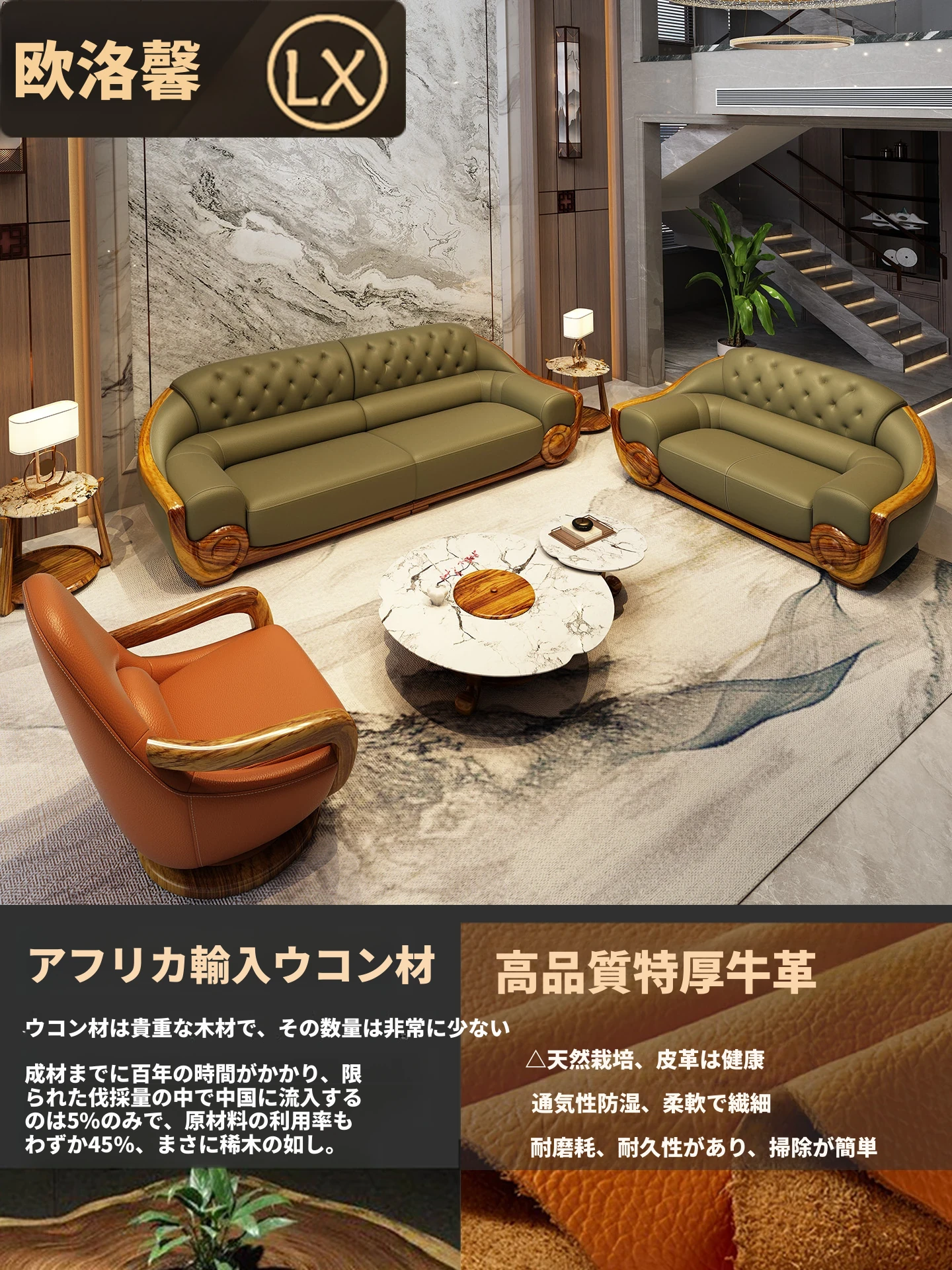 高級ウコンウッド本革ソファー|特厚一層牛革使用|高級住宅・別荘・広々リビングに最適なコンビネーションセット!豪華さと快適さを兼ね備えた贅沢な空間を演出します。