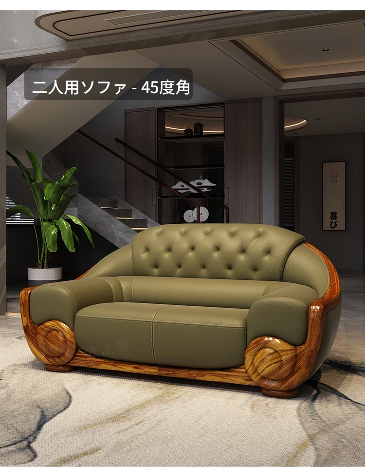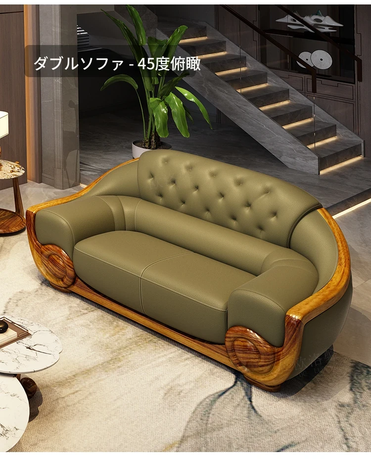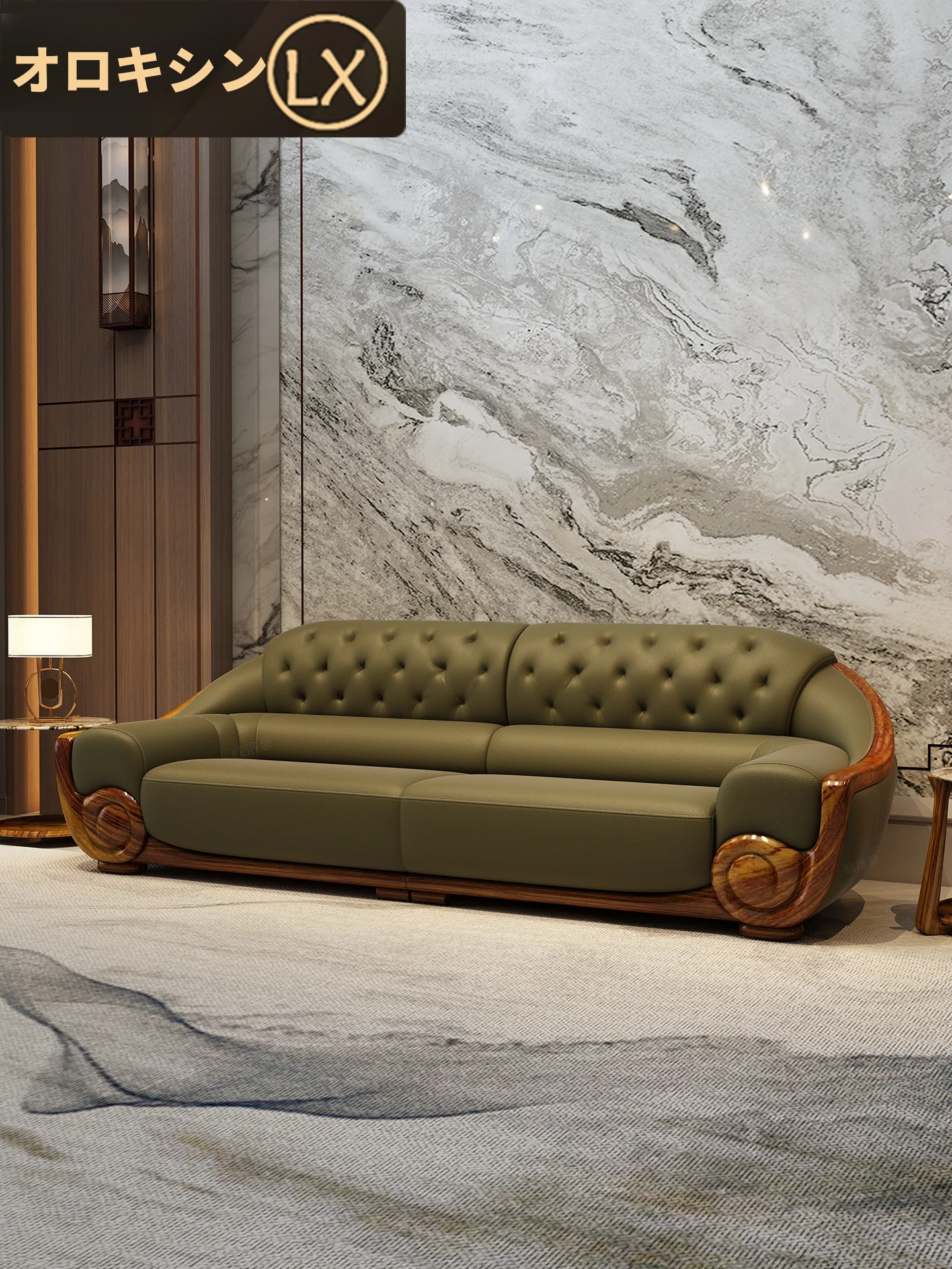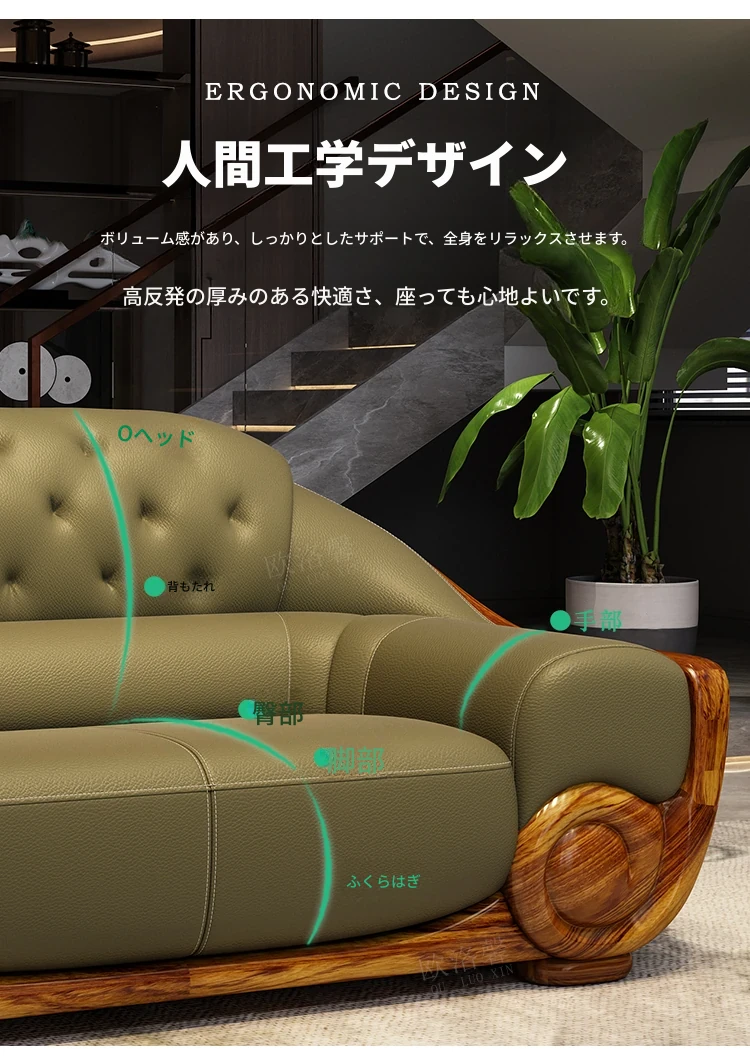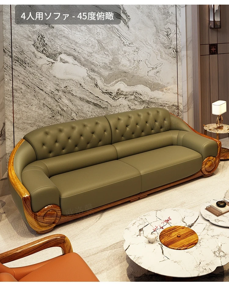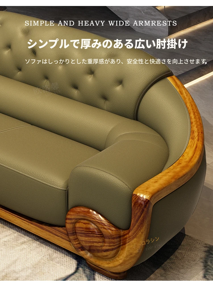 高級ウコンウッド本革ソファー|特厚一層牛革使用|高級住宅・別荘・広々リビングに最適なコンビネーションセット!豪華さと快適さを兼ね備えた贅沢な空間を演出します。