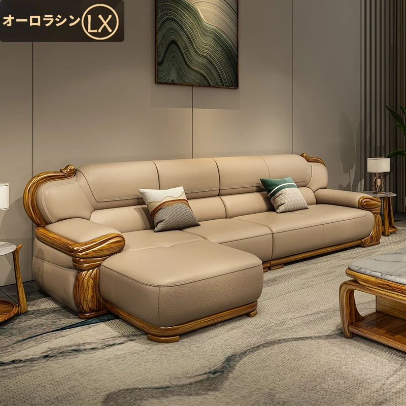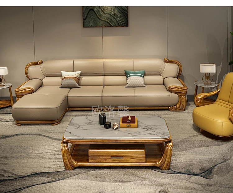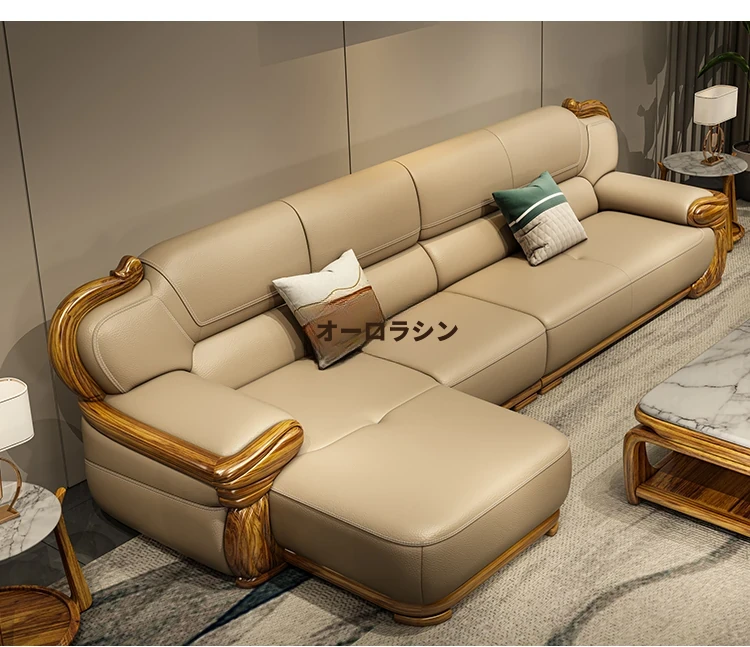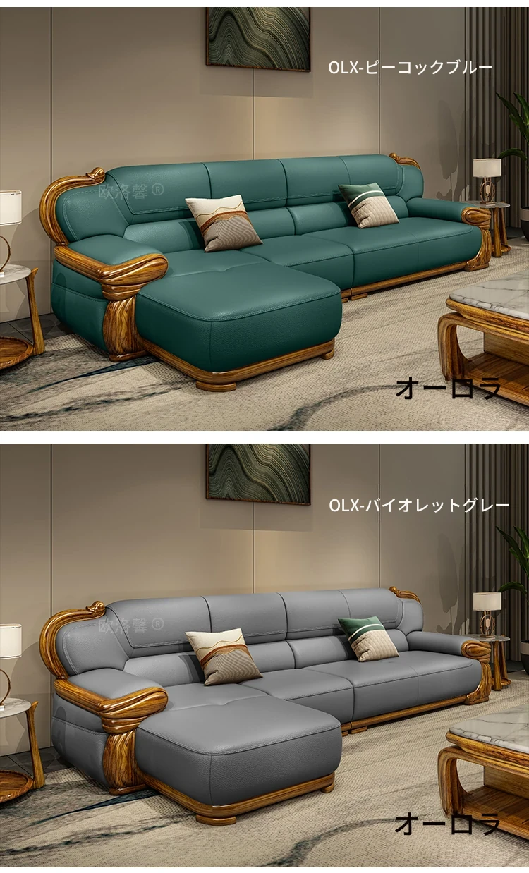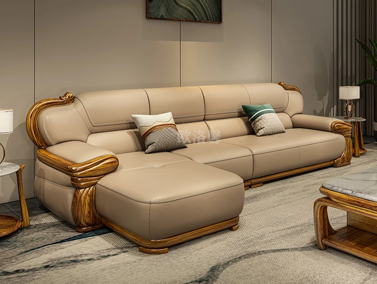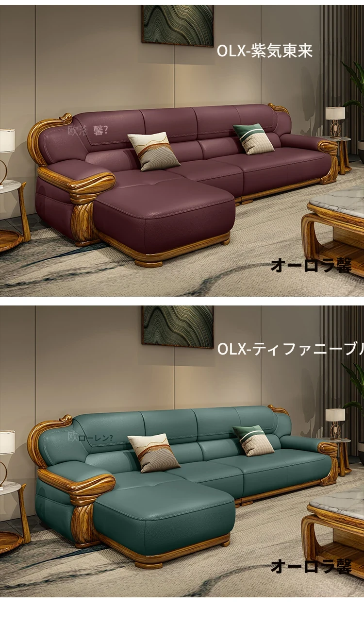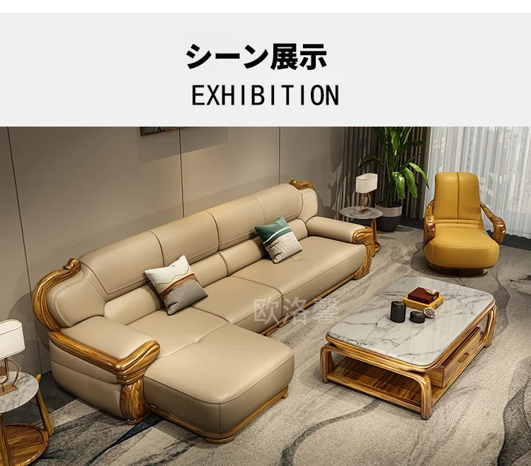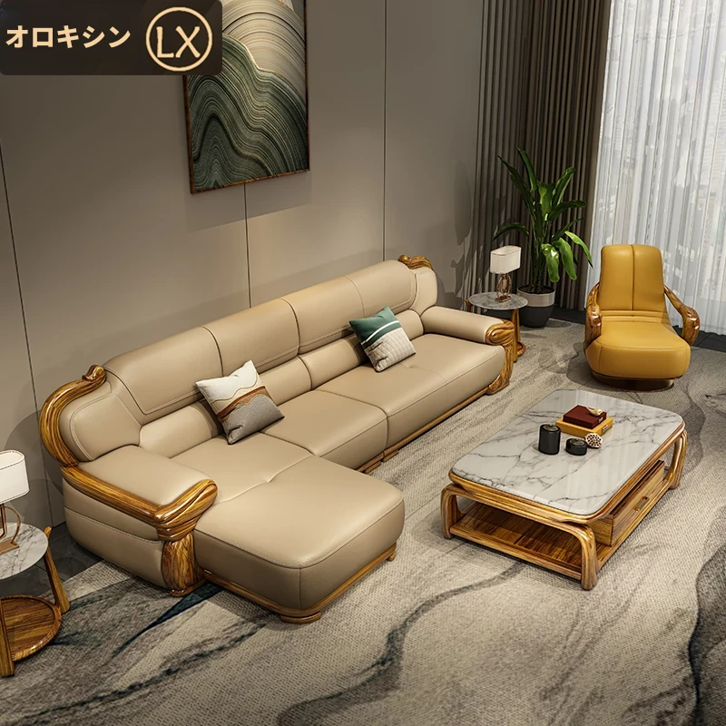 アフリカン・ウッディー・ウィルロー・レザー製コーナーソファー 新中式 高級別荘リビング用フルセット家具 高級感あふれるデザインで、あなたの空間を華やかに演出します!