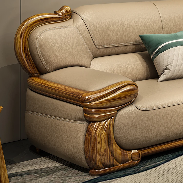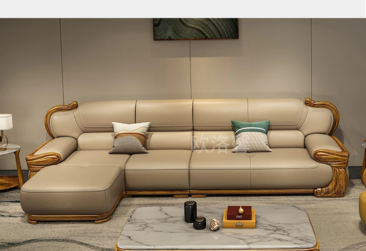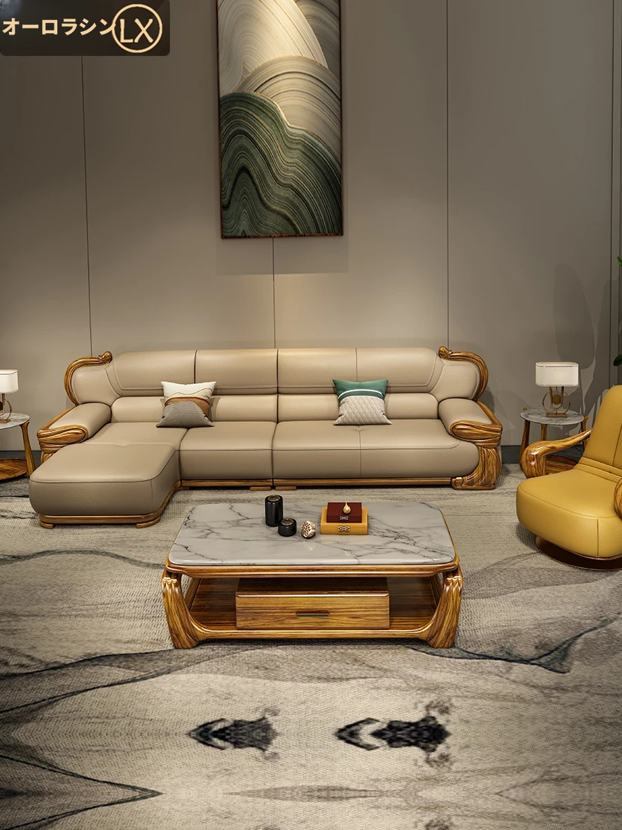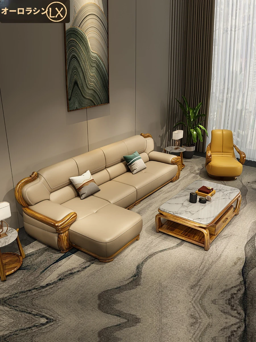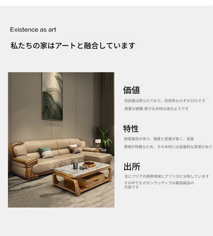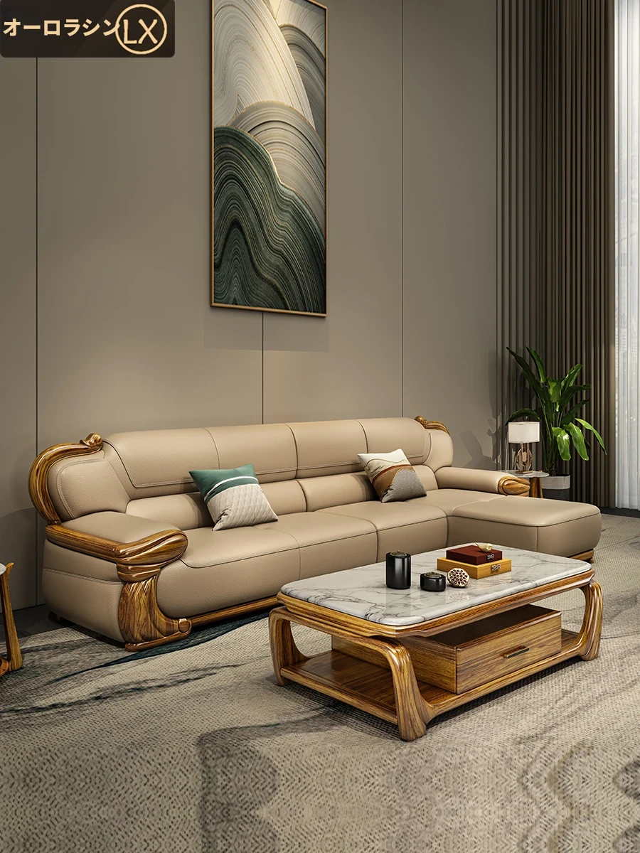 アフリカン・ウッディー・ウィルロー・レザー製コーナーソファー 新中式 高級別荘リビング用フルセット家具 高級感あふれるデザインで、あなたの空間を華やかに演出します!