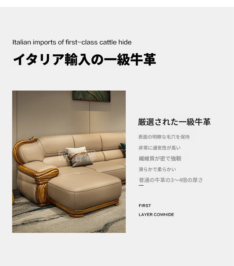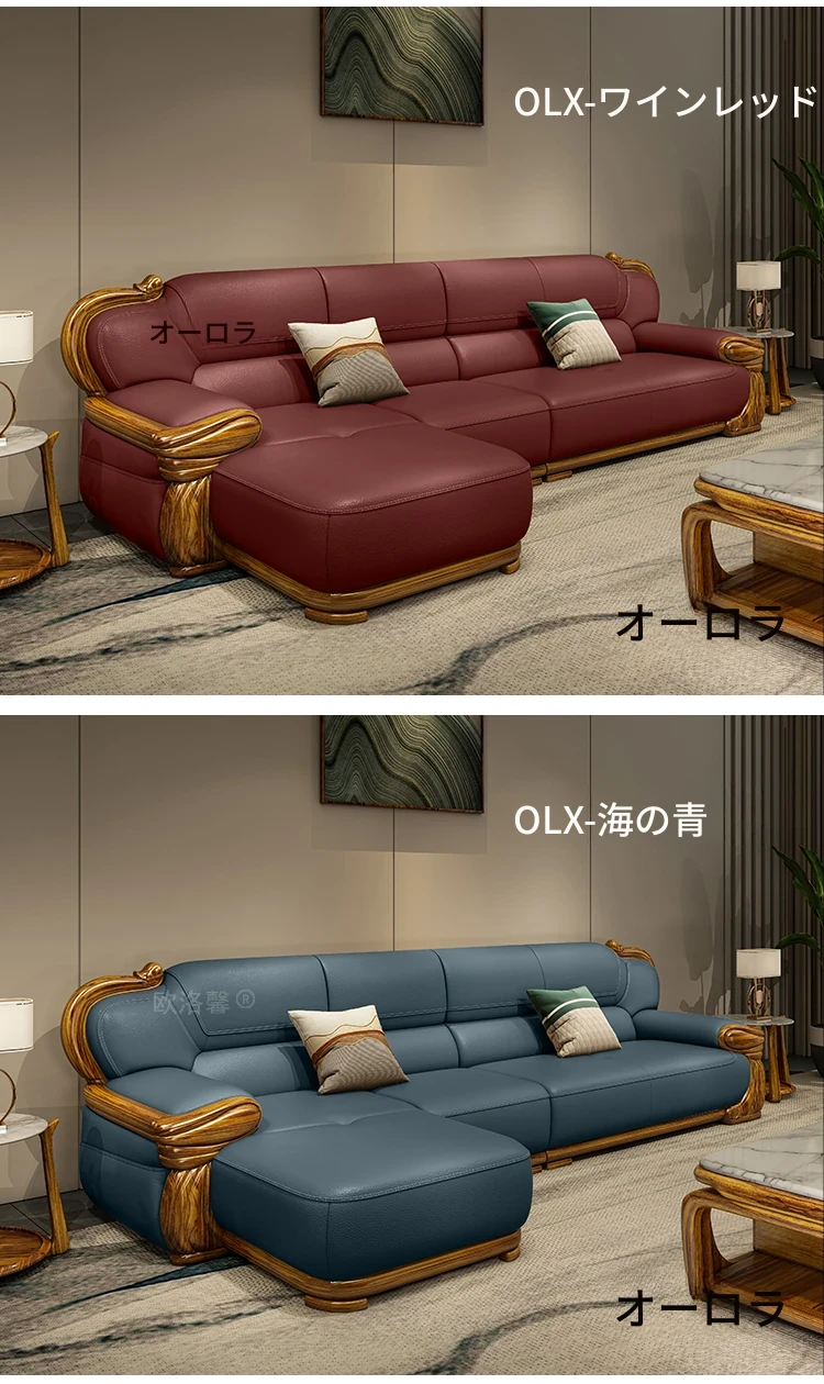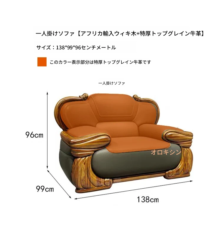 左貴妃ソファ ウコン材+特厚頭層牛革