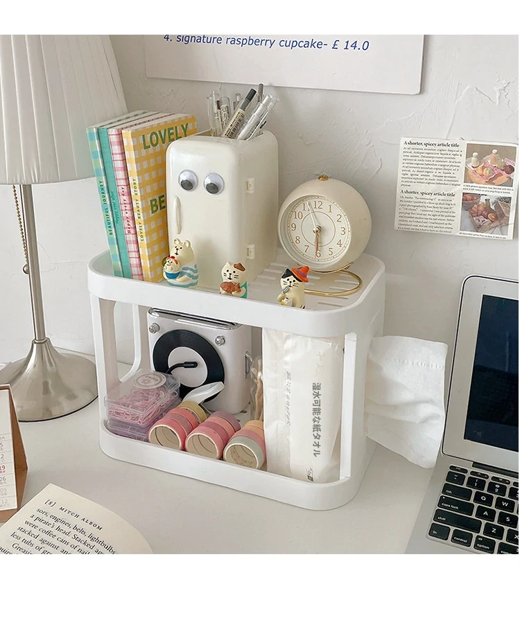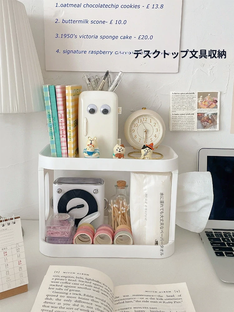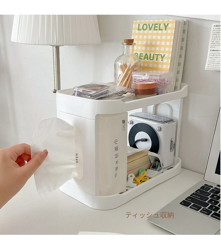 シンプルでおしゃれなデスク収納ラック|学生向け・インスタ映え・寮生活・化粧品・文房具・小物整理に最適な多段式収納ボックス!あなたのスペースをすっきりと整えるアイテムです。
