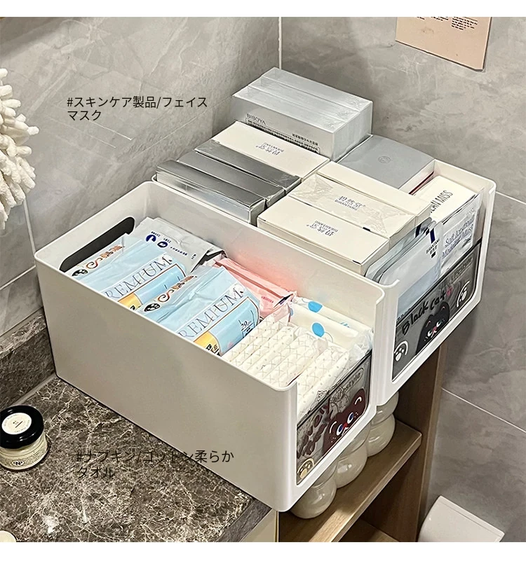 シンプルな収納ボックス|デスク周りをスッキリ整理!化粧品・ティッシュ・バスルーム用品に最適|2025年新作・多用途収納バスケットでお部屋をスッキリ!