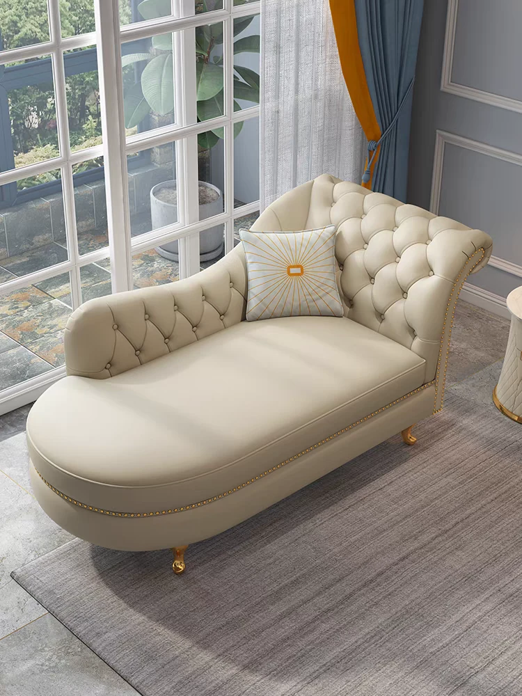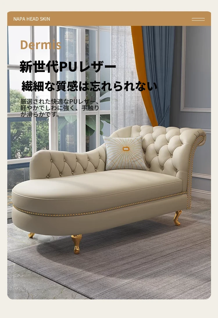 アメリカンライトラグジュアリーの高級ファブリック使用!モダンでおしゃれな貴妃椅子、超軽量なデザインで小さなリビングや寝室にもぴったり。リラックスできる欧風のラウンジソファで、あなたの空間を格上げ!