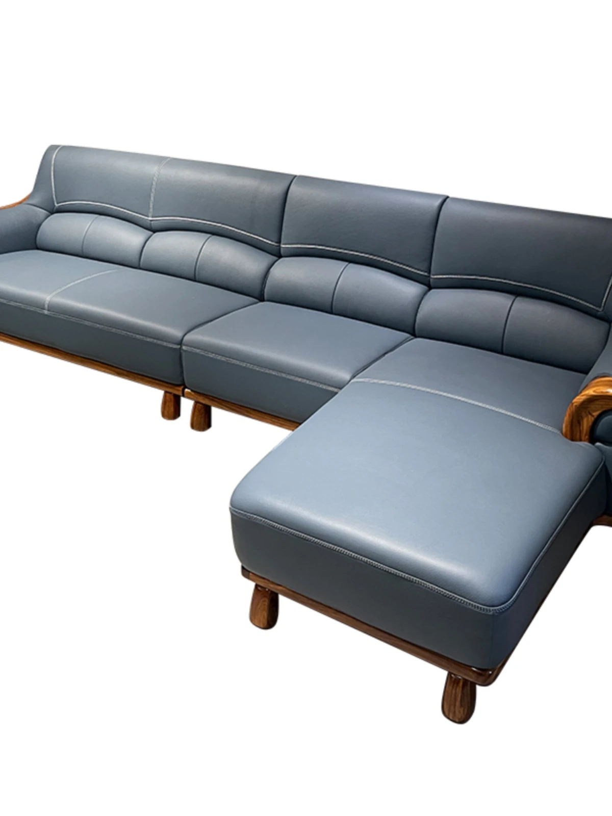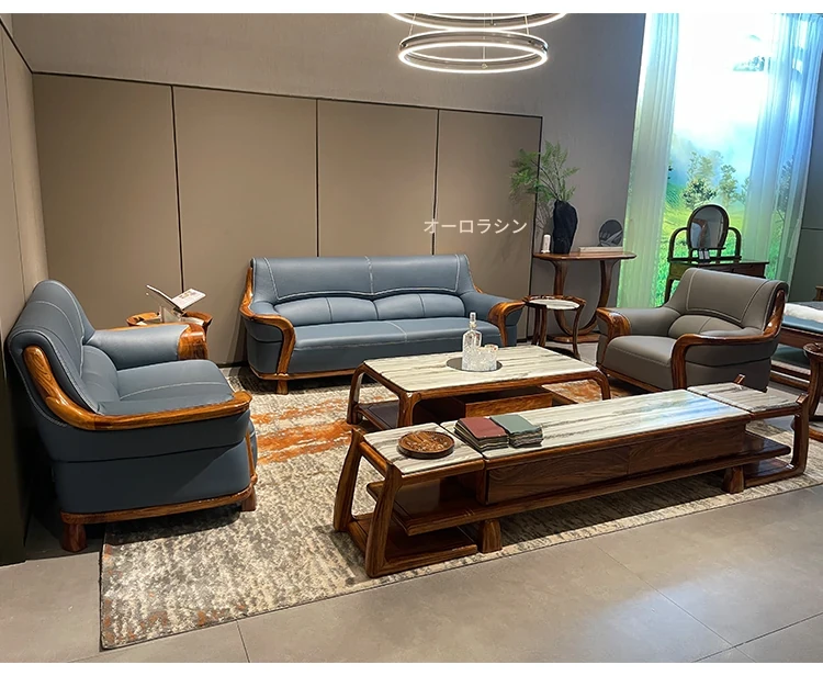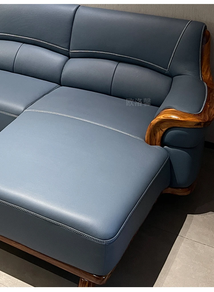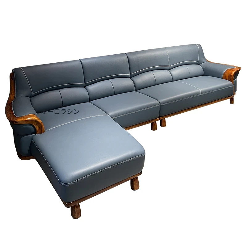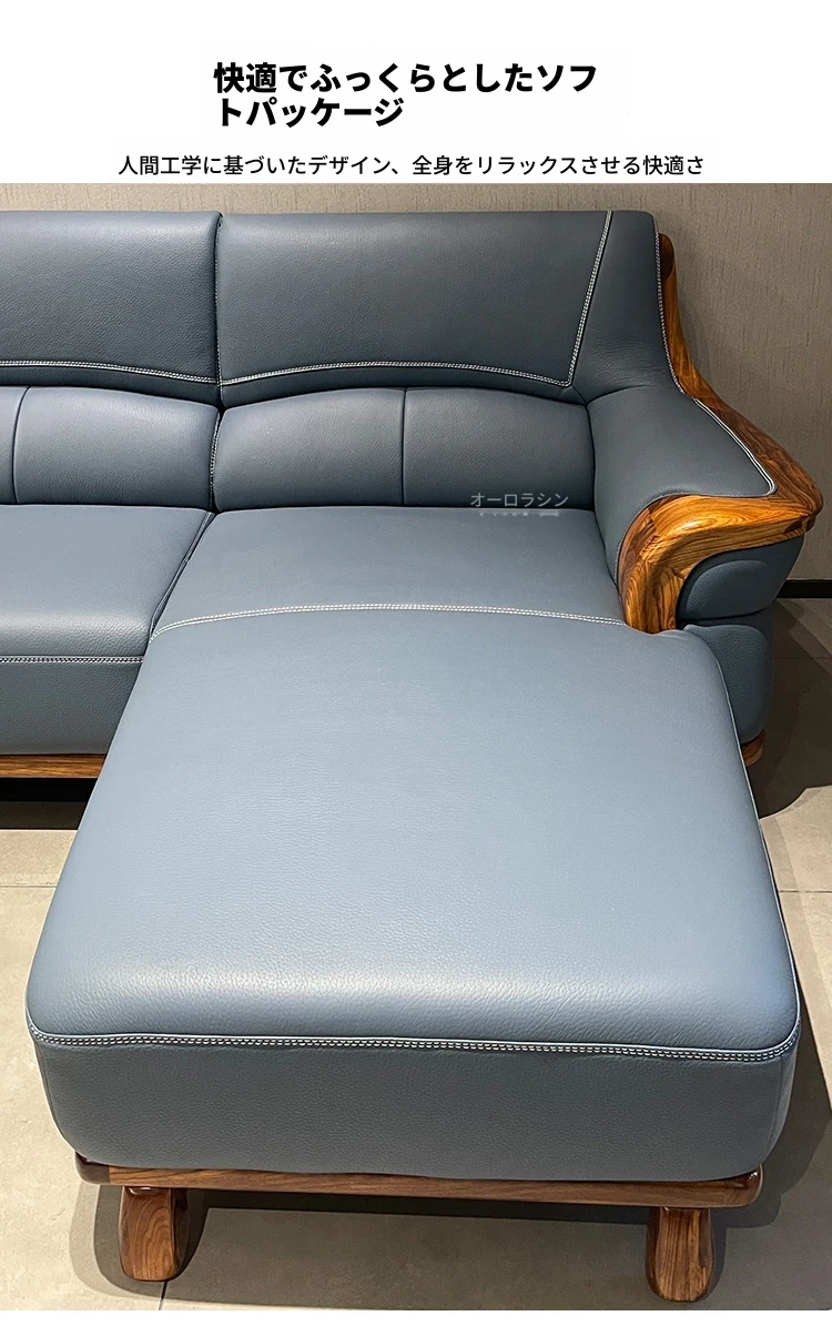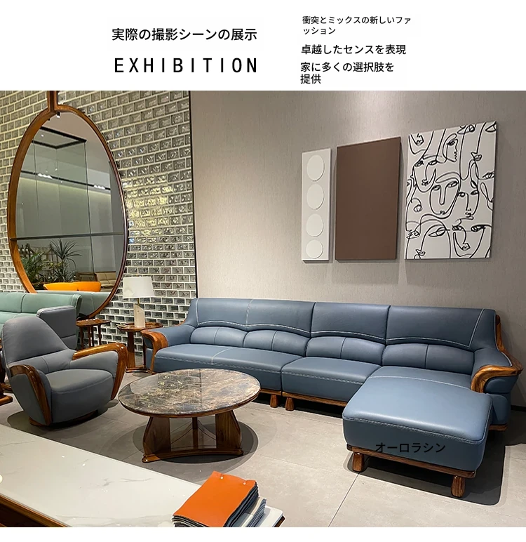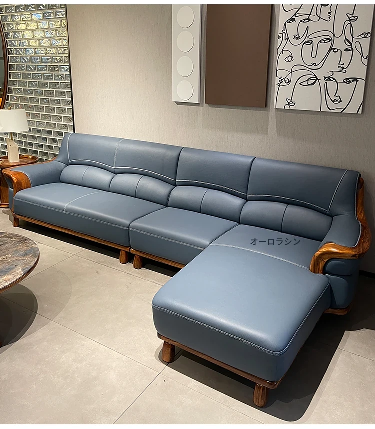現代新中式軽奢イタリアンウッディー本革大平層ヴィラ用貴妃角ソファセット - 優雅なデザインで、贅沢なひとときを演出します。