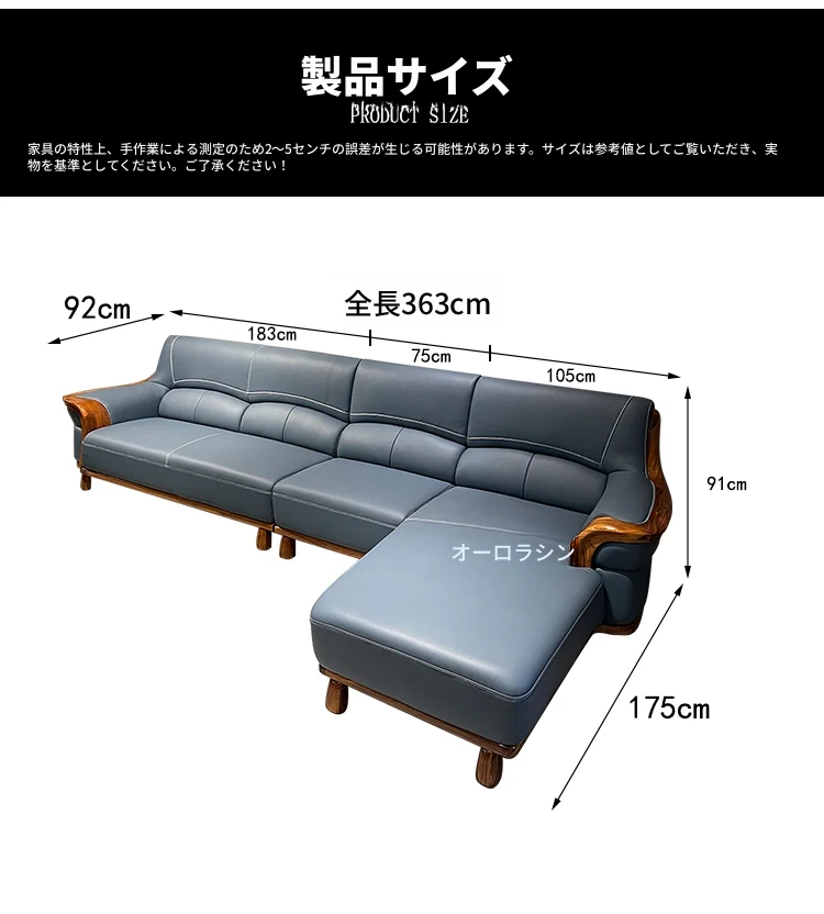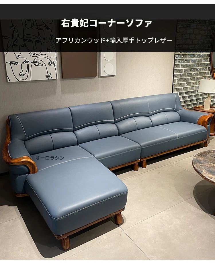 ウッジンム 真皮 右貴妃コーナーソファ 1+3+貴妃