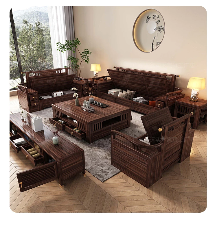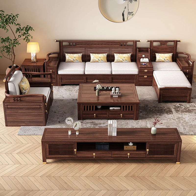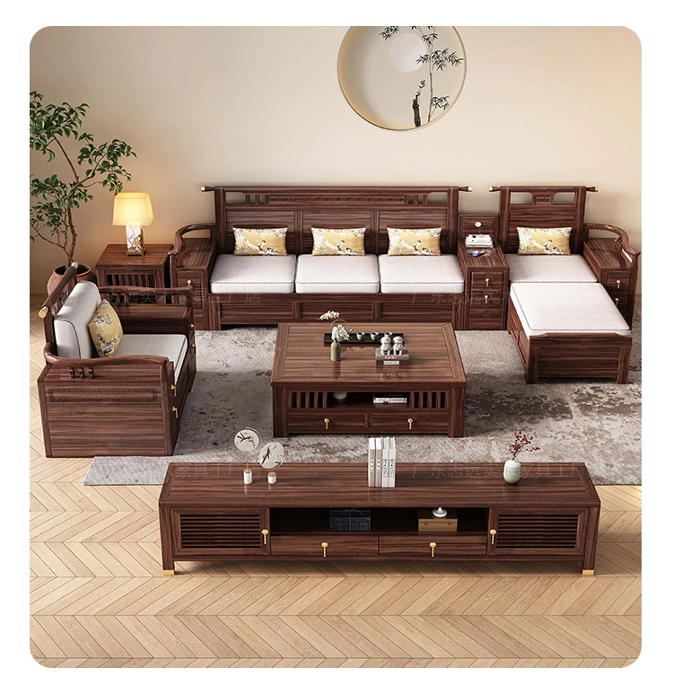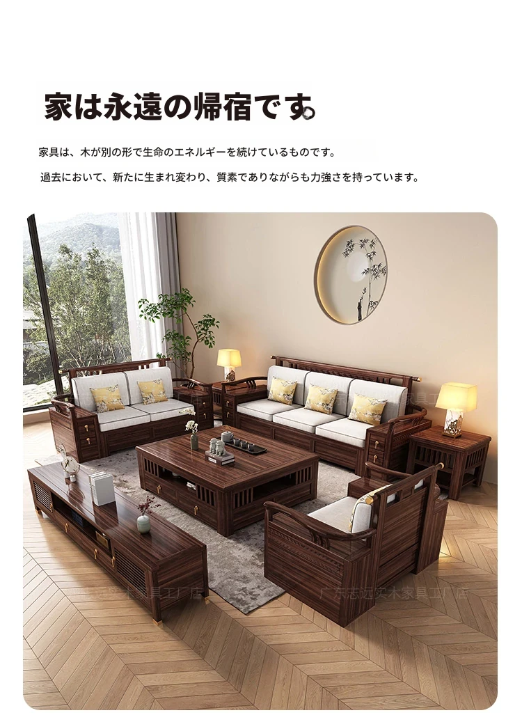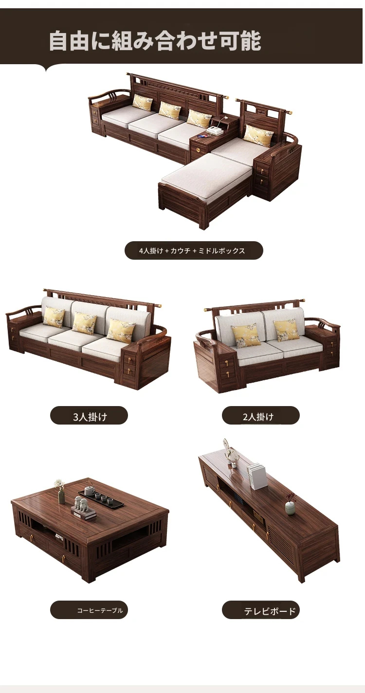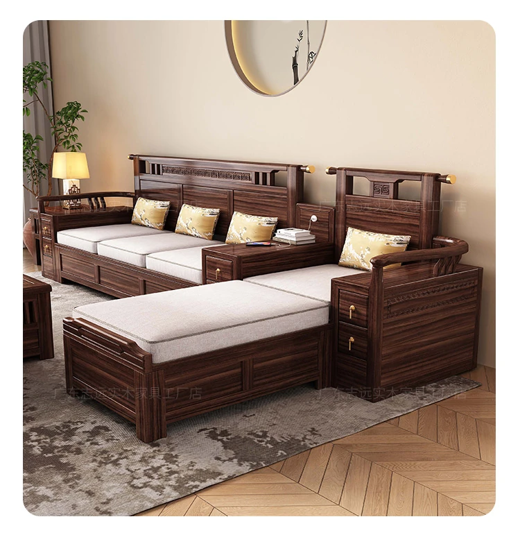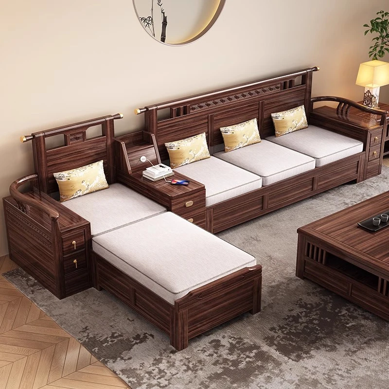新中式天然木製黒胡桃コーナーソファー、収納付きのモダンシンプルデザイン!小さな部屋にもぴったりなコンパクトサイズで、心地よいリビング空間を演出します。