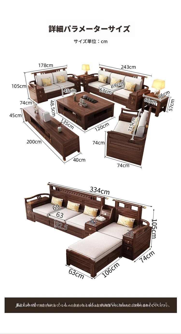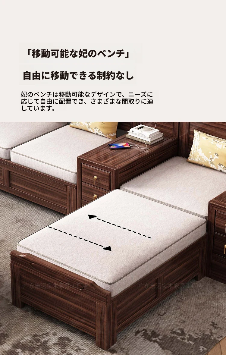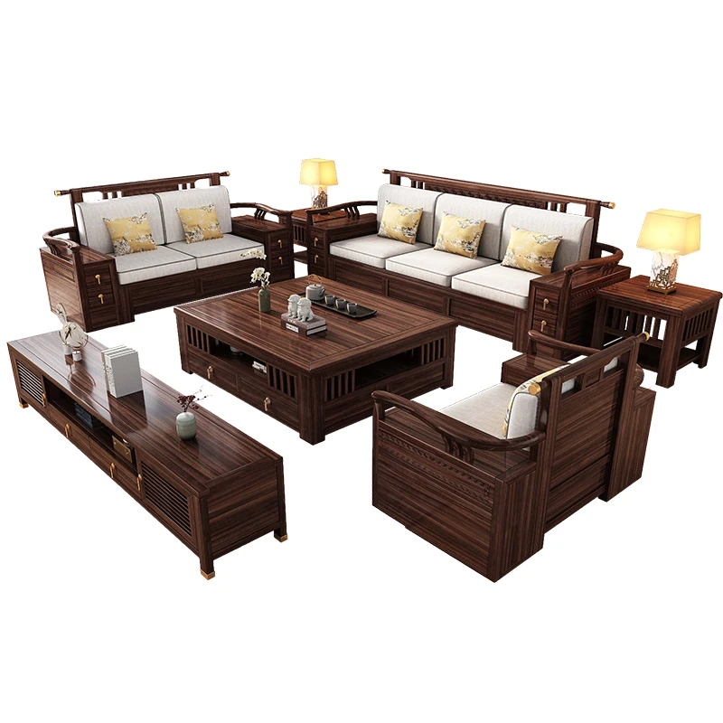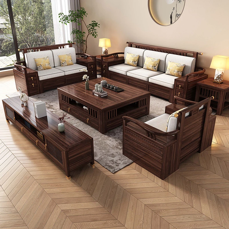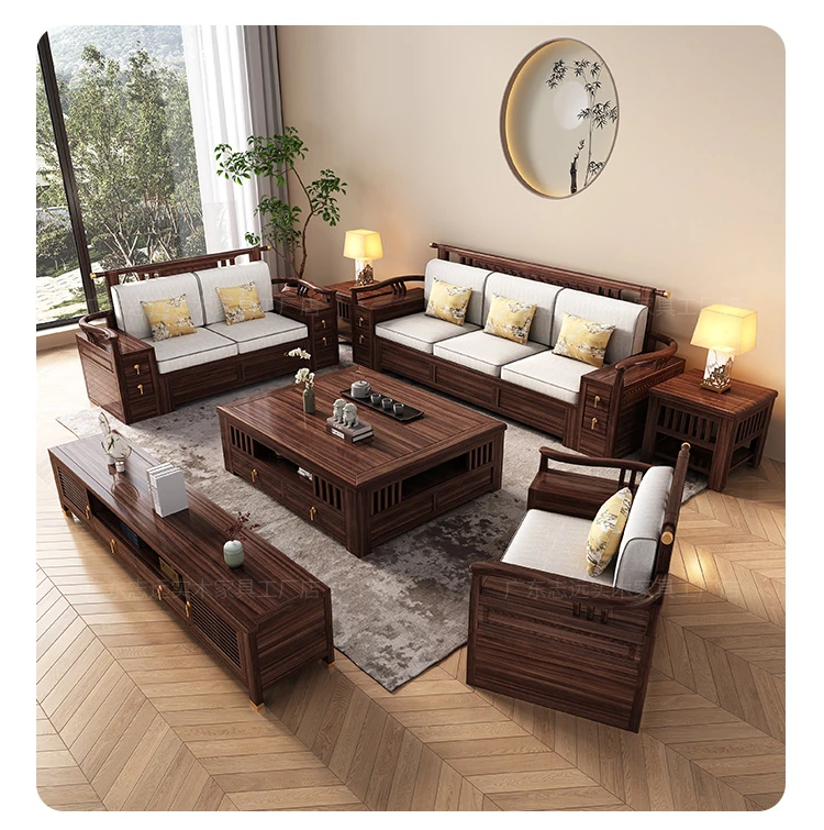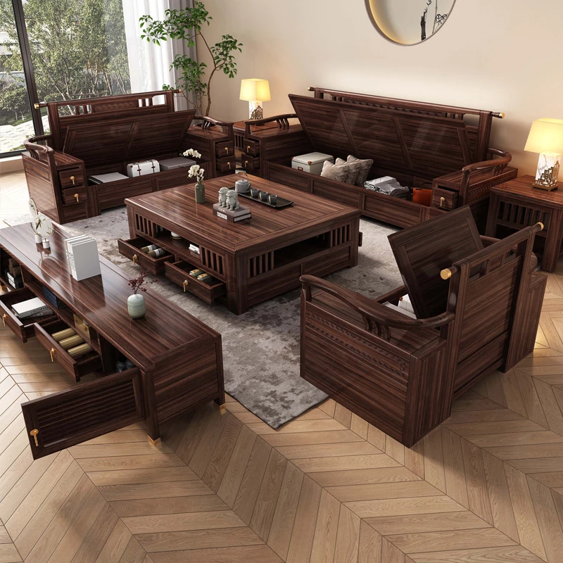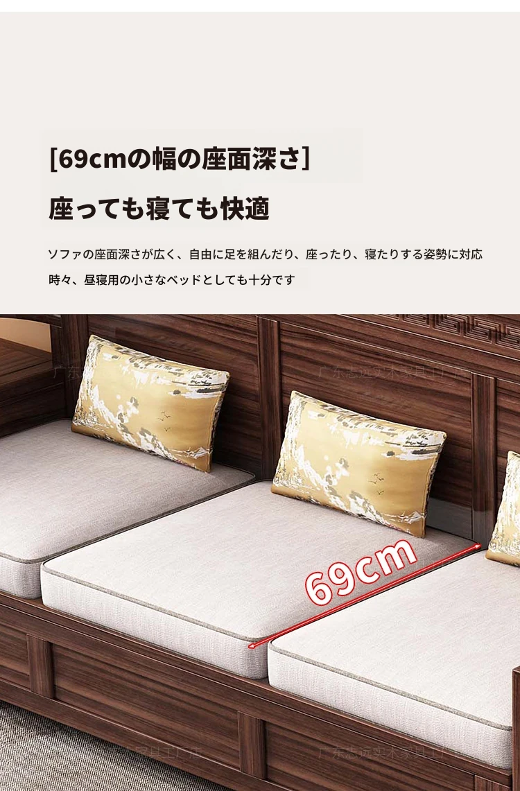 新中式天然木製黒胡桃コーナーソファー、収納付きのモダンシンプルデザイン!小さな部屋にもぴったりなコンパクトサイズで、心地よいリビング空間を演出します。