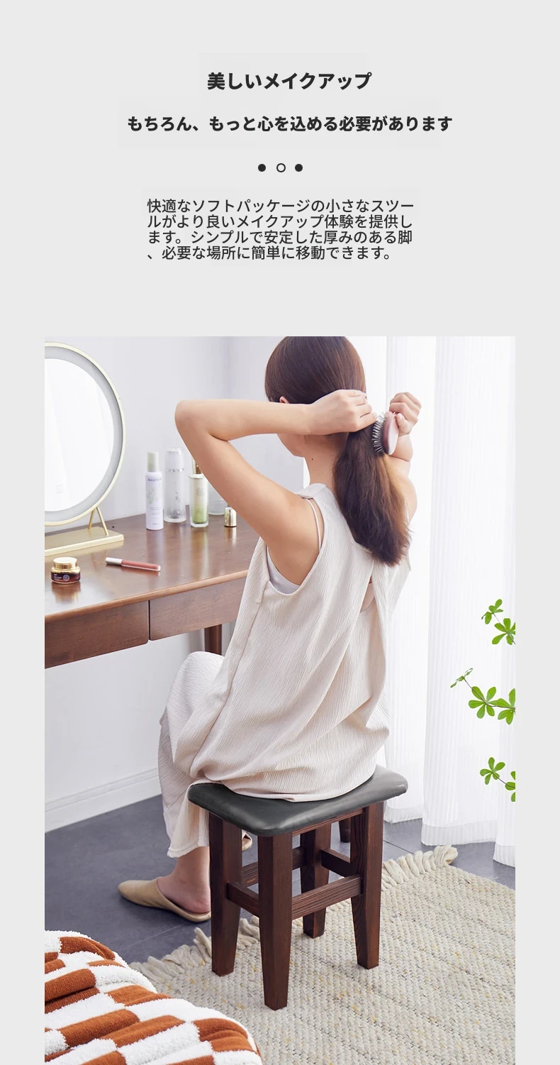全実木製のモダンなドレッサーチェア、シンプルでスタイリッシュなデザインの北欧風、寝室やダイニングに最適なファブリックソフトパッケージのナチュラルメイクアップスツール!