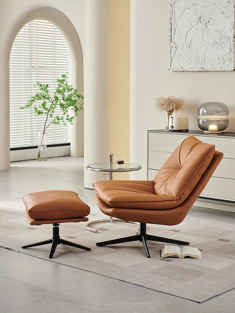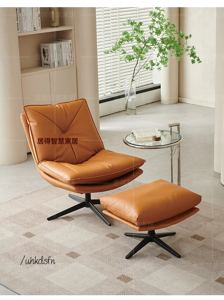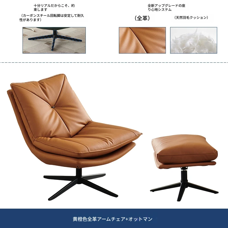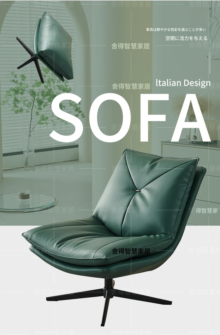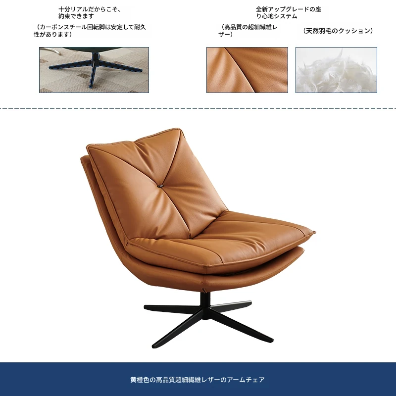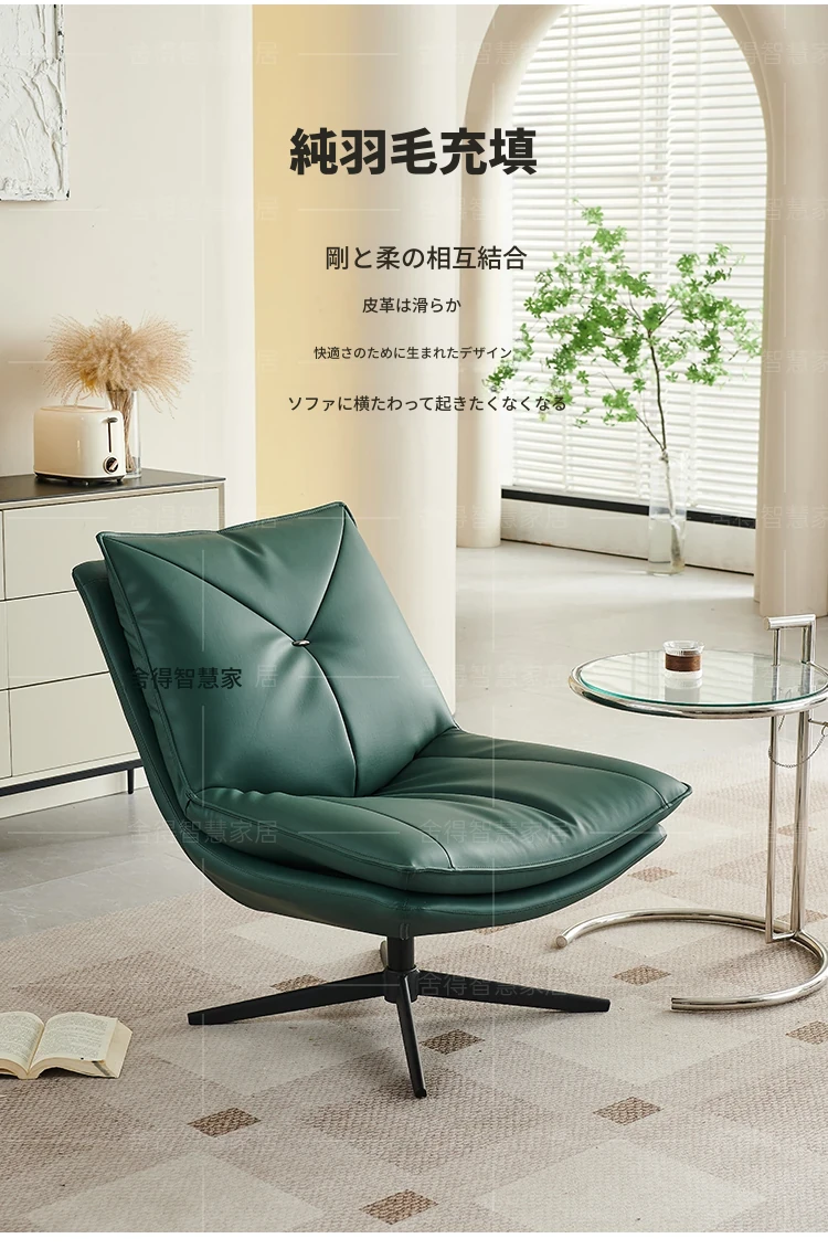 シンプルでおしゃれな回転式本革ソファチェア - モダンなリビングや書斎、バルコニーにぴったりの快適な一人用チェア。取り外し可能なデザインでお手入れも簡単!老虎椅子スタイルで、あなたの空間を引き立てます。