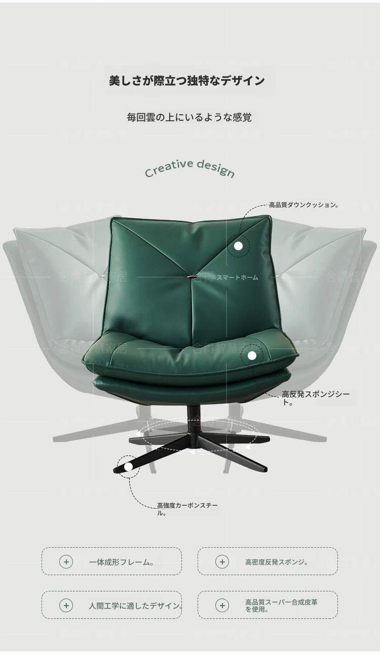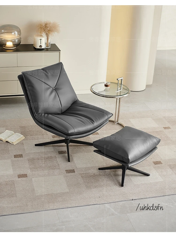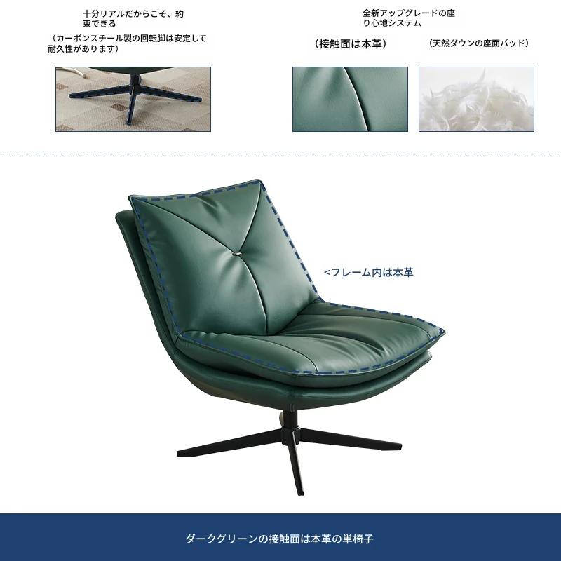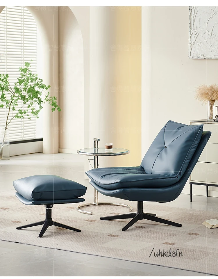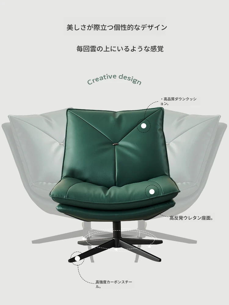シンプルでおしゃれな回転式本革ソファチェア - モダンなリビングや書斎、バルコニーにぴったりの快適な一人用チェア。取り外し可能なデザインでお手入れも簡単!老虎椅子スタイルで、あなたの空間を引き立てます。