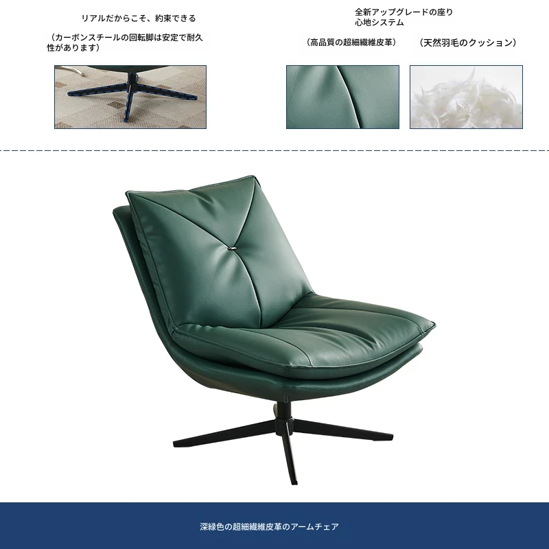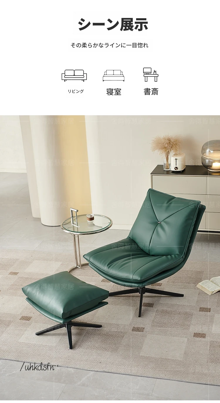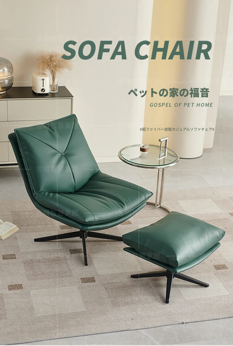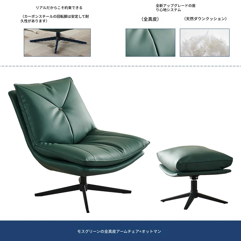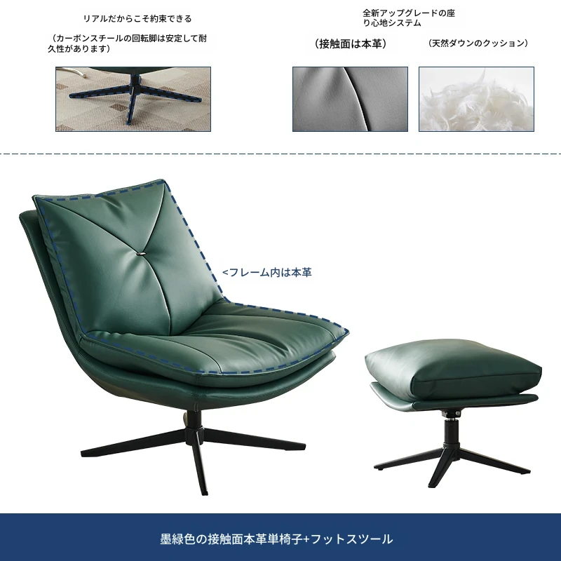 ダークグリーン超細繊維レザー単椅子+フットスツール