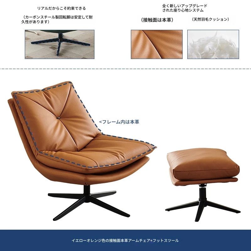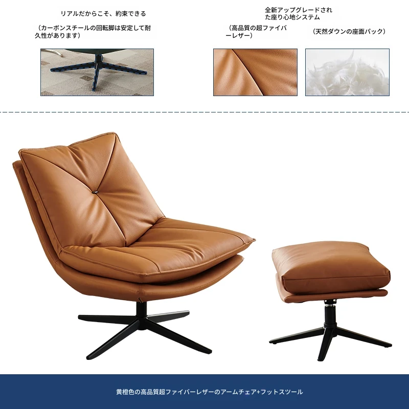 イエローオレンジ超細繊維レザー単椅子+フットスツール