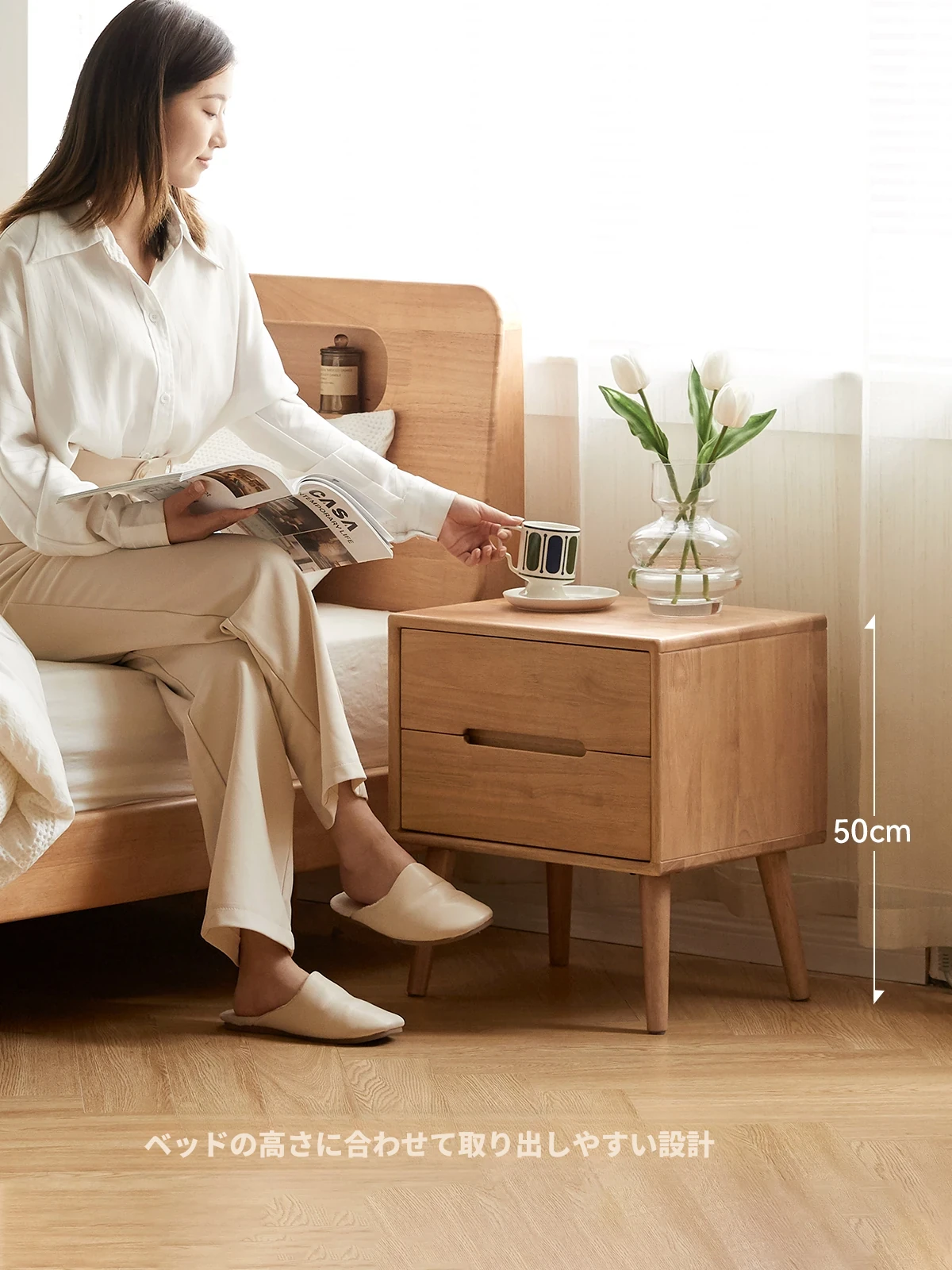 源氏木语小型ホームベッドサイドキャビネット - コンパクトでスタイリッシュ、和風デザインが魅力的!