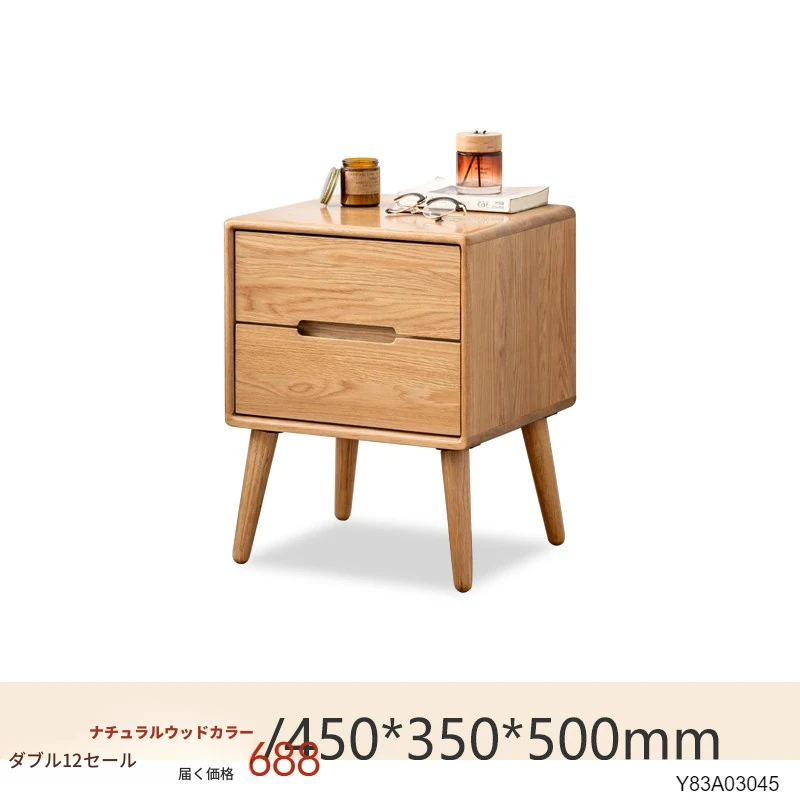 (オーク)0.45m ダブルドロワーナイトテーブル(450*350*500mm)