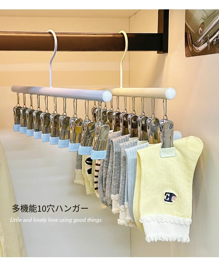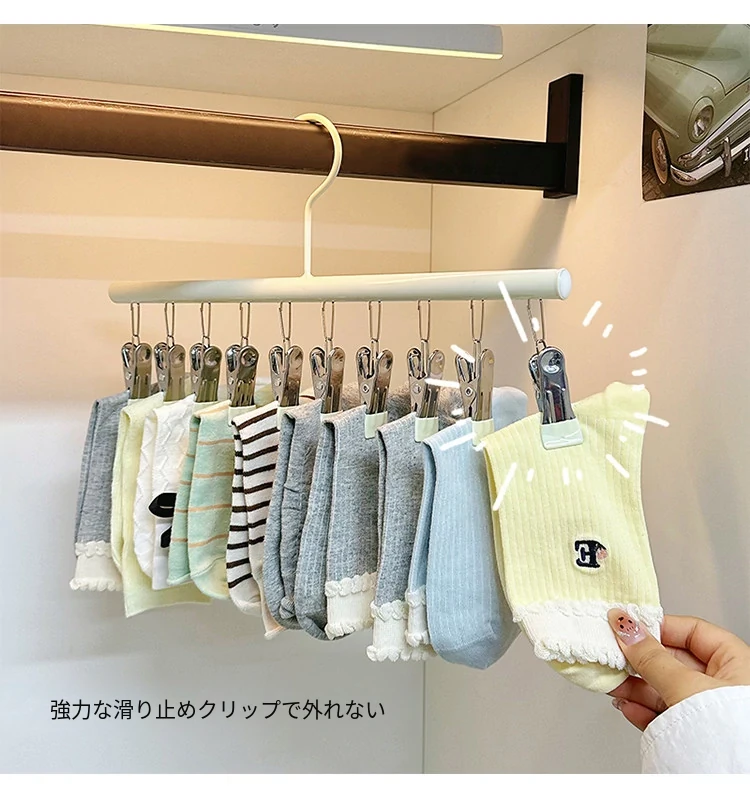 多機能防風スチール製ソックスクリップ - 家庭用無痕ハンガー!靴下、パンツ、帽子、ネクタイもこれ一つで完璧に干せる便利アイテム!おしゃれで実用的な収納アイデアで、あなたの生活をもっと快適に!