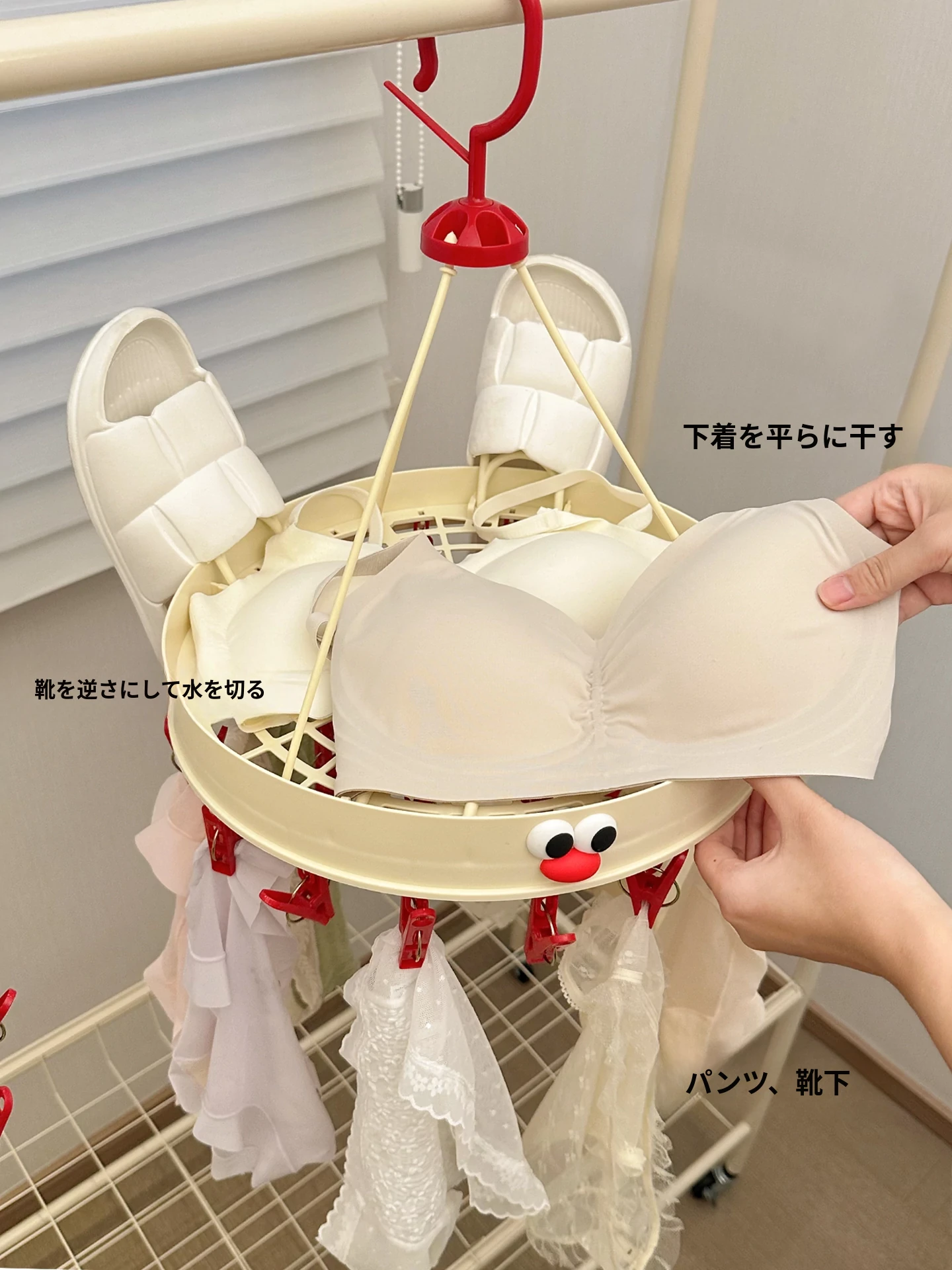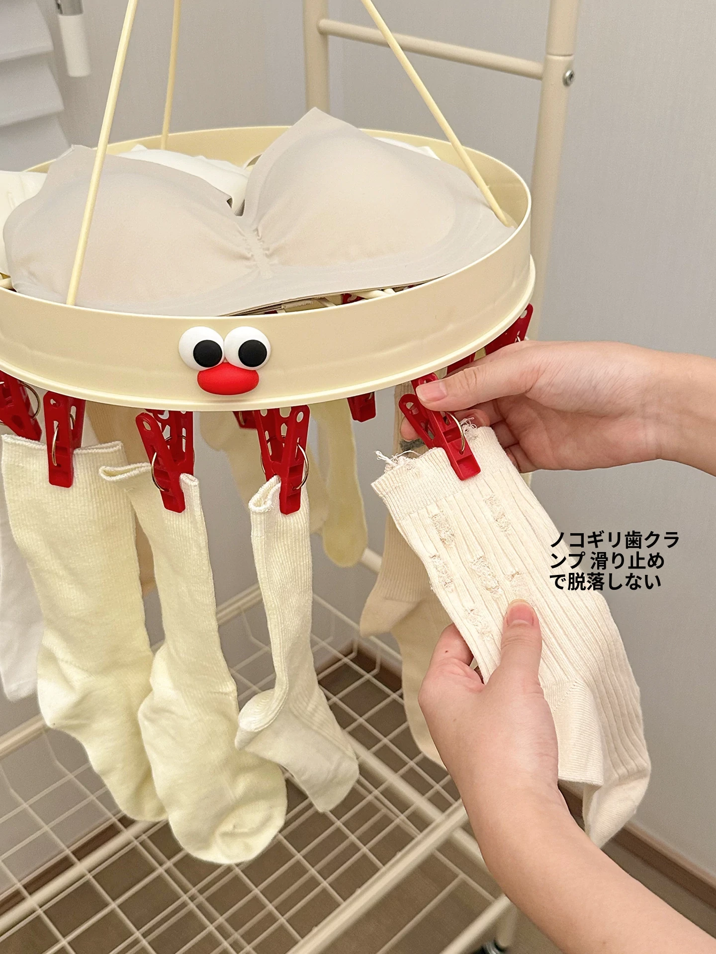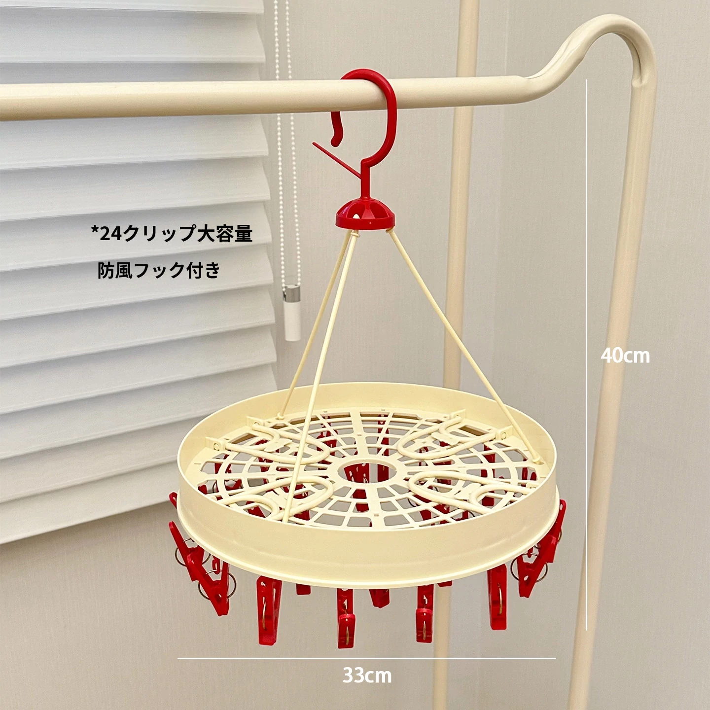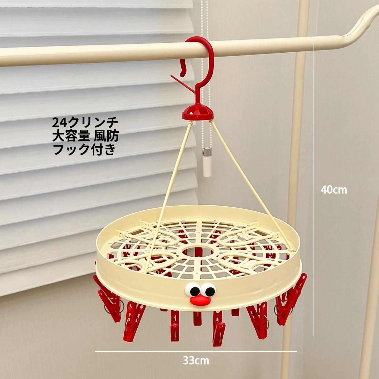 クリームホワイト-赤い口【折りたたみ干し12クリップ】