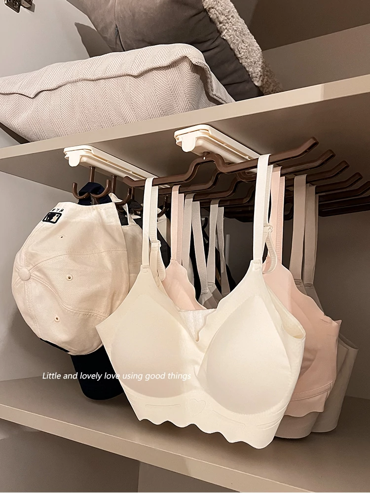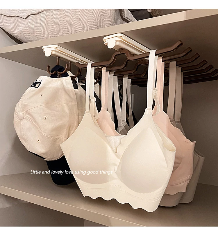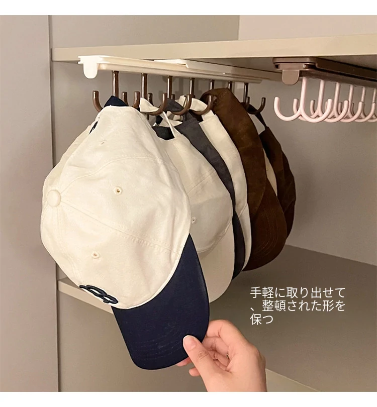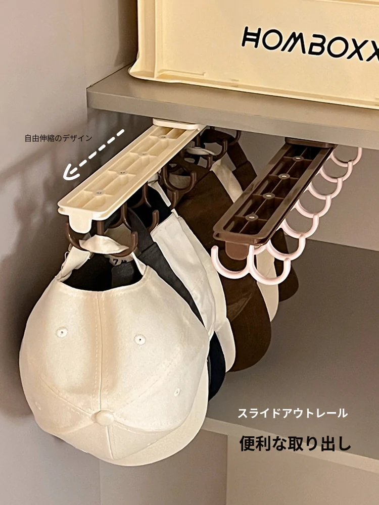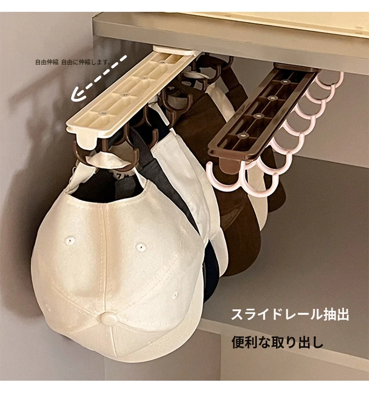 多機能スライド式伸縮下着収納ラック - フック付きキャップハンガー、穴あけ不要、クローゼットや寮に最適な引き出し式マルチフック衣類ハンガー!おしゃれで便利な整理整頓アイテム!