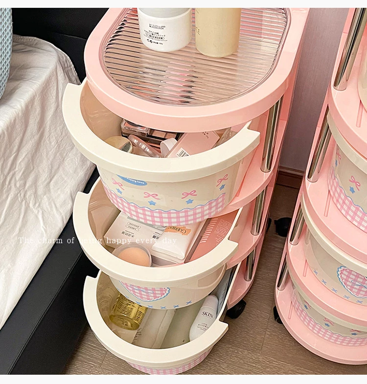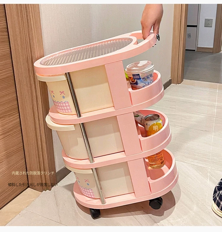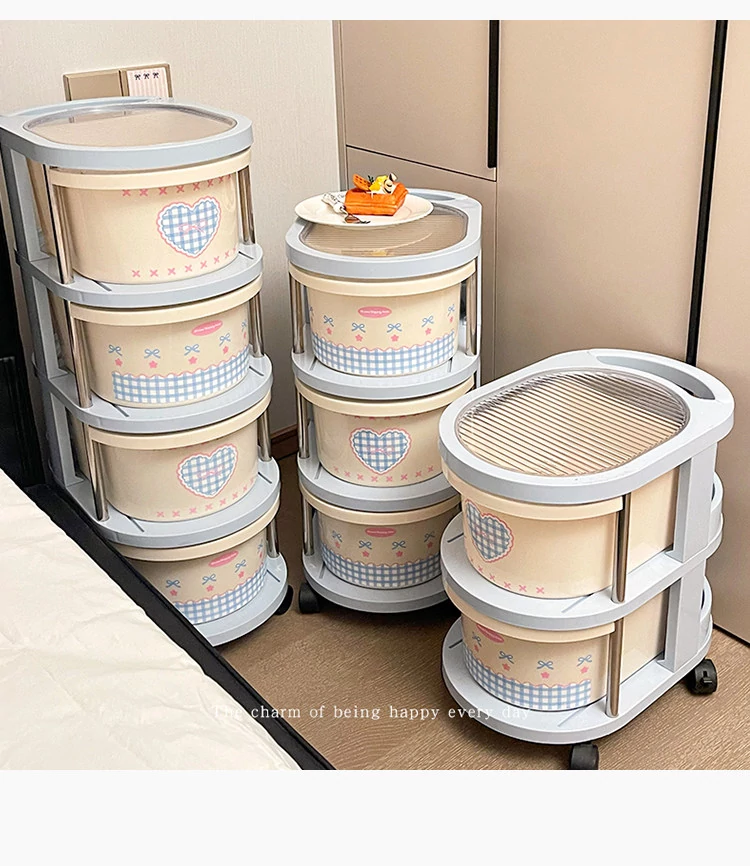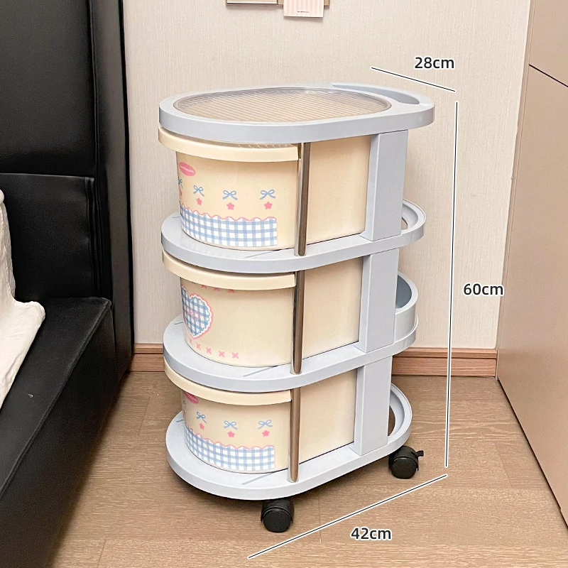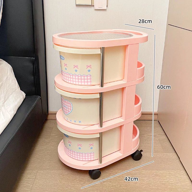 ベッドサイド収納キャビネット - 引き出し付きの移動式お菓子・おもちゃラック!おしゃれで便利な多層設計、寝室やリビングに最適な収納ソリューション!