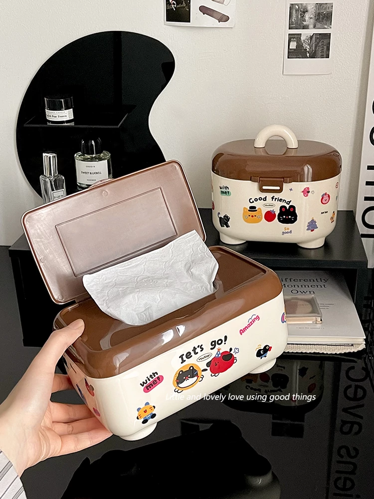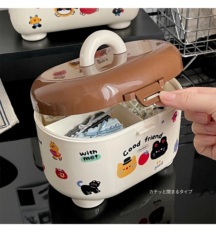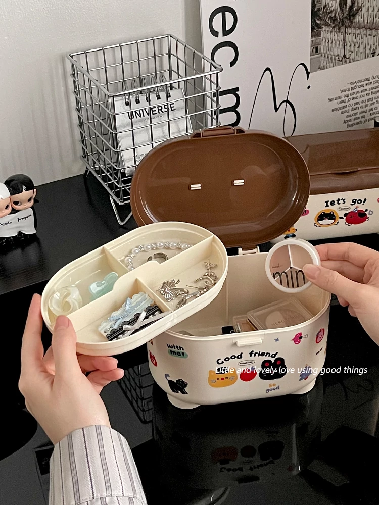 デスクトップ収納ボックス 防塵ティッシュボックス 大容量 ジュエリーボックス 学生・子供向け 二層仕切り整理ボックス おしゃれで機能的、デスク周りをスッキリ整理!