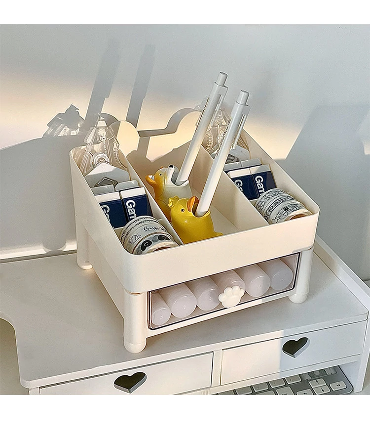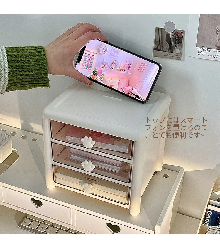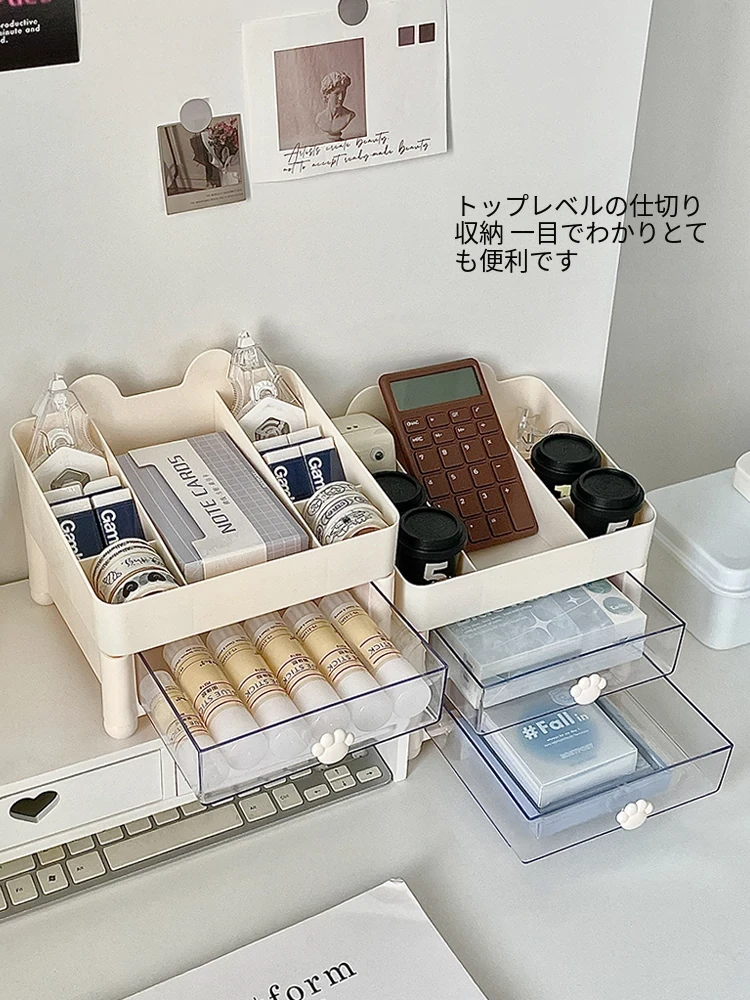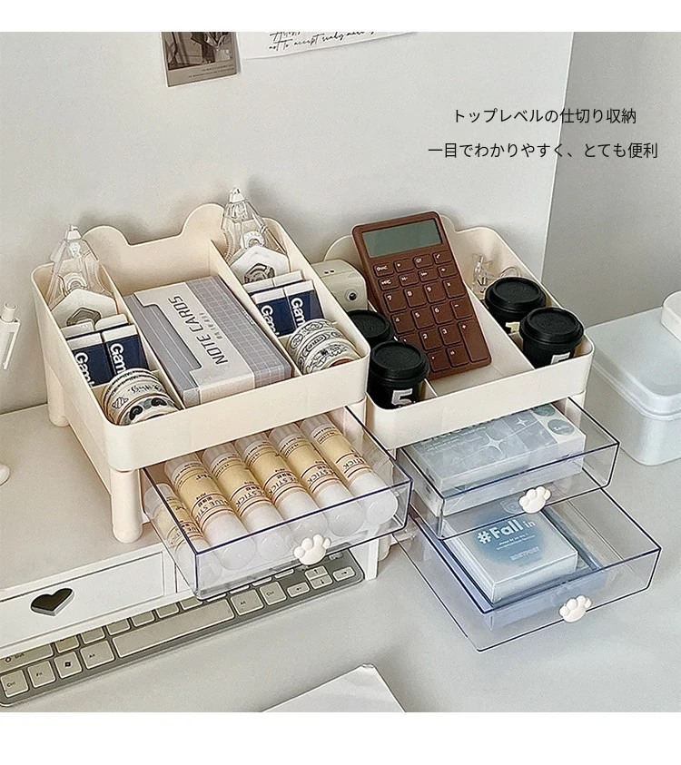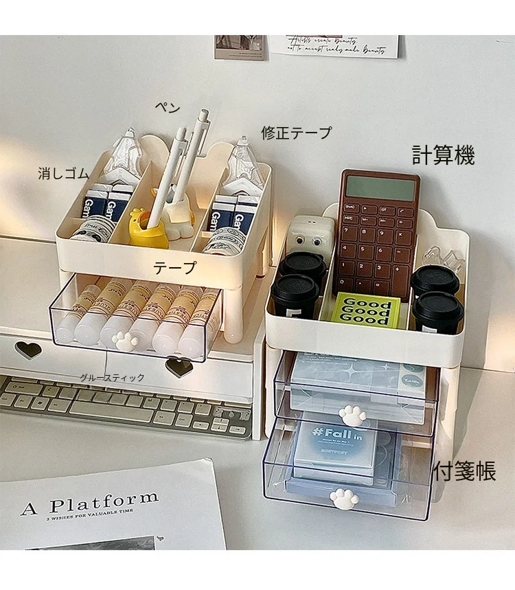デスク収納ボックス 引き出し式 手帳・文房具・ペン立て 学生・子供・オフィス用 机上整理ラック すっきりとしたデザインで、使いやすさ抜群!あなたの作業スペースを美しく整えます。