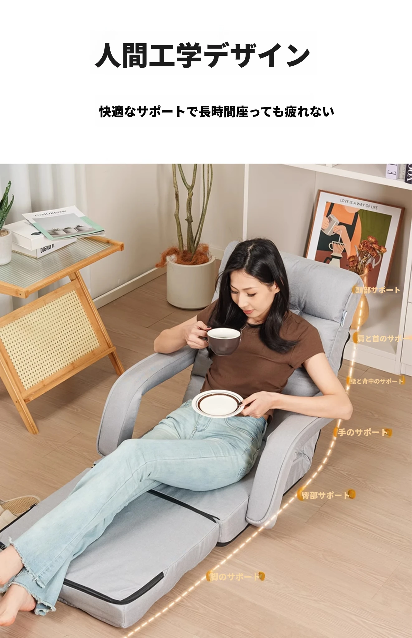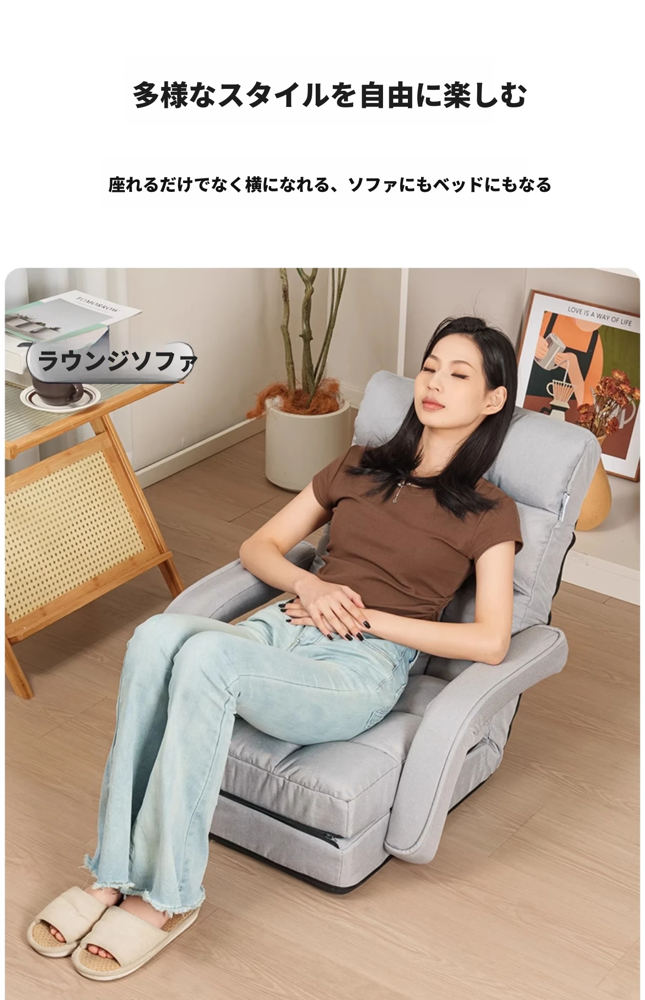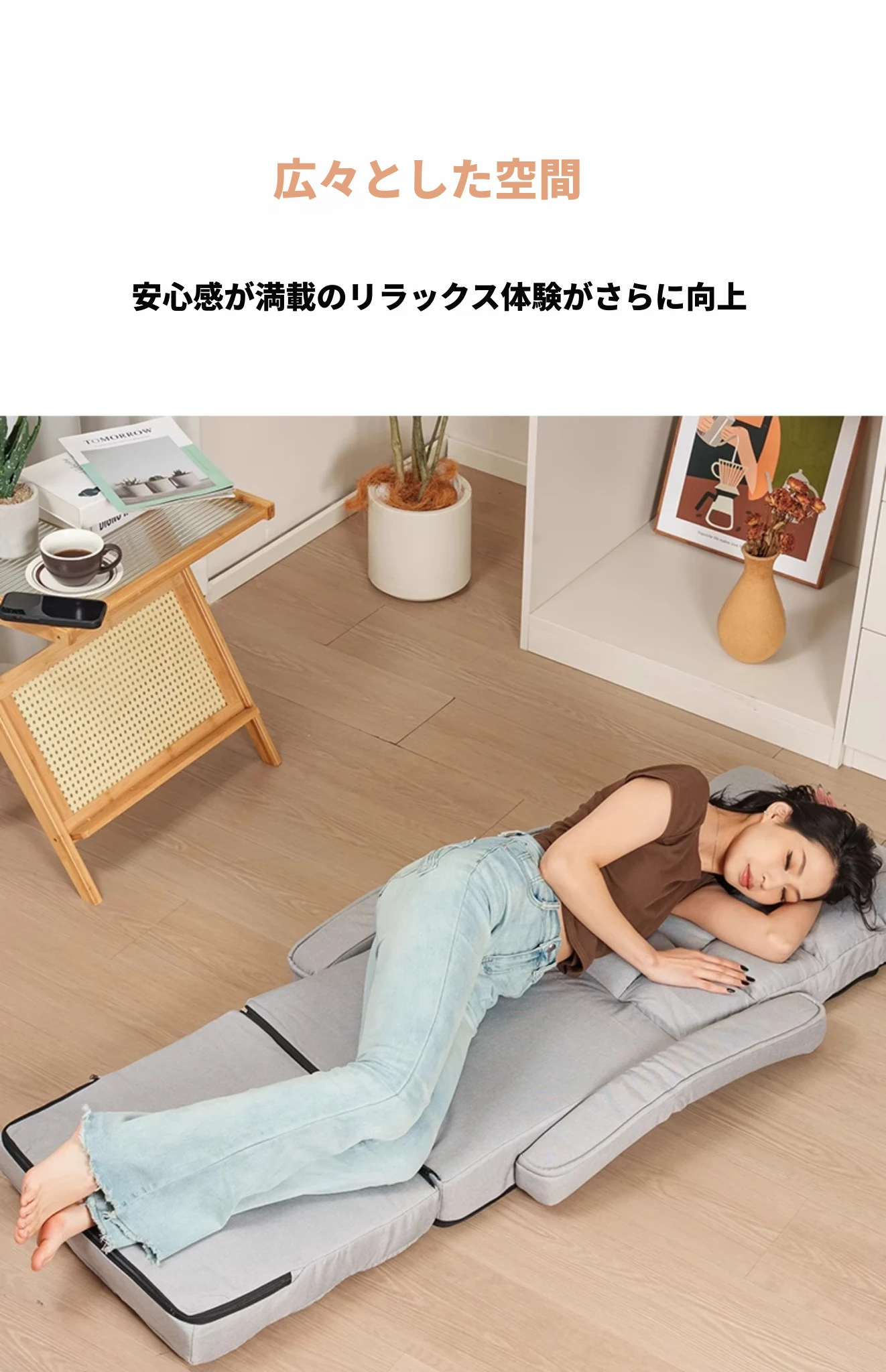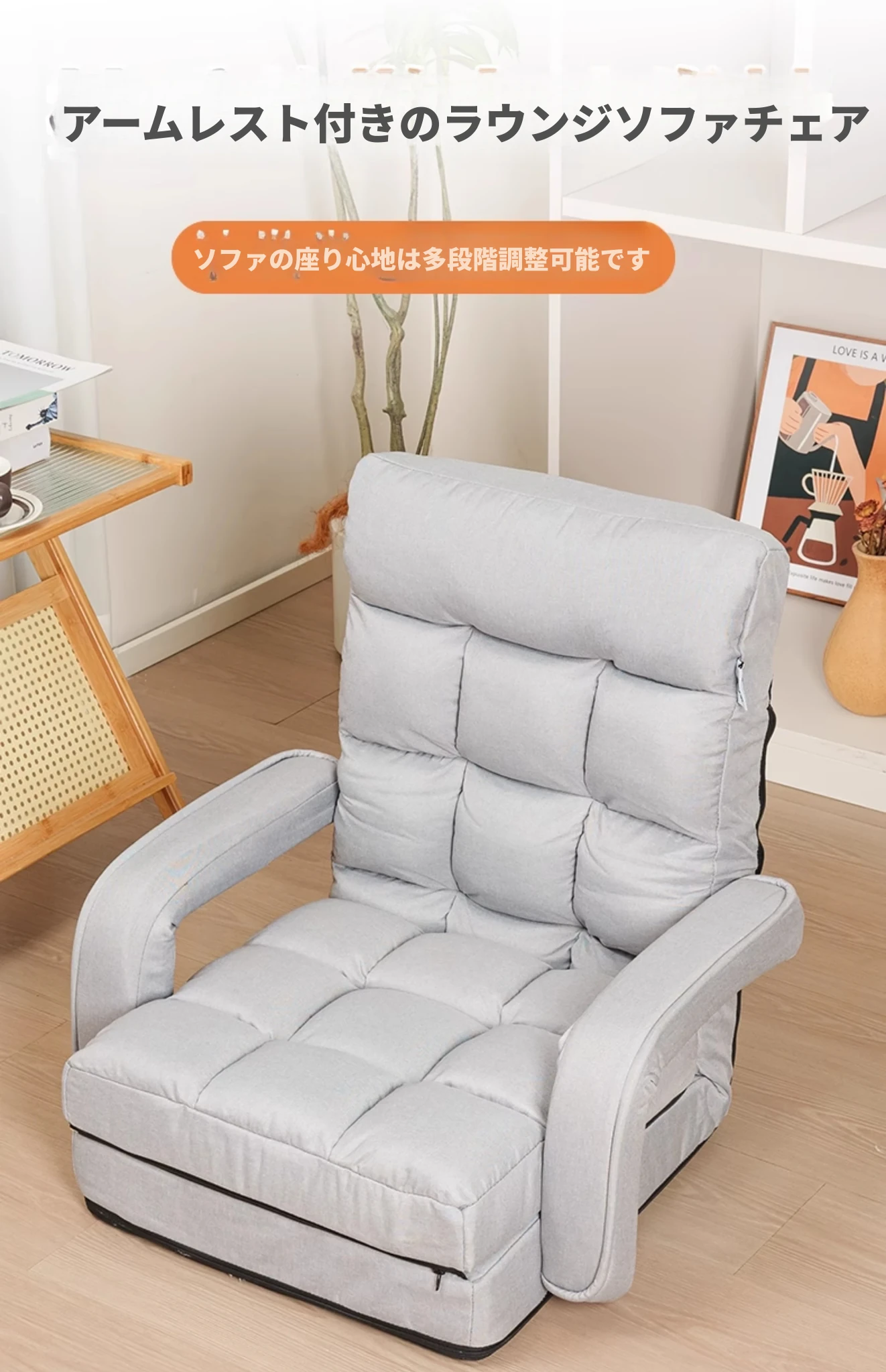 快適なひなたぼっこ、リラックスできる単独ソファ!折りたたみ可能なタタミスタイルのベッド、バルコニーや寝室にぴったりな懶人ソファ。寝転んだり、くつろいだり、自由自在な居心地の良いスペースを手に入れよう!