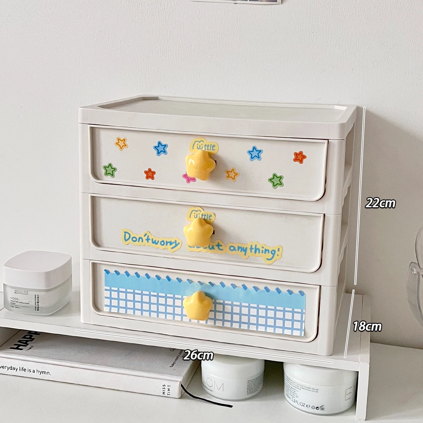 【4段】クリームホワイト+ステッカー+小さな星