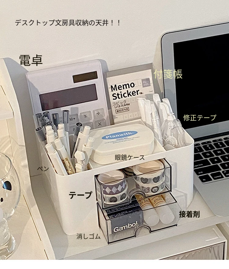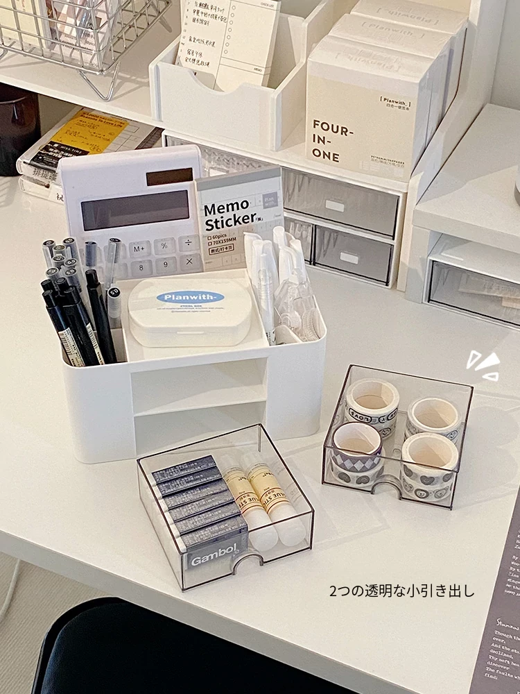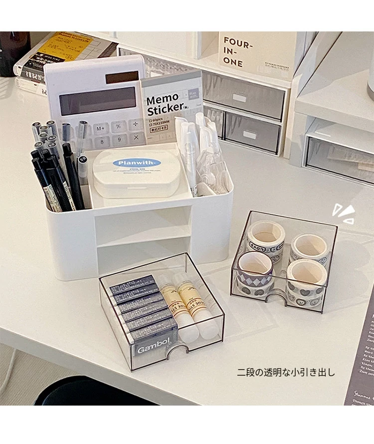 多層デスク収納ボックス - 引き出し式オフィスデスク用、学生寮にも最適な文房具や雑貨整理ボックス!スッキリ整頓で効率アップ!