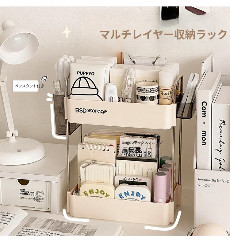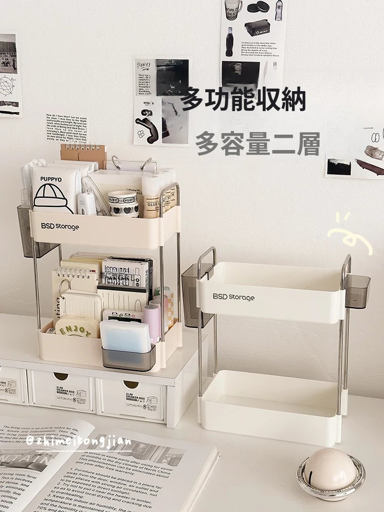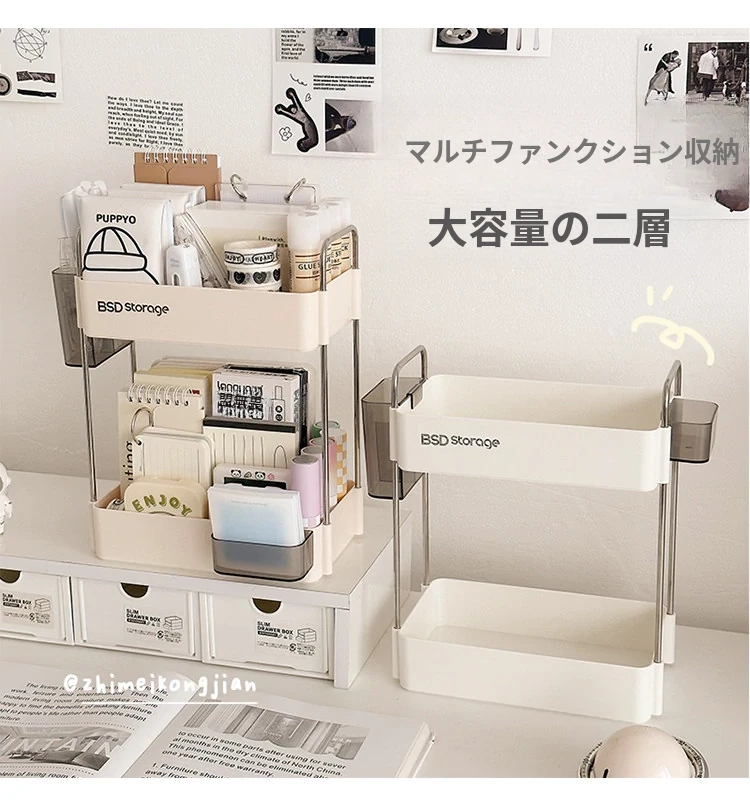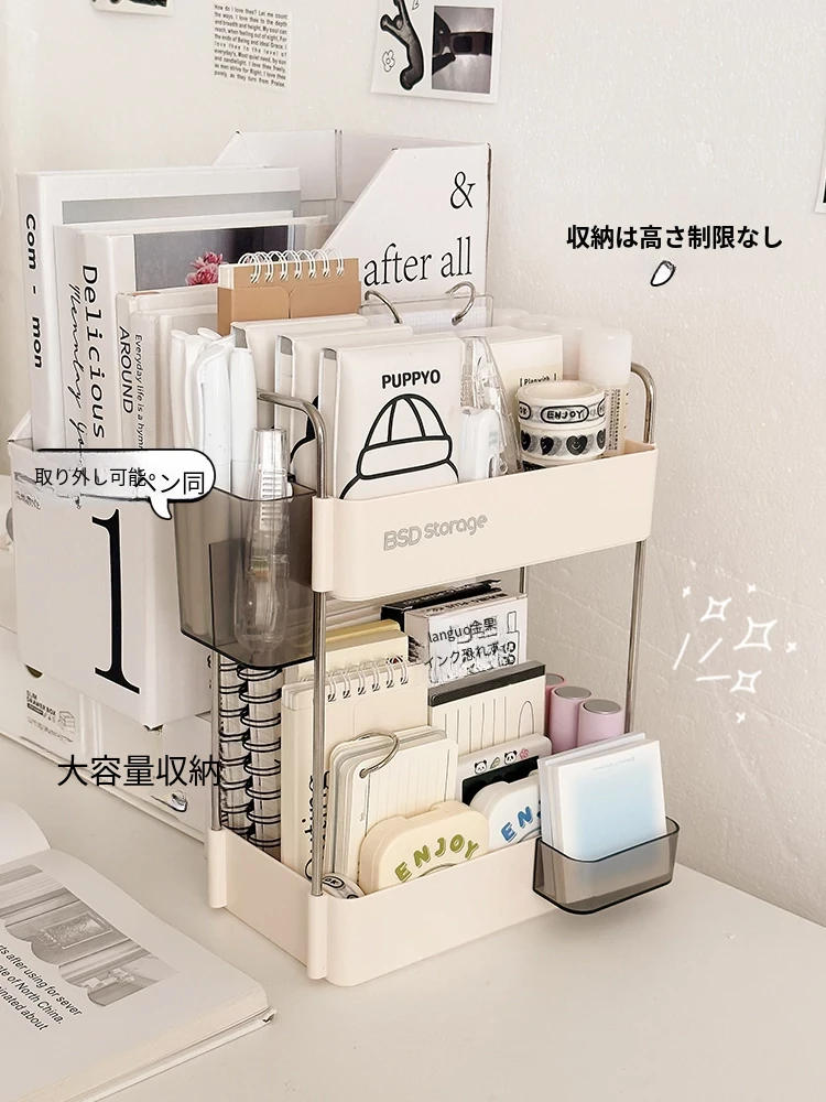 多層デスク収納ラック|書籍・書類整理に最適!オフィスや寮にぴったりの大容量デザイン|机上をスッキリ整頓する二段式収納シェルフ