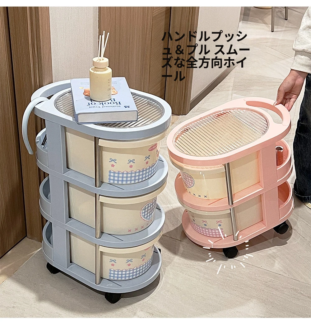 多機能キャスター付きラック - おしゃれなリビングに最適!移動も簡単な多層収納で、デスク下や寮にもぴったり。お菓子や小物をスッキリ整理できる便利な収納キャビネット!