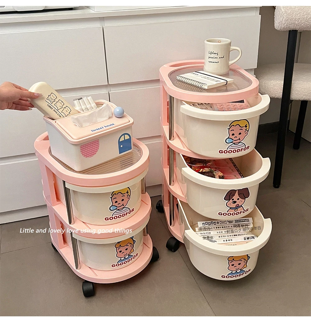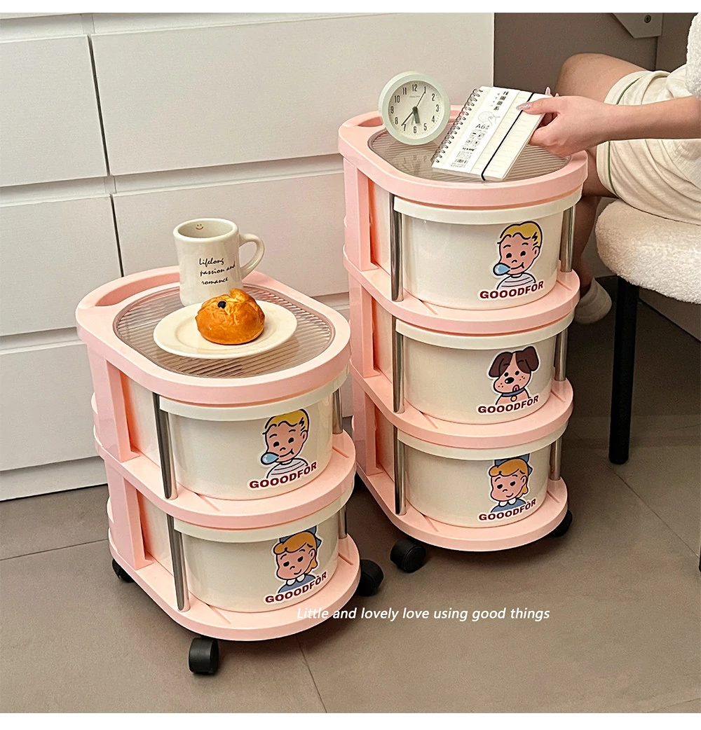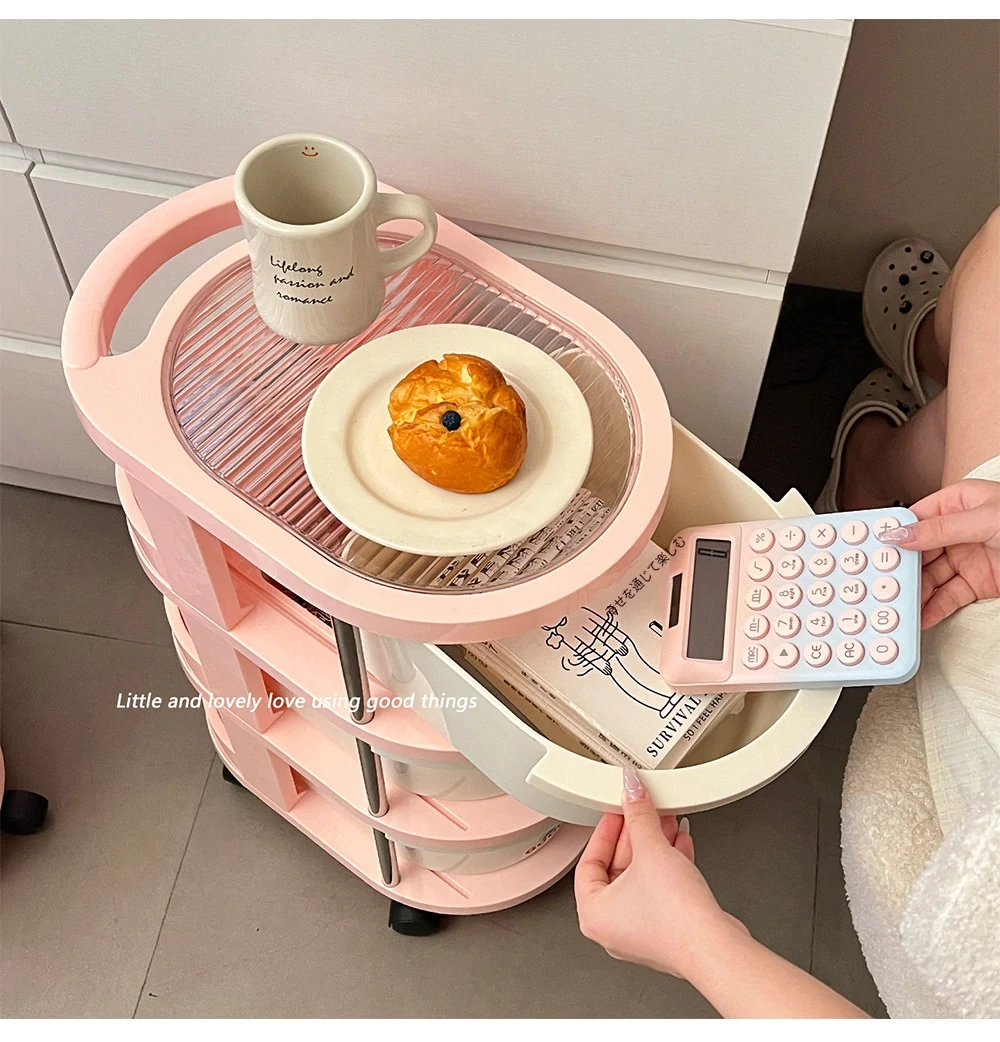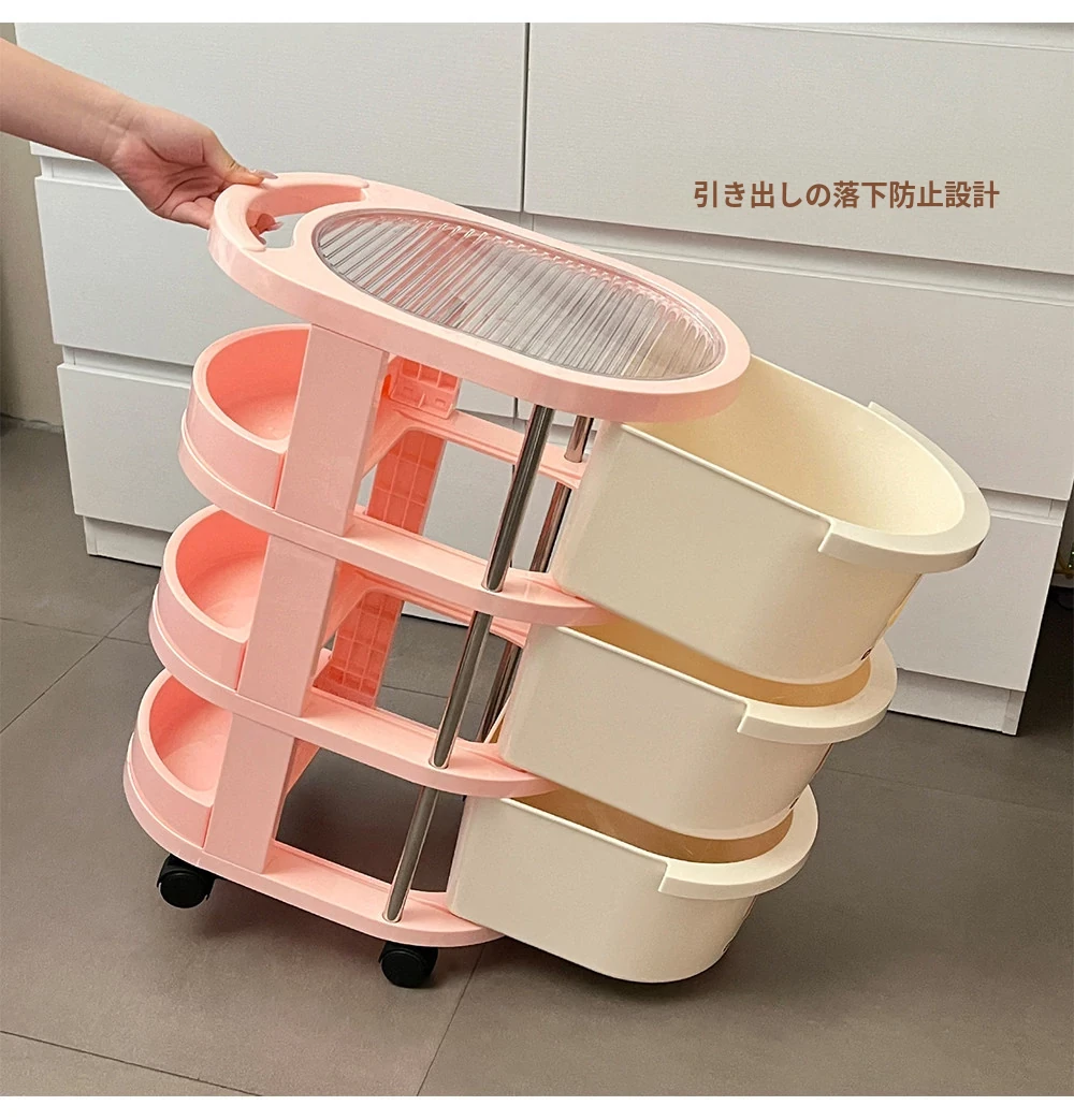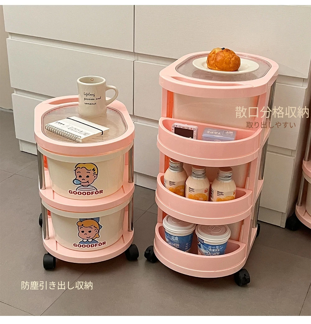 多機能キャスター付き収納ラック - お部屋を有効活用!デスク下にぴったりな引き出し式スナックキャビネットで、宿舎生活をもっと快適に。多層設計で収納力抜群!