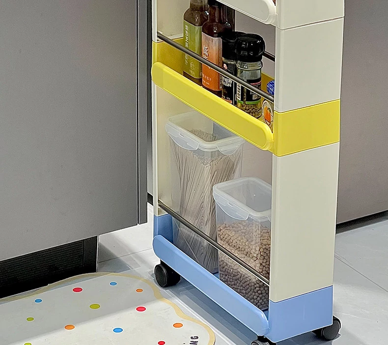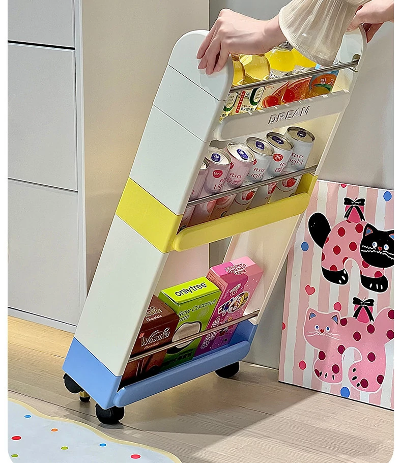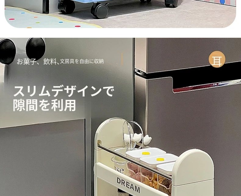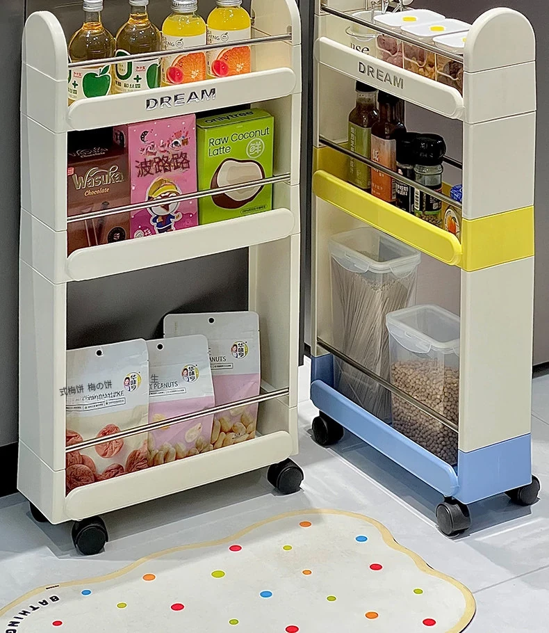 スナック収納ラック 多層式 フロア用 キャスター付き 移動可能 小型カート 階層収納 寮や狭いスペースに最適な便利アイテム!整理整頓を簡単に!