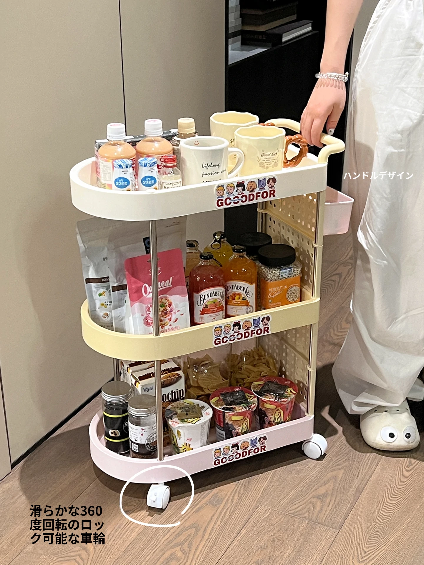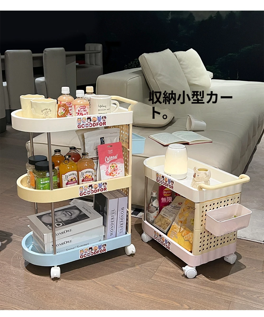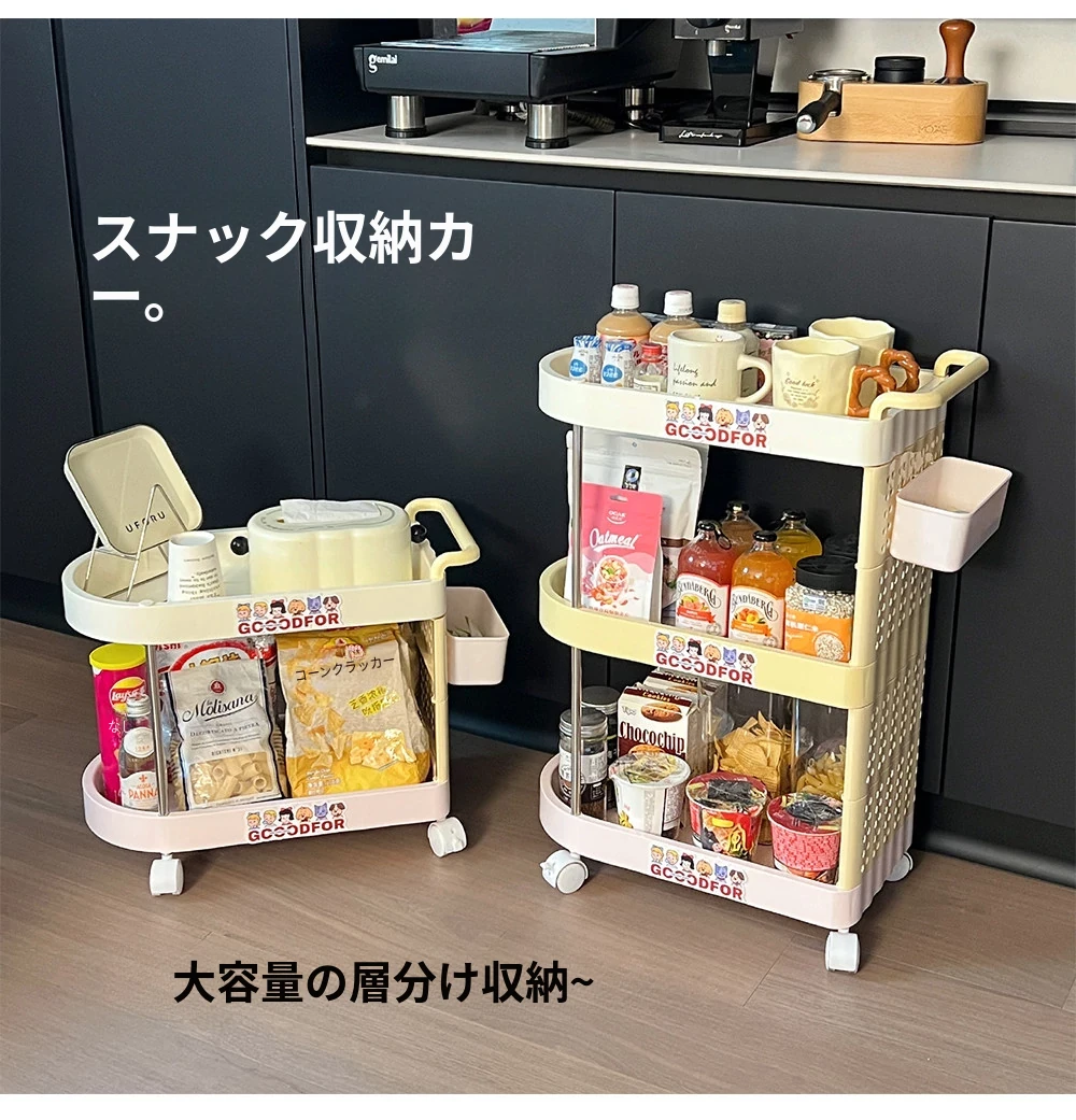 スナック小推車収納ラック 多層おもちゃ整理棚 キャスター付き移動可能 地面用 寮生活に最適な便利アイテム!収納力抜群で、スッキリ片付け!