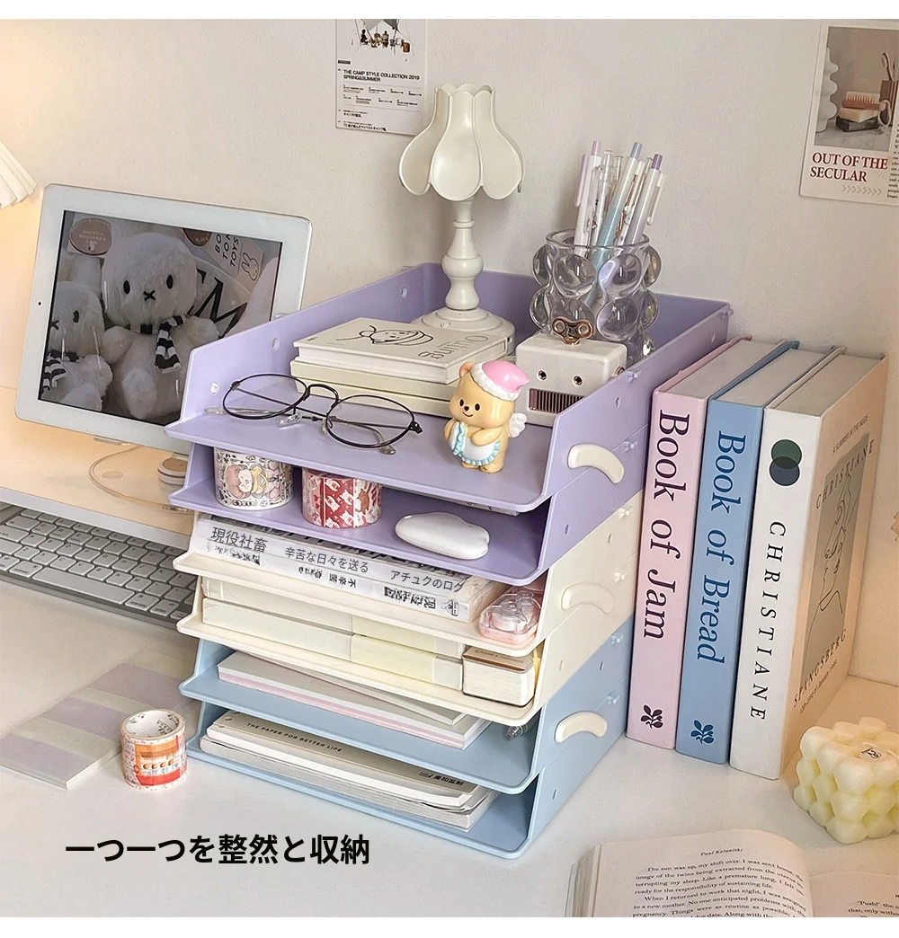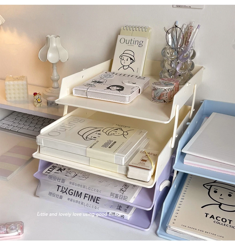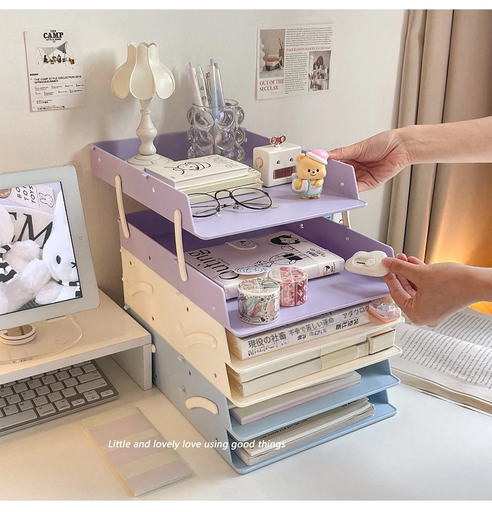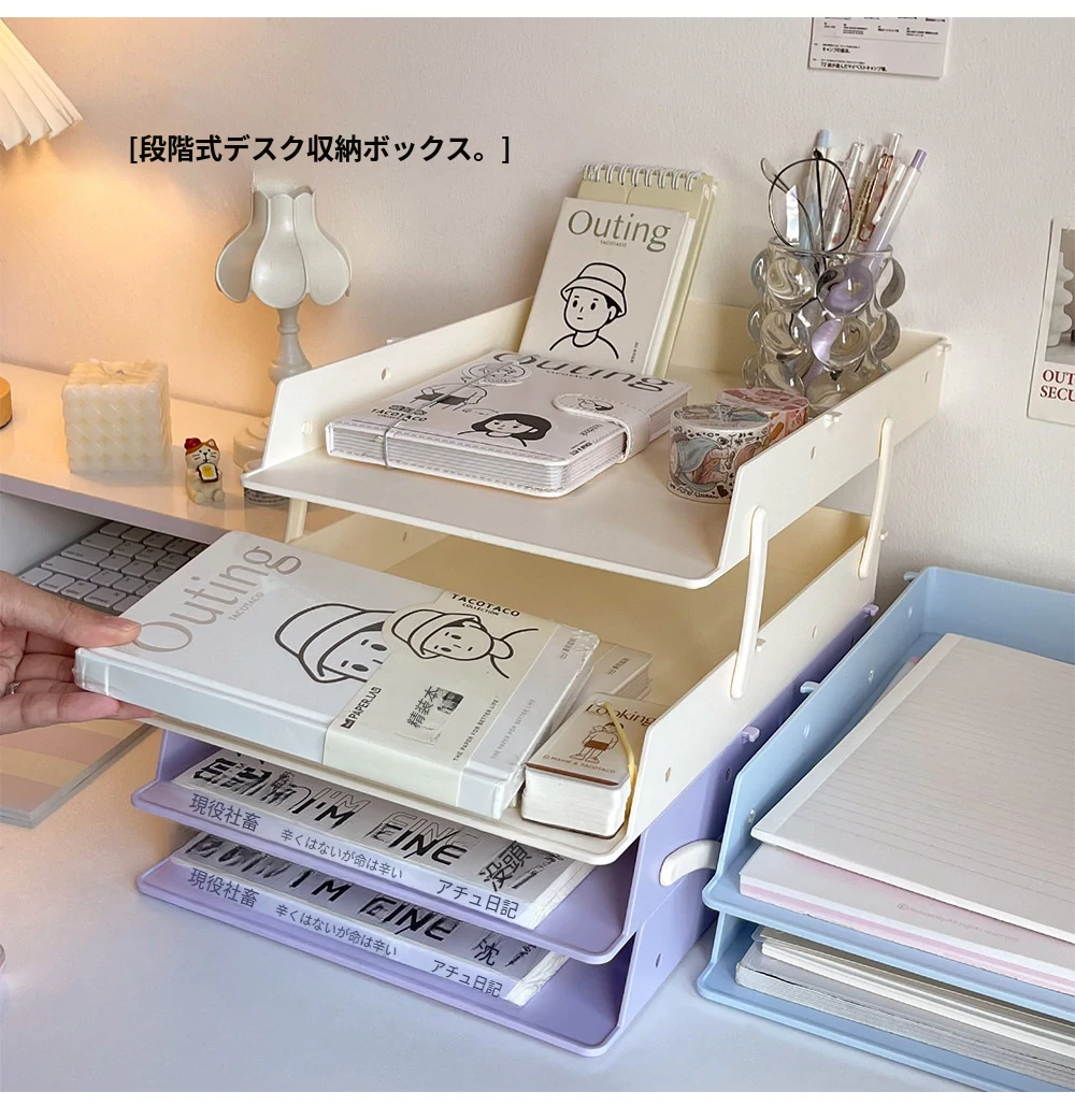 デスクファイル収納ラック|オフィスや寮に最適!多段階デザインで書類や本をスッキリ整理できる便利アイテム!あなたの作業スペースをもっと快適に!