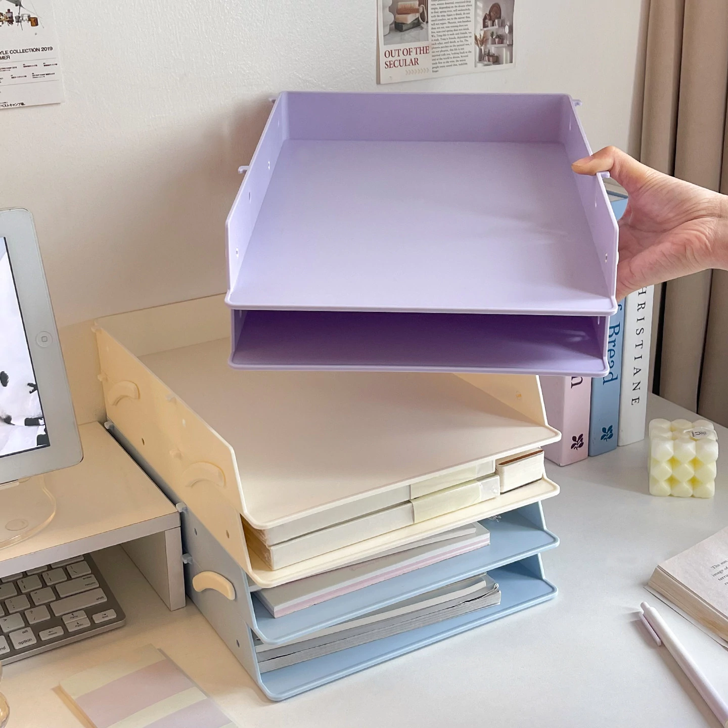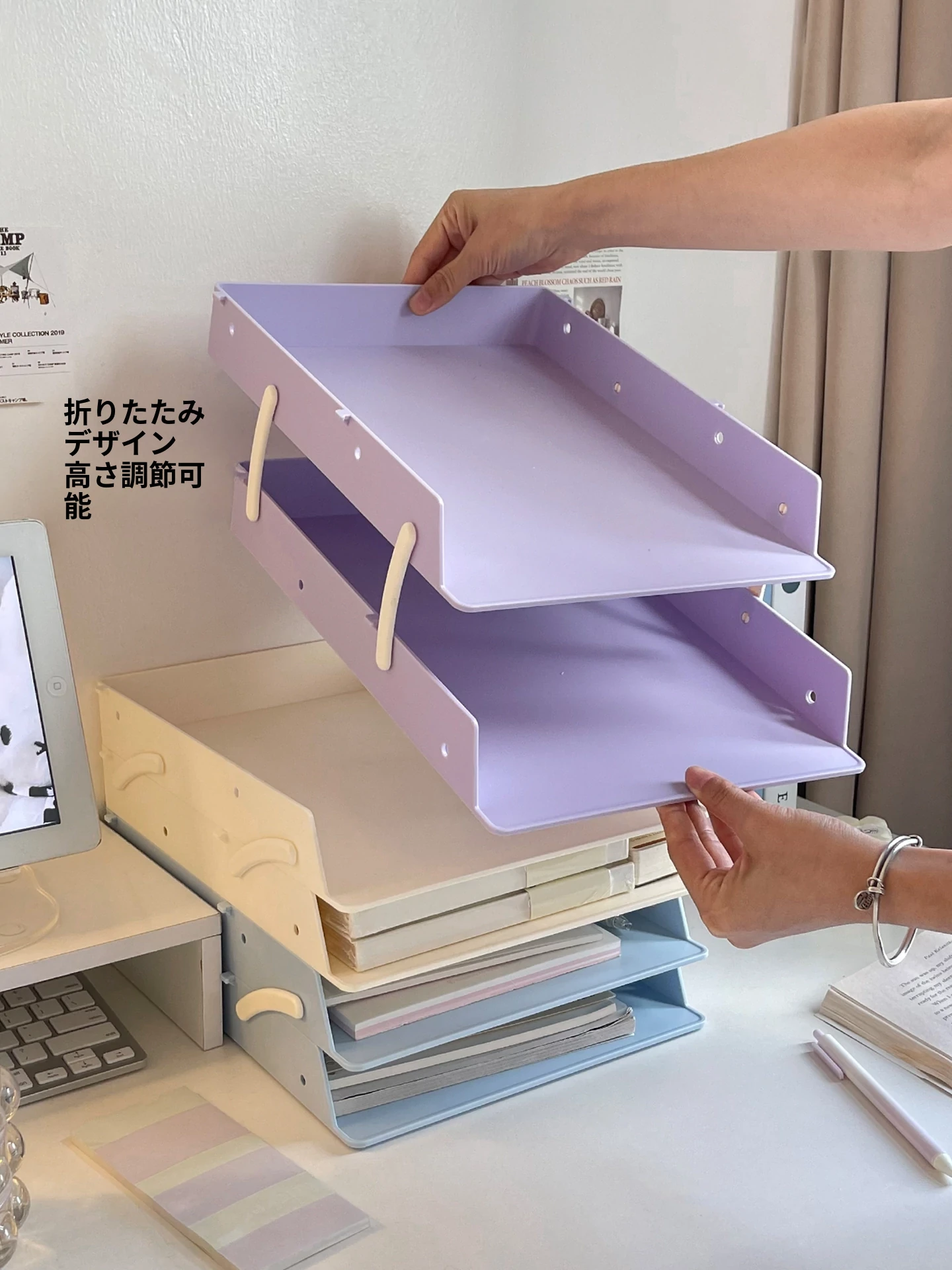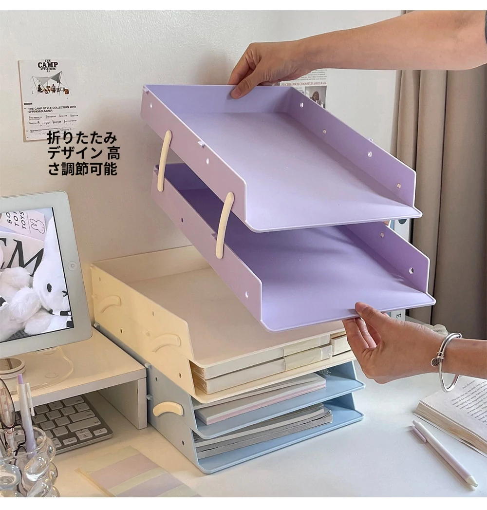 デスクファイル収納ラック|オフィスや寮に最適!多段階デザインで書類や本をスッキリ整理できる便利アイテム!あなたの作業スペースをもっと快適に!