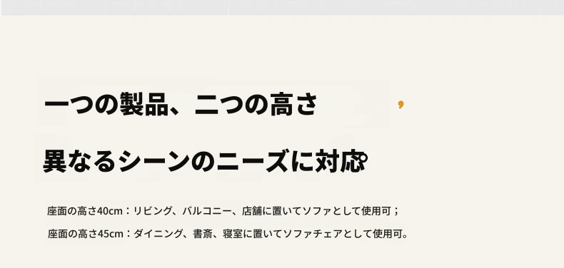 【デフォルトの座高は45cmです。座高40cmが必要な場合は注文時に備考を記入するか、カスタマーサービスに連絡してください】