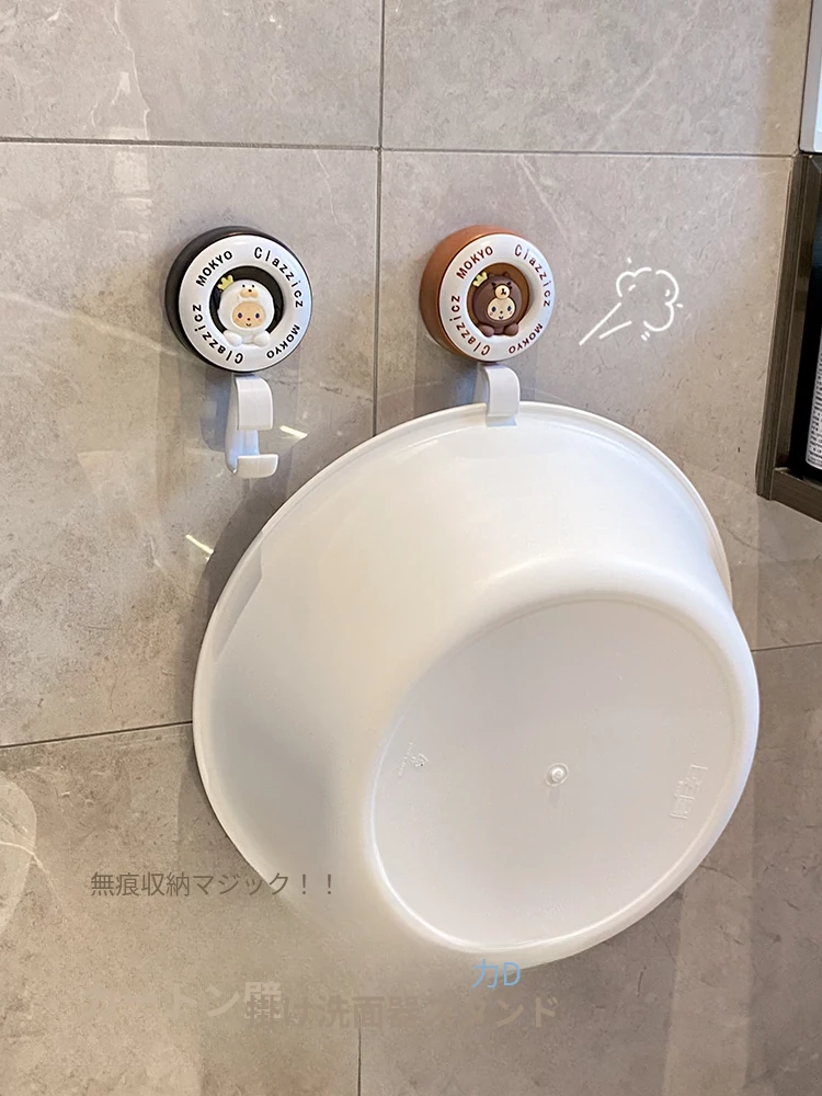壁掛け洗面ボウルフック - 穴を開けずに簡単取り付け!省スペースの収納ラック、バスルームやトイレでの使い方自由自在。衛生的でスッキリ収納、あなたの生活をもっと快適に!