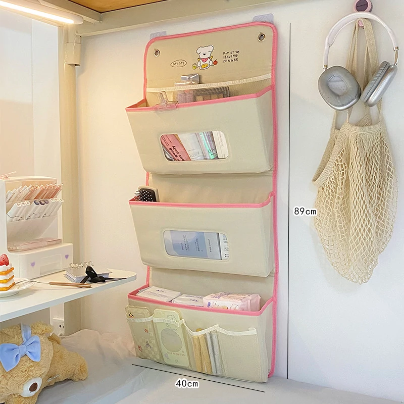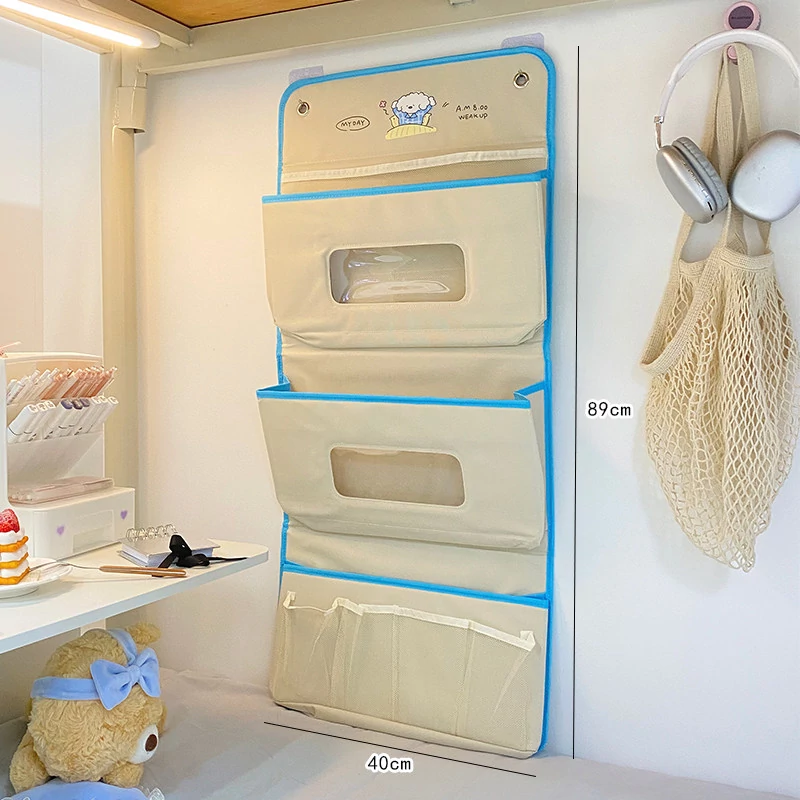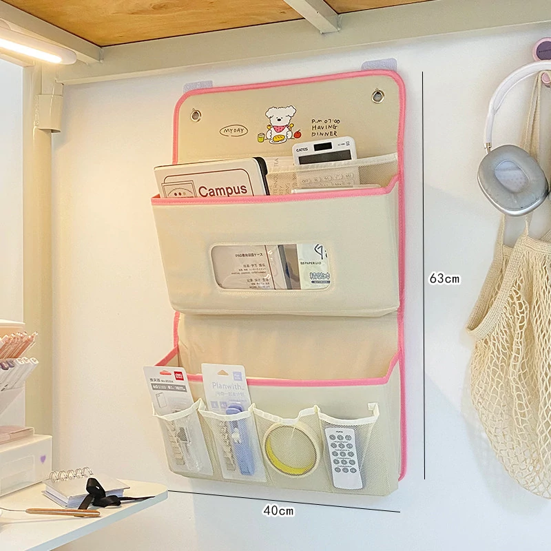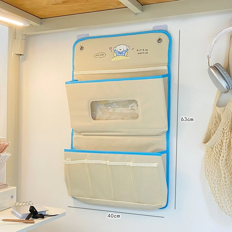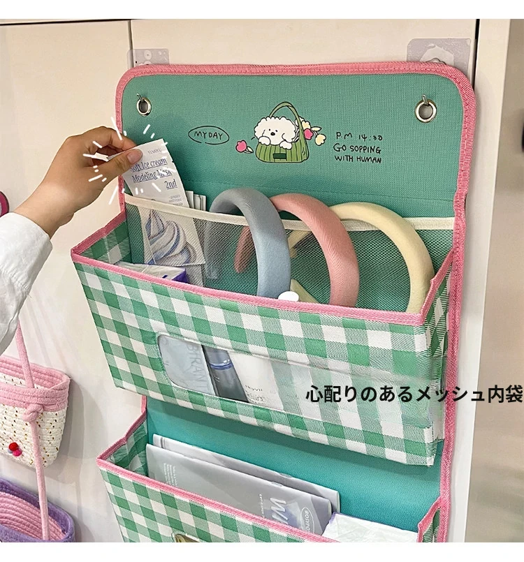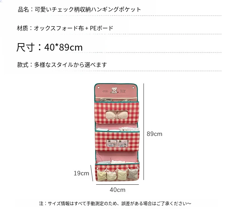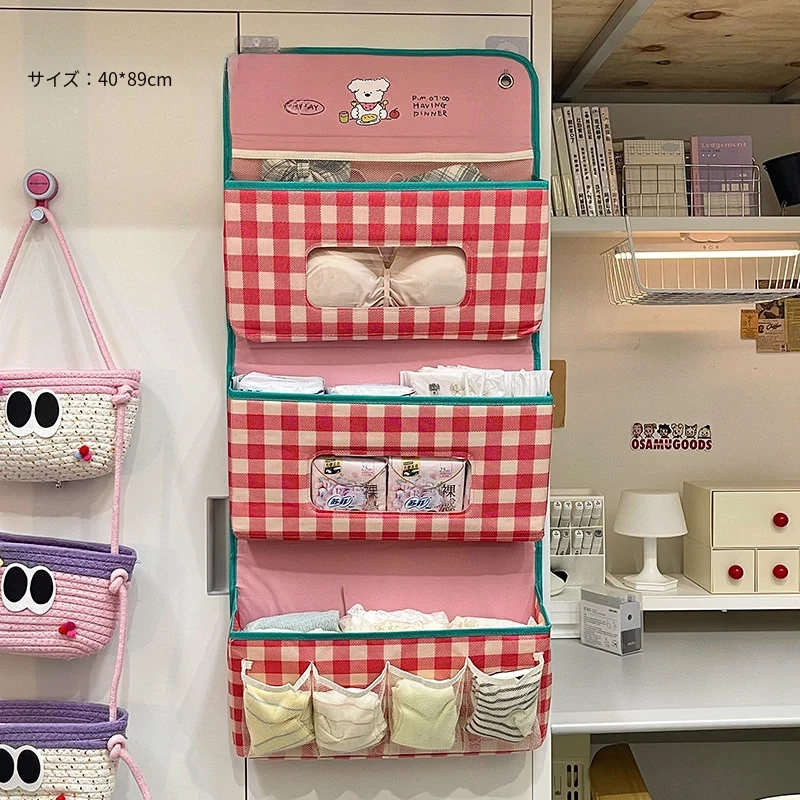 チェック柄収納ハンギングバッグ 学生寮用ベッド上置き物袋 上下段用 ドア裏に掛けられる壁掛け式 ベッドサイドネットポケットでおしゃれに整理整頓!