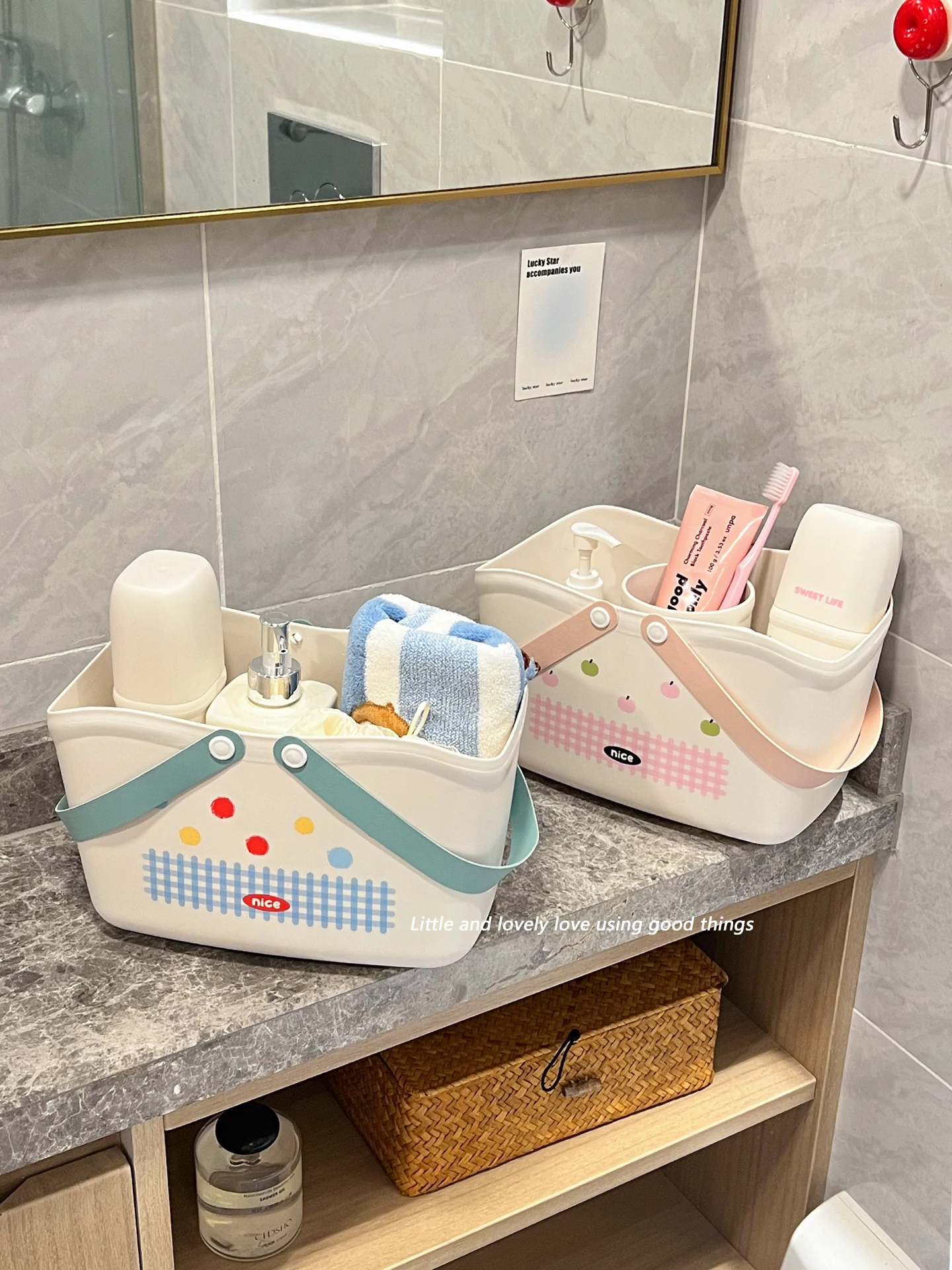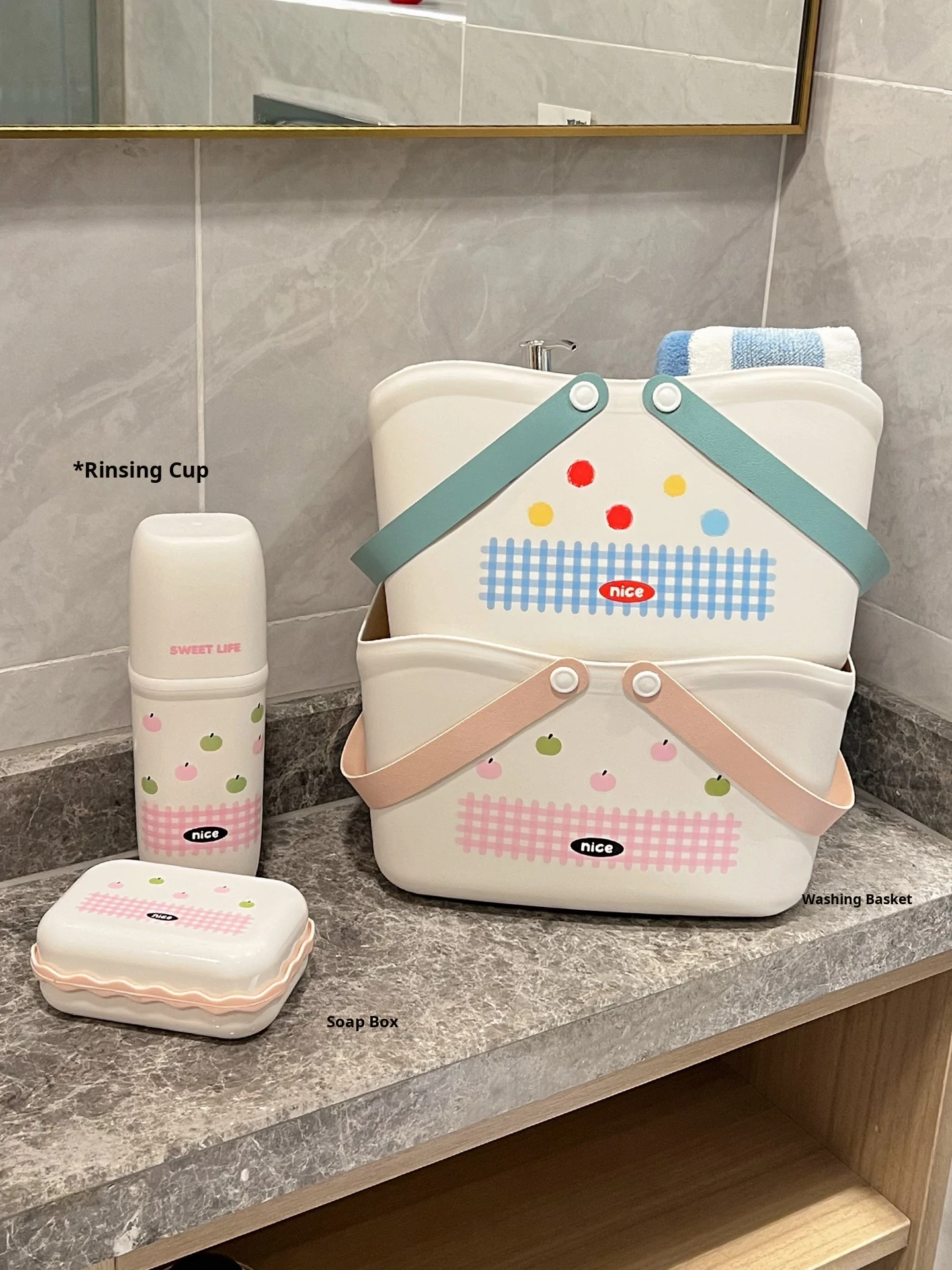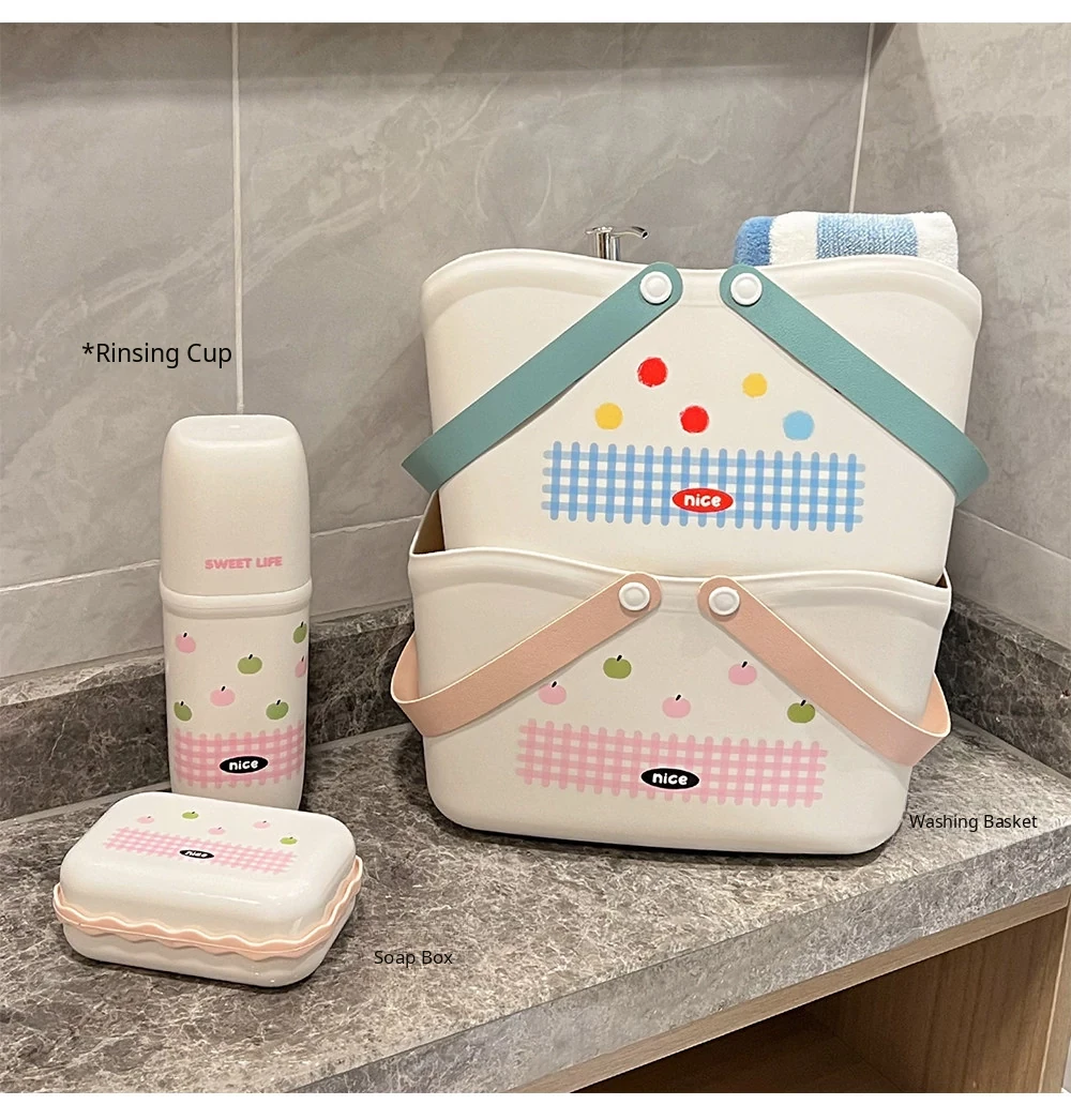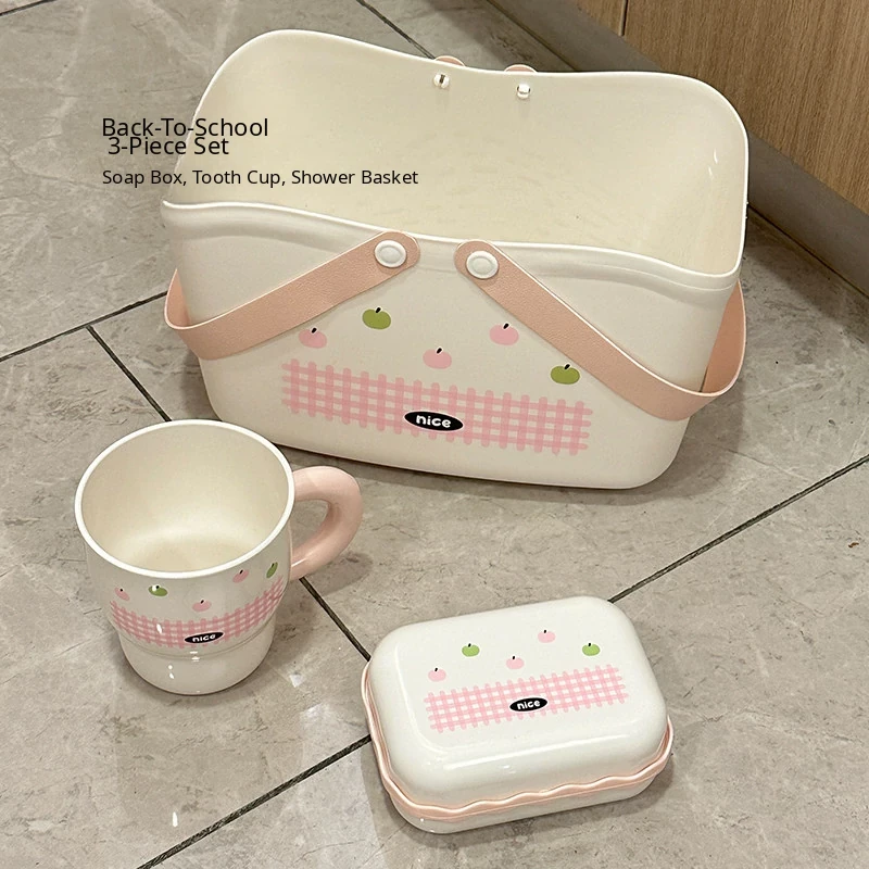 [Pink Three-Piece Set] Tooth Cup + Bath Basket + Soap Dish