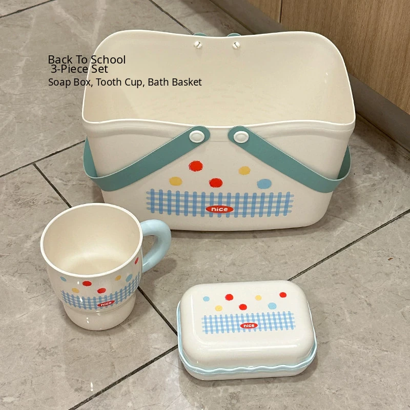 【Blue Three-Piece Set】Toothbrush Holder + Bath Basket + Soap Dish