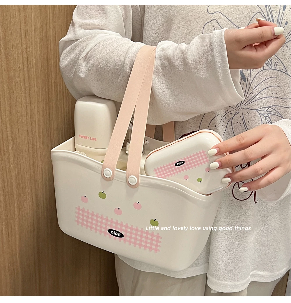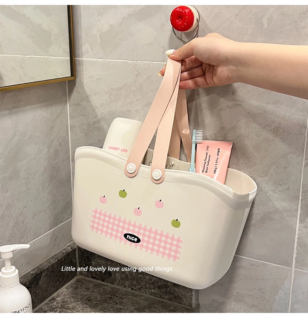 Portable Shower Caddy Basket - Perfect for Bathroom Essentials, Dormitory Storage, and Swimming. Durable Plastic with Stylish Hollow Design for Easy Carrying and Organization!