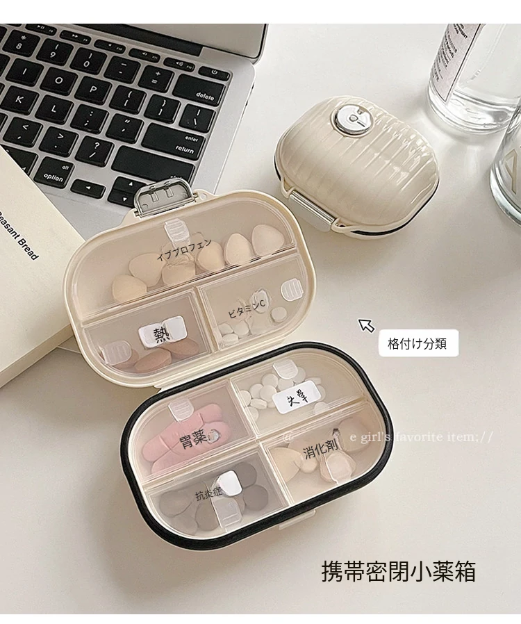 携帯用7日間分けられる薬ケース - 密封タイプの薬入れで、旅行や外出に最適!整理整頓が簡単な分割デザインで、毎日の薬をスマートに管理。