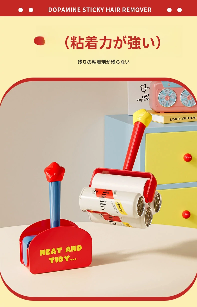 強力粘着ローラー - 猫の毛掃除に最適!剥がせる粘着シート交換芯付き、布団や家具の髪の毛を簡単にお掃除!お手入れ簡単、猫好き必見の便利グッズ!